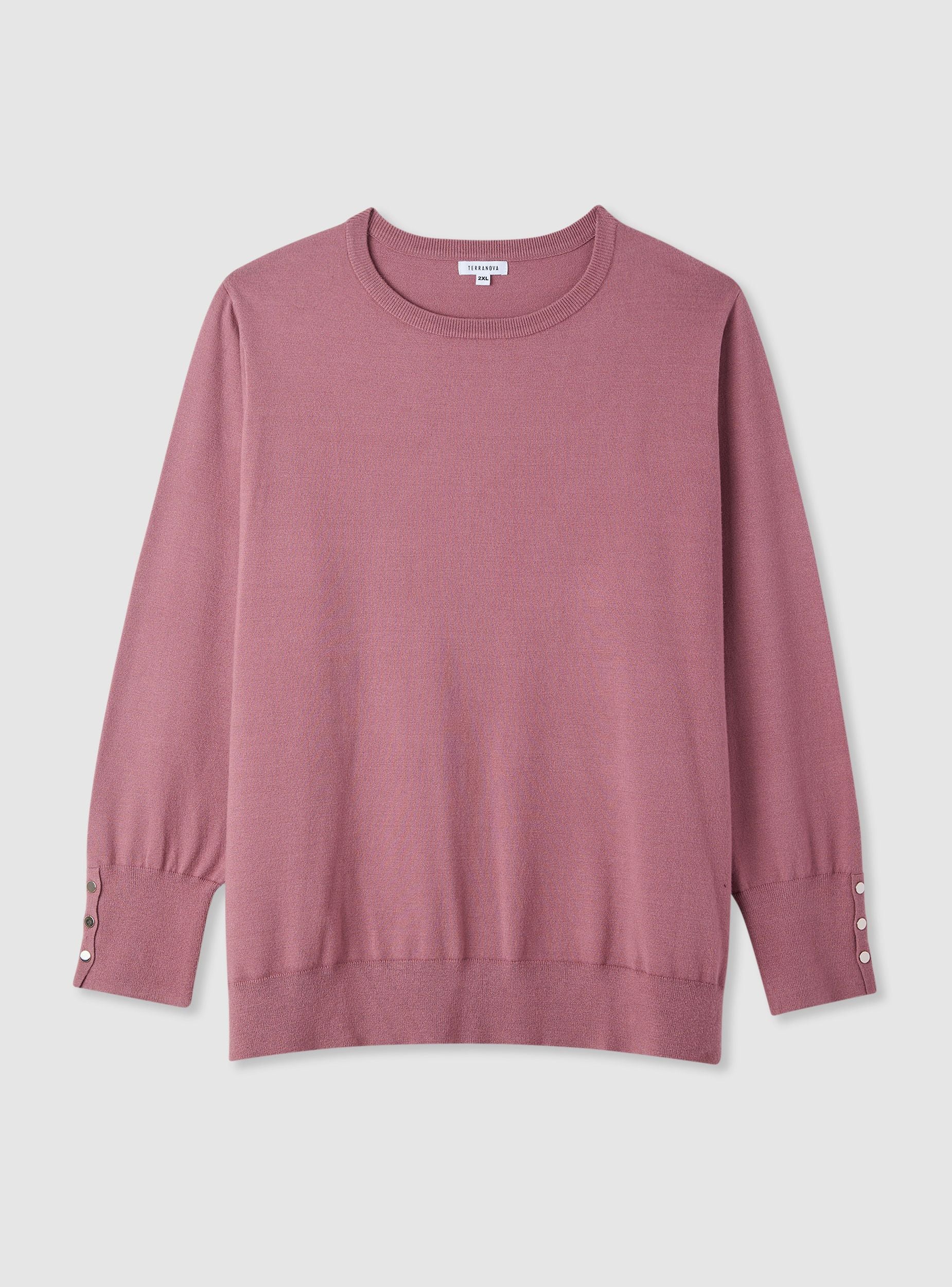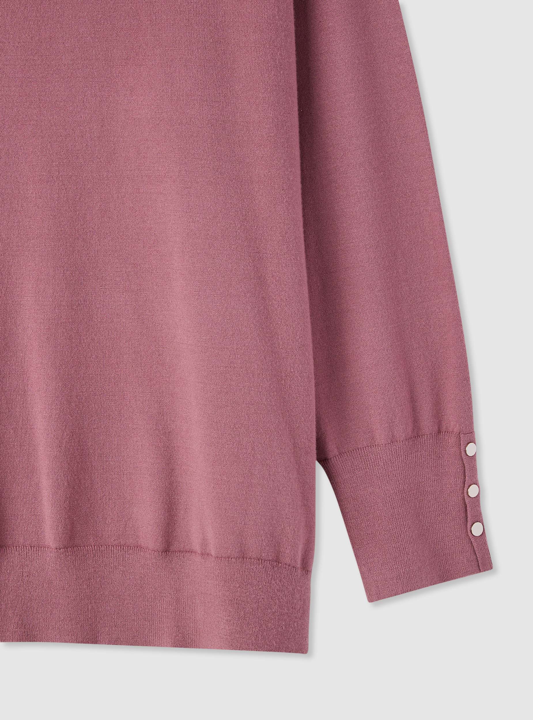 Maglia da donna a maniche lunghe con girocollo e bottoni sui polsini che aggiungono un tocco raffinato e moderno, rendendo questo capo ideale per look casual o più formali. Perfetta da abbinare a jeans o pantaloni tailored, è una scelta versatile e comoda per affrontare con stile la stagione fredda.