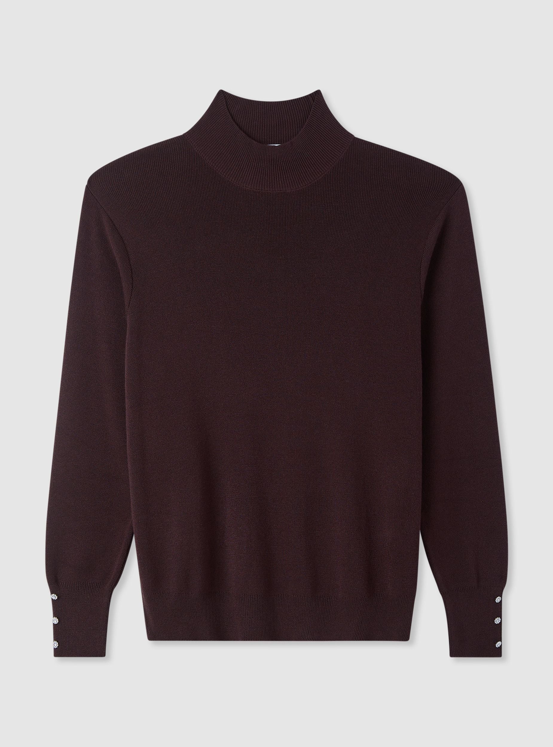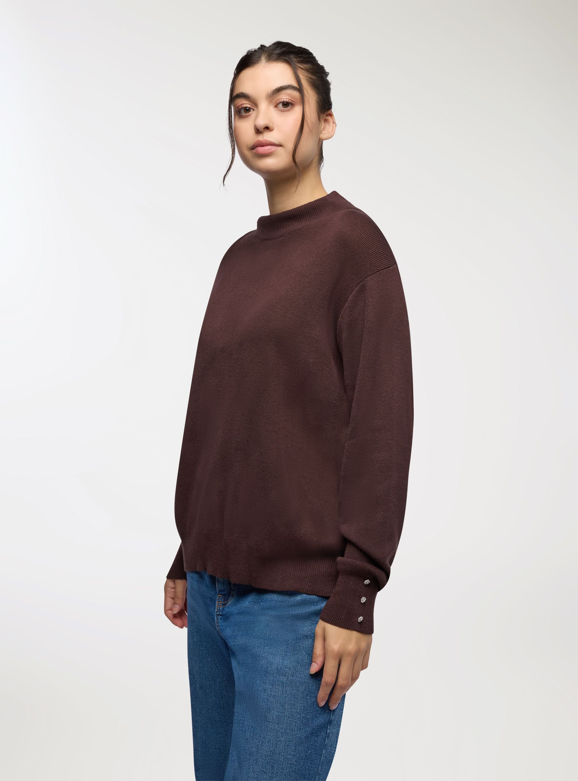 Maglia da donna a maniche lunghe, ideale per un look casual e versatile. Presenta un design tinta unita con collo alto e dettagli di bottoni decorativi sui polsini, aggiungendo un tocco di eleganza. Perfetta per essere abbinata a jeans o pantaloni per un outfit comodo e raffinato. La vestibilità è aderente, valorizzando la silhouette.
