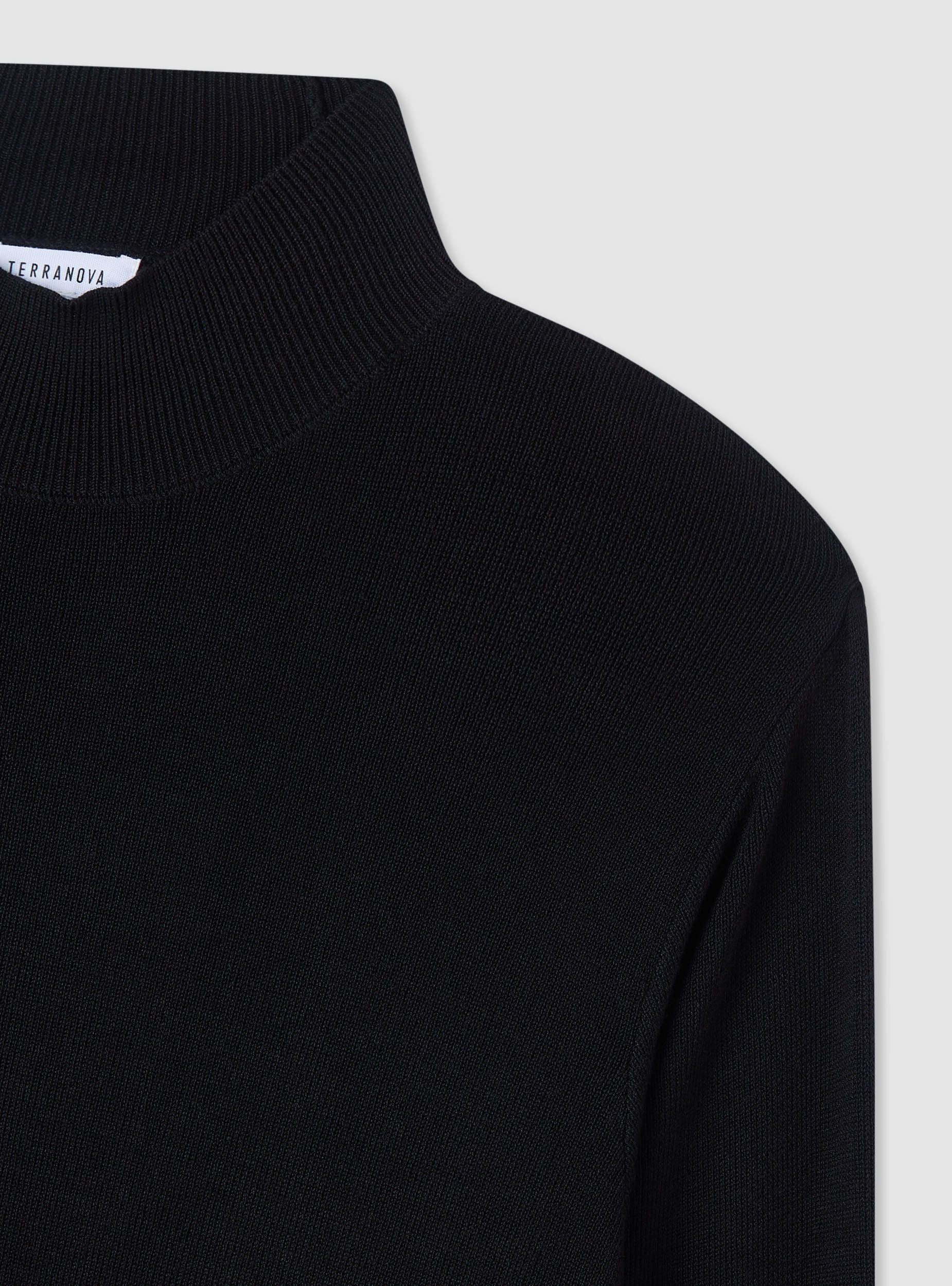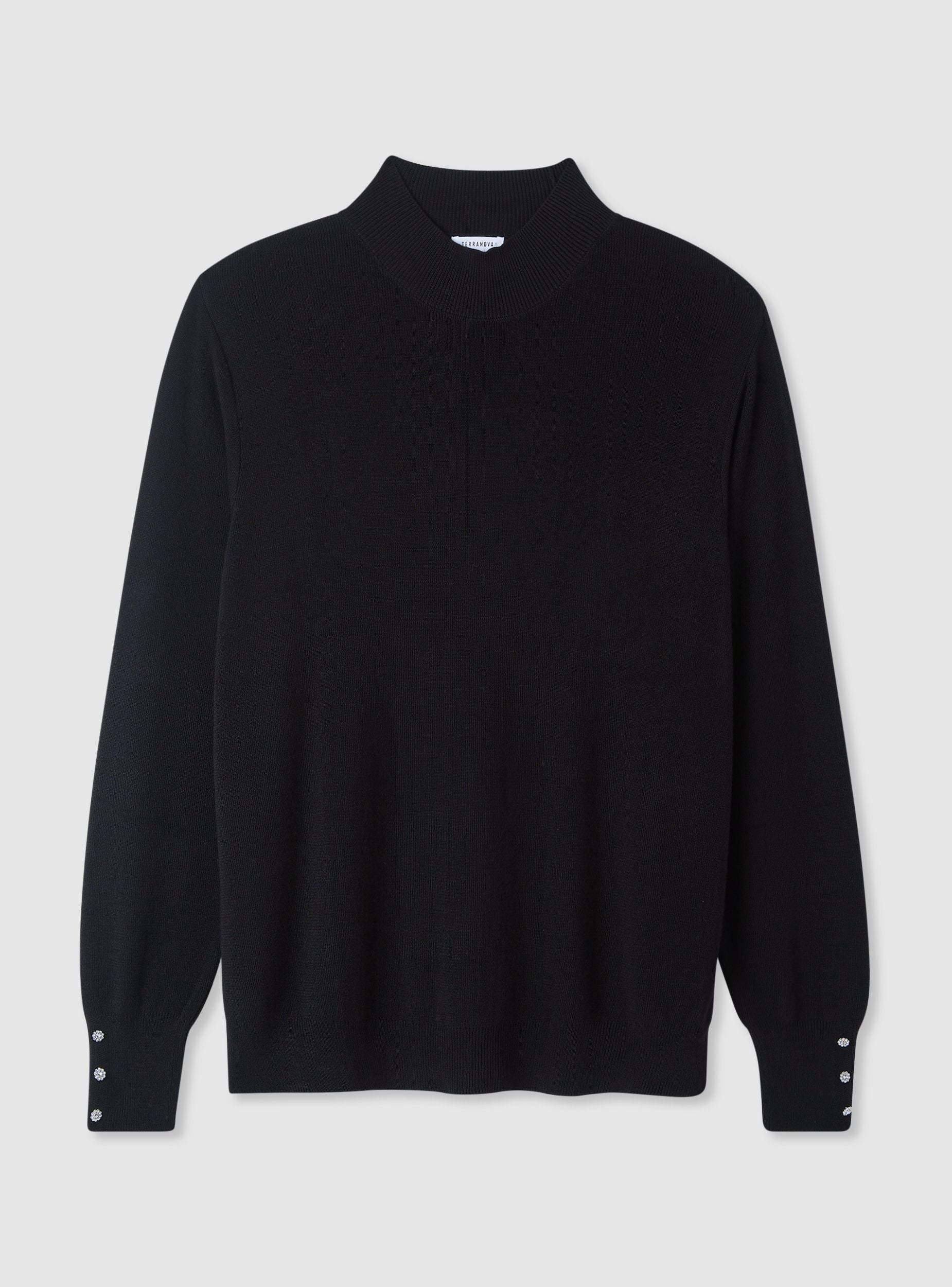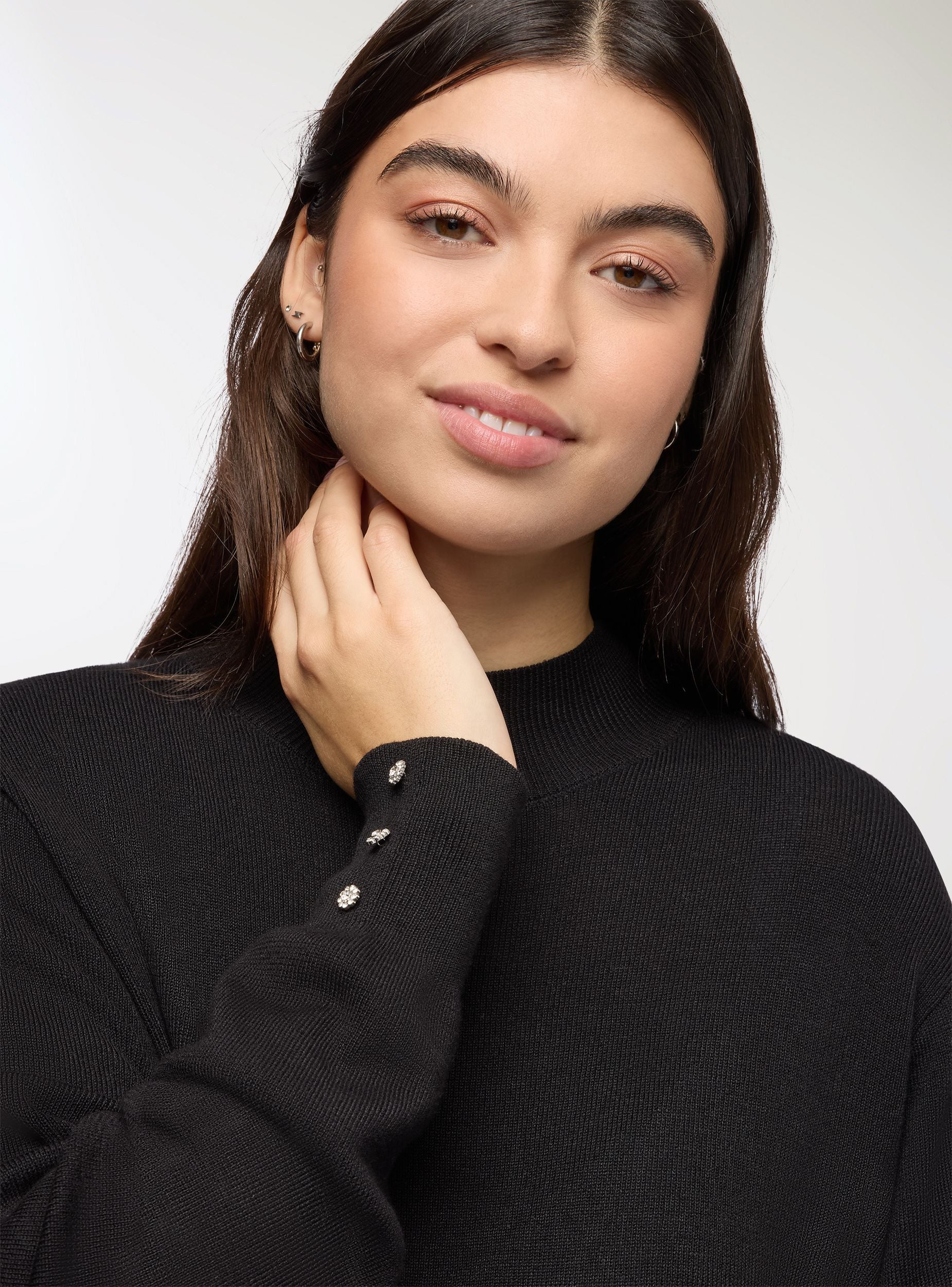 Maglia da donna a maniche lunghe, ideale per un look casual e versatile. Presenta un design tinta unita con collo alto e dettagli di bottoni decorativi sui polsini, aggiungendo un tocco di eleganza. Perfetta per essere abbinata a jeans o pantaloni per un outfit comodo e raffinato. La vestibilità è aderente, valorizzando la silhouette.