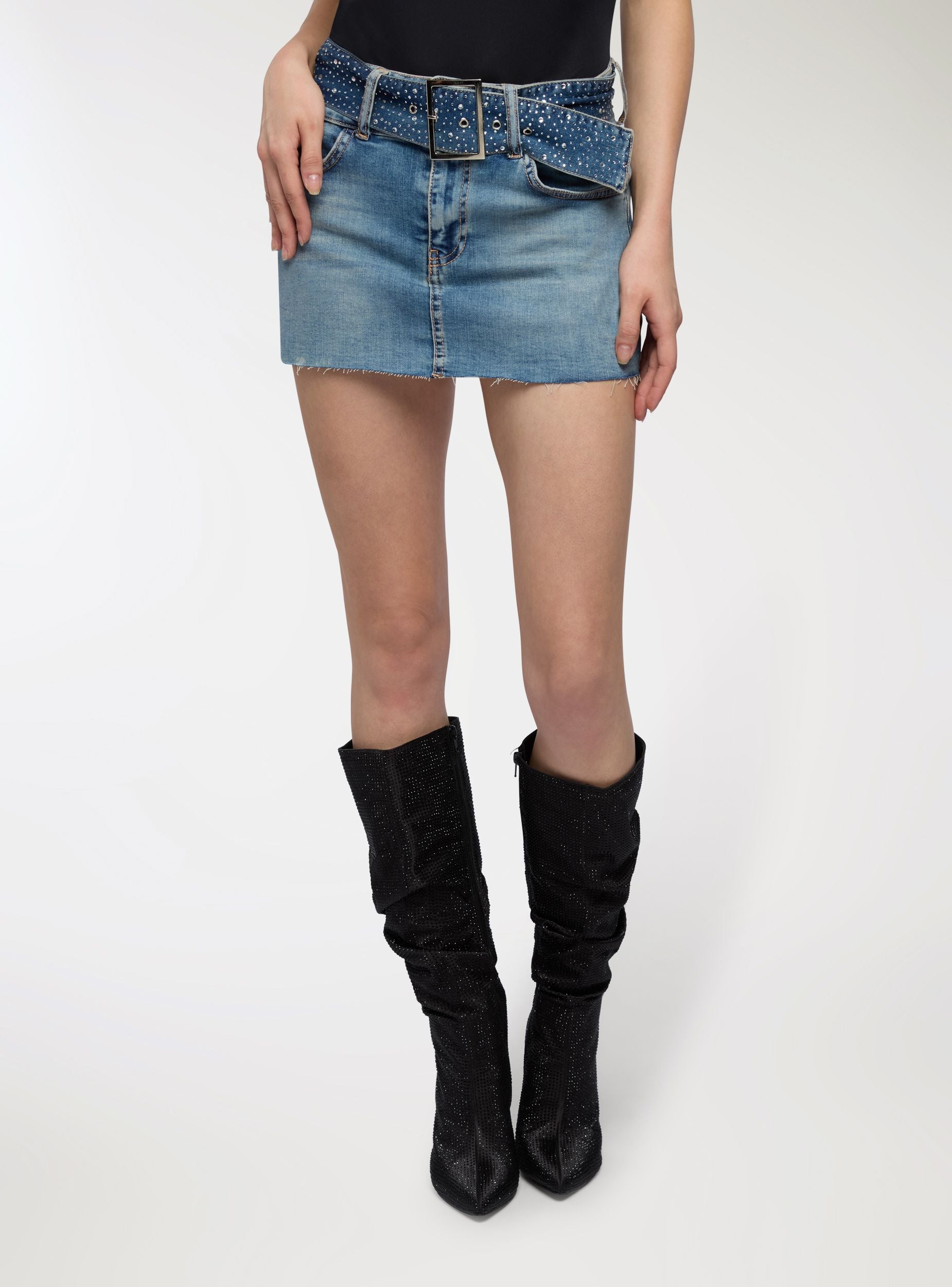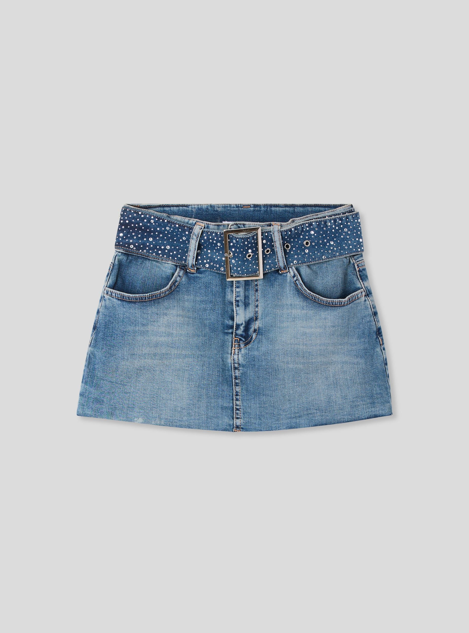 Minigonna denim cintura strass