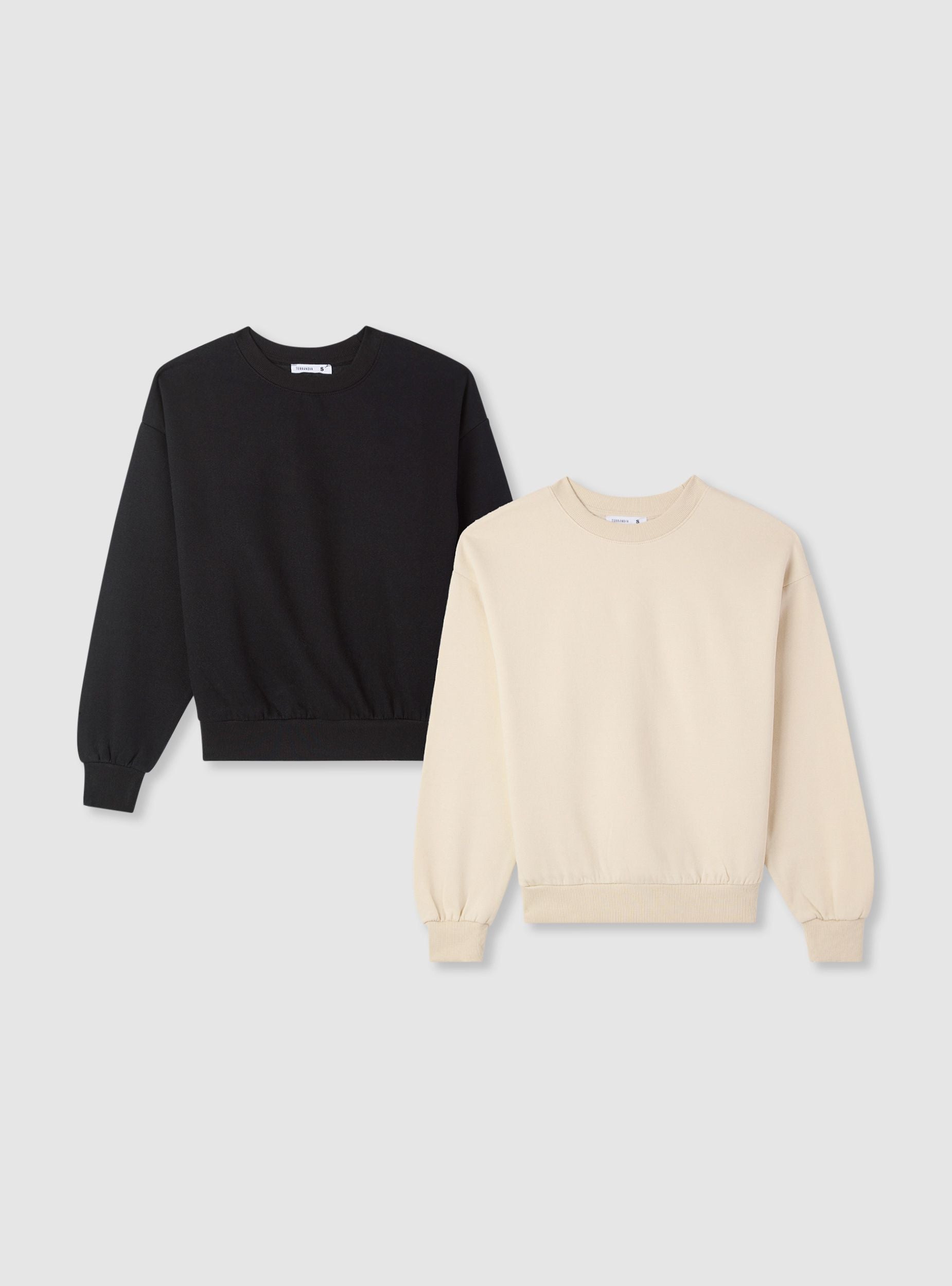 Confezione composta da 2 felpe pesanti da donna senza cappuccio, con girocollo e vestibilità comoda, ideali per l’inverno. Il tessuto assicura calore e comfort nelle giornate più fredde. I polsi, il fondo e il collo in costina garantiscono stabilità e una finitura curata. Modello chiuso senza zip e a tinta unita. Un pack pratico e conveniente per creare look casual e versatili, perfetti per tutti i giorni.