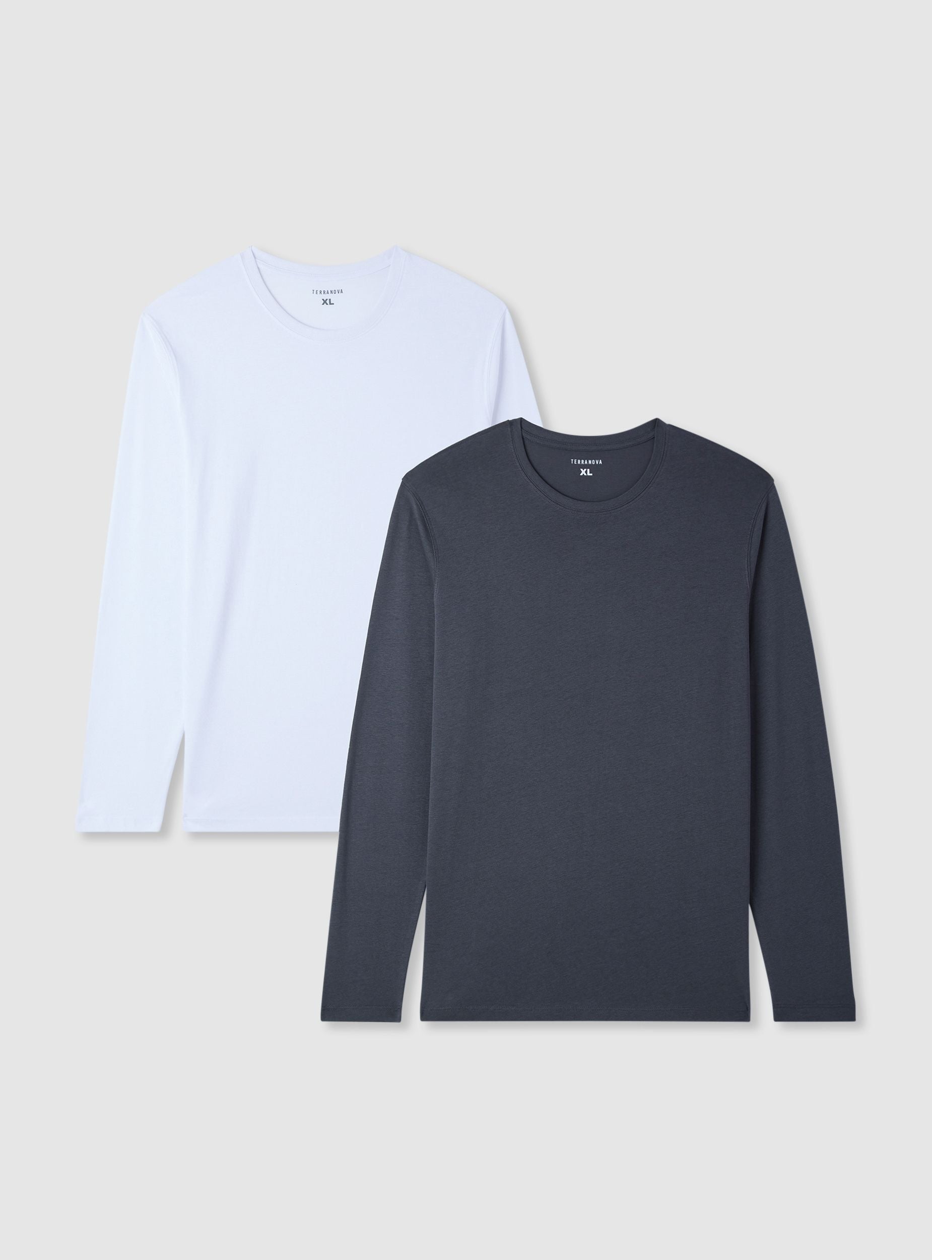 Confezione composta da due magliette da uomo a manica lunga, ideali per un look casual e versatile. Perfette per essere indossate in diverse occasioni, queste magliette si abbinano facilmente a jeans o pantaloni sportivi. La vestibilità comoda e il design tinta unita le rendono un capo essenziale per il guardaroba maschile. Ideali per la stagione intermedia o per essere indossate sotto una giacca.