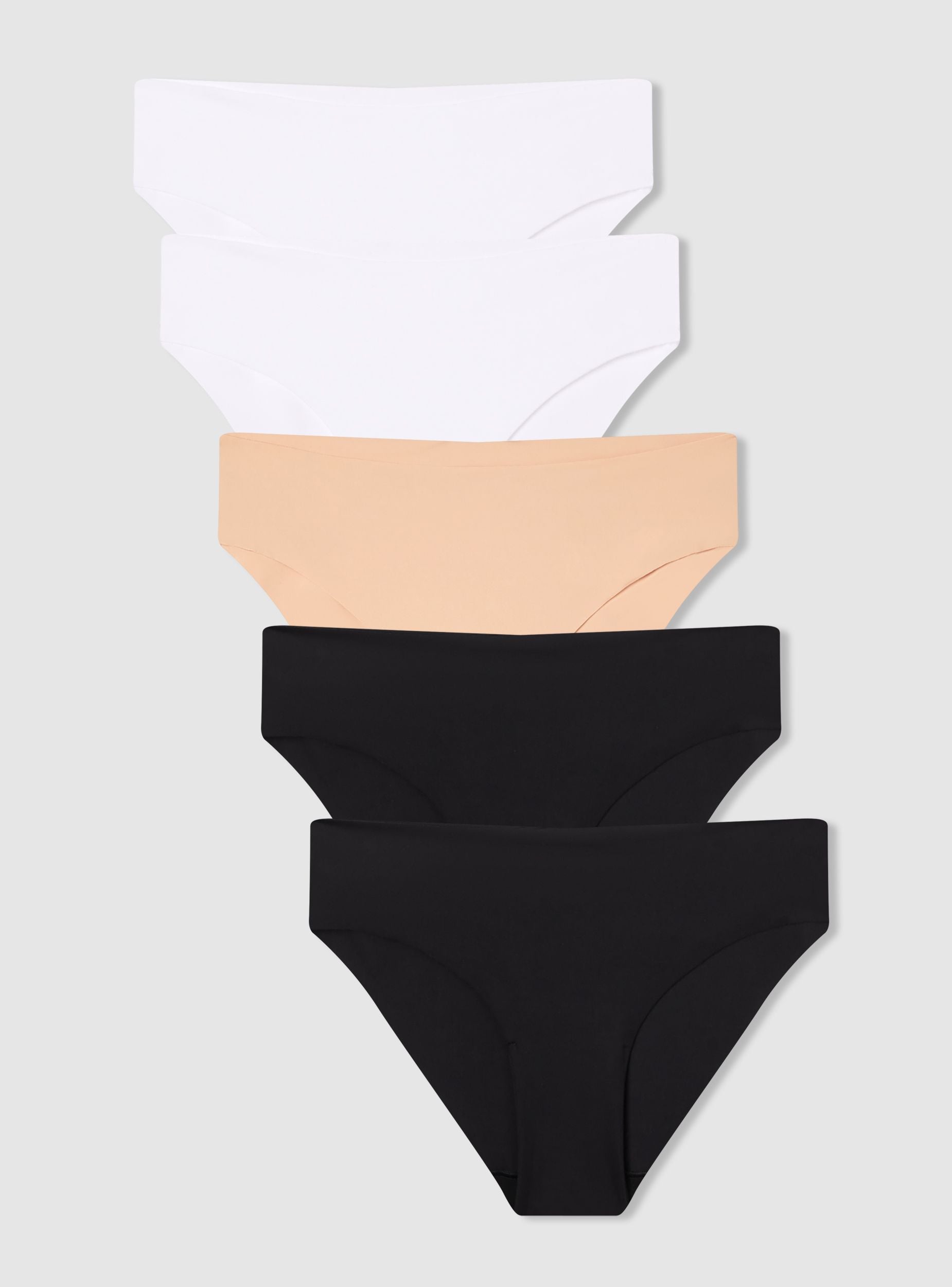 Confezione composta da 5 slip da donna, modello briefs, in microfibra taglio vivo. Questi slip da donna dal design tinta unita sono ideali per un utilizzo quotidiano grazie alla loro vestibilità comoda e al tessuto morbido. Perfetti per essere indossati sotto qualsiasi tipo di abbigliamento, garantiscono discrezione e comfort. La confezione include cinque slip, offrendo varietà e praticità per ogni occasione.