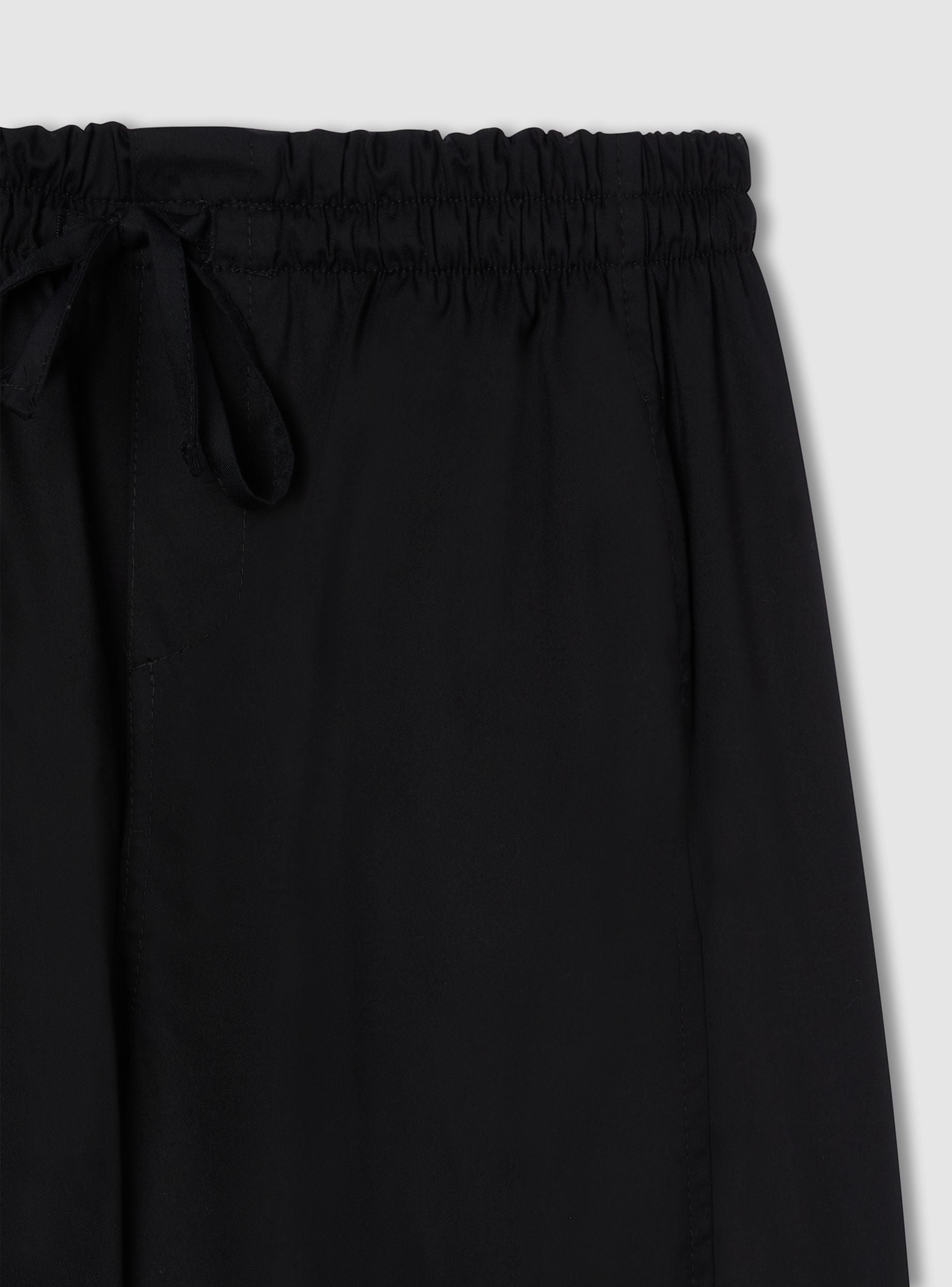 Pantaloni lunghi da donna dal taglio wide leg, ideali per look casual e tempo libero. Vita con coulisse regolabile per comfort e aderenza personalizzata. Tasche laterali oblique comode per l’essenziale. Linea morbida e dritta che cade ampia sulla gamba, perfetta con maglietta basica e sneakers o con camicia e sandali per un outfit disinvolto. Fantasia tinta unita.