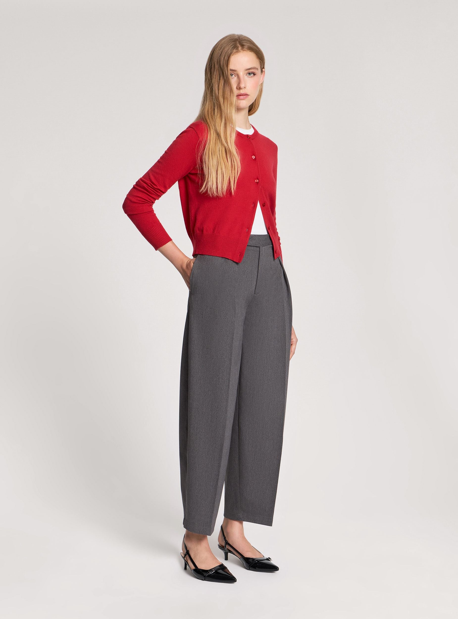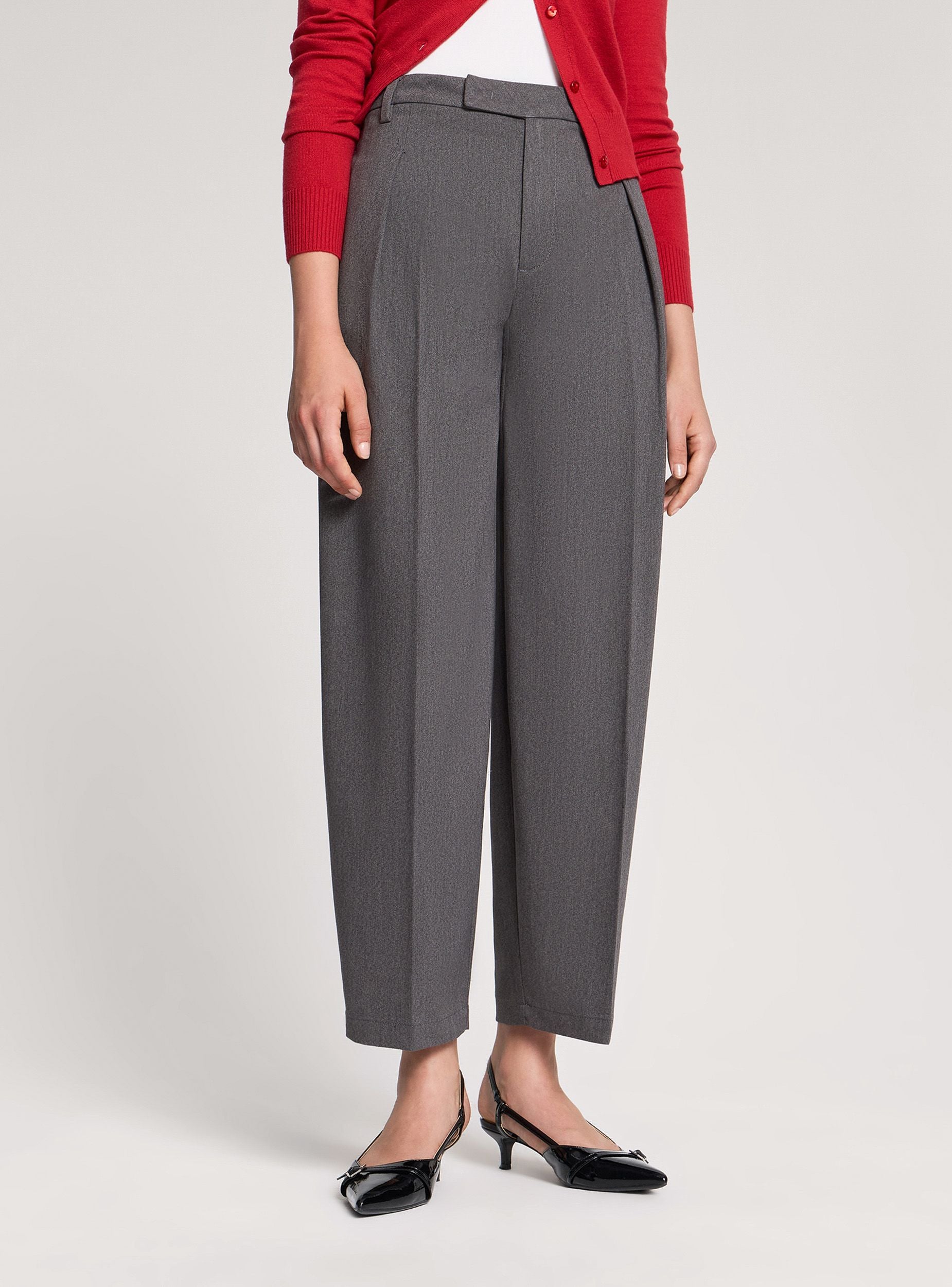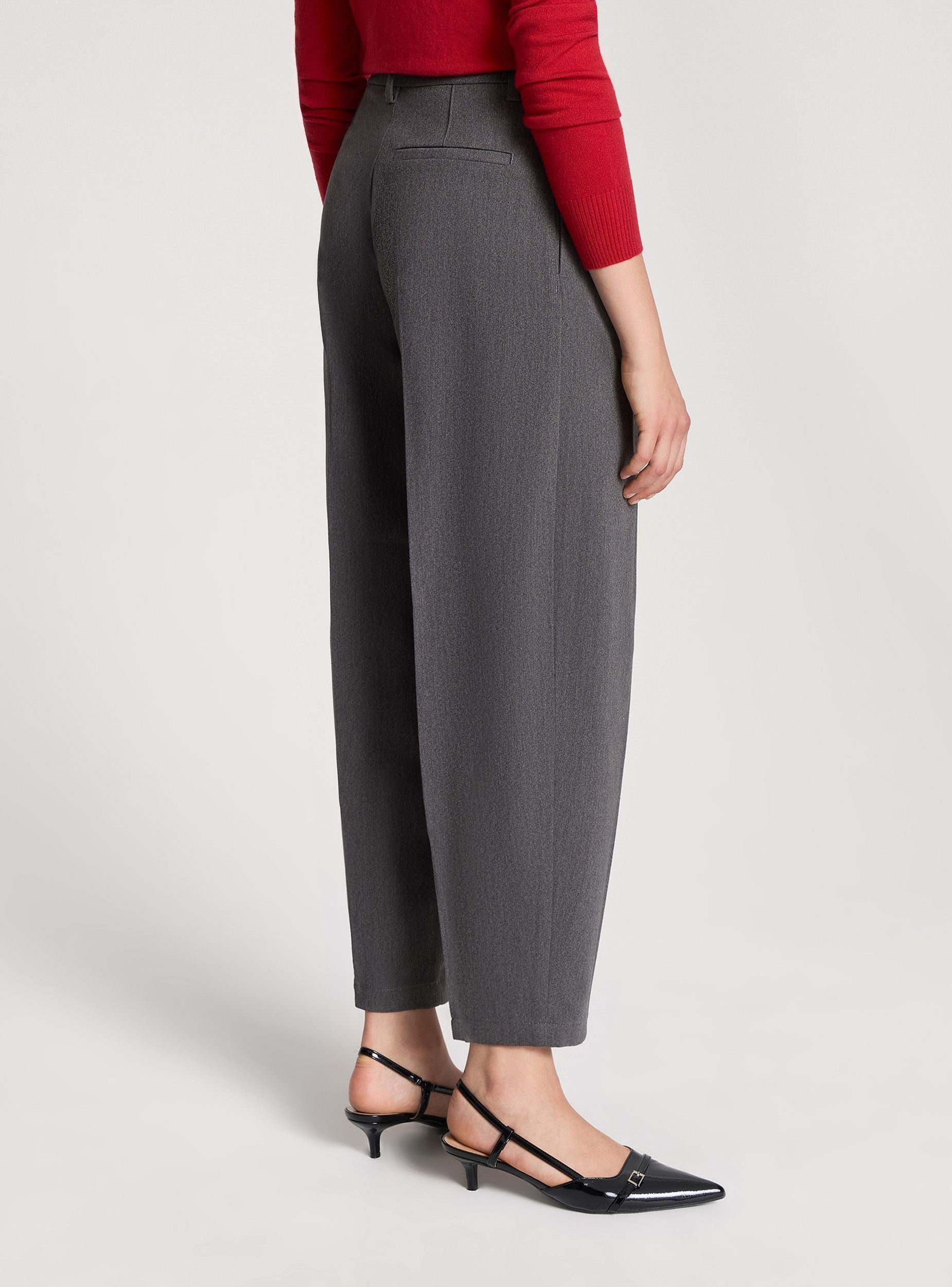 Pantaloni da donna dal design elegante e versatile, ideali per occasioni formali o professionali. Presentano una vestibilità ampia con gamba larga, perfetti per un look sofisticato. Dotati di chiusura con bottone, zip e gancio. Passanti in vita per abbinarli con una cintura, offrono praticità e stile. Si abbinano facilmente a camicie e blazer per un outfit impeccabile.