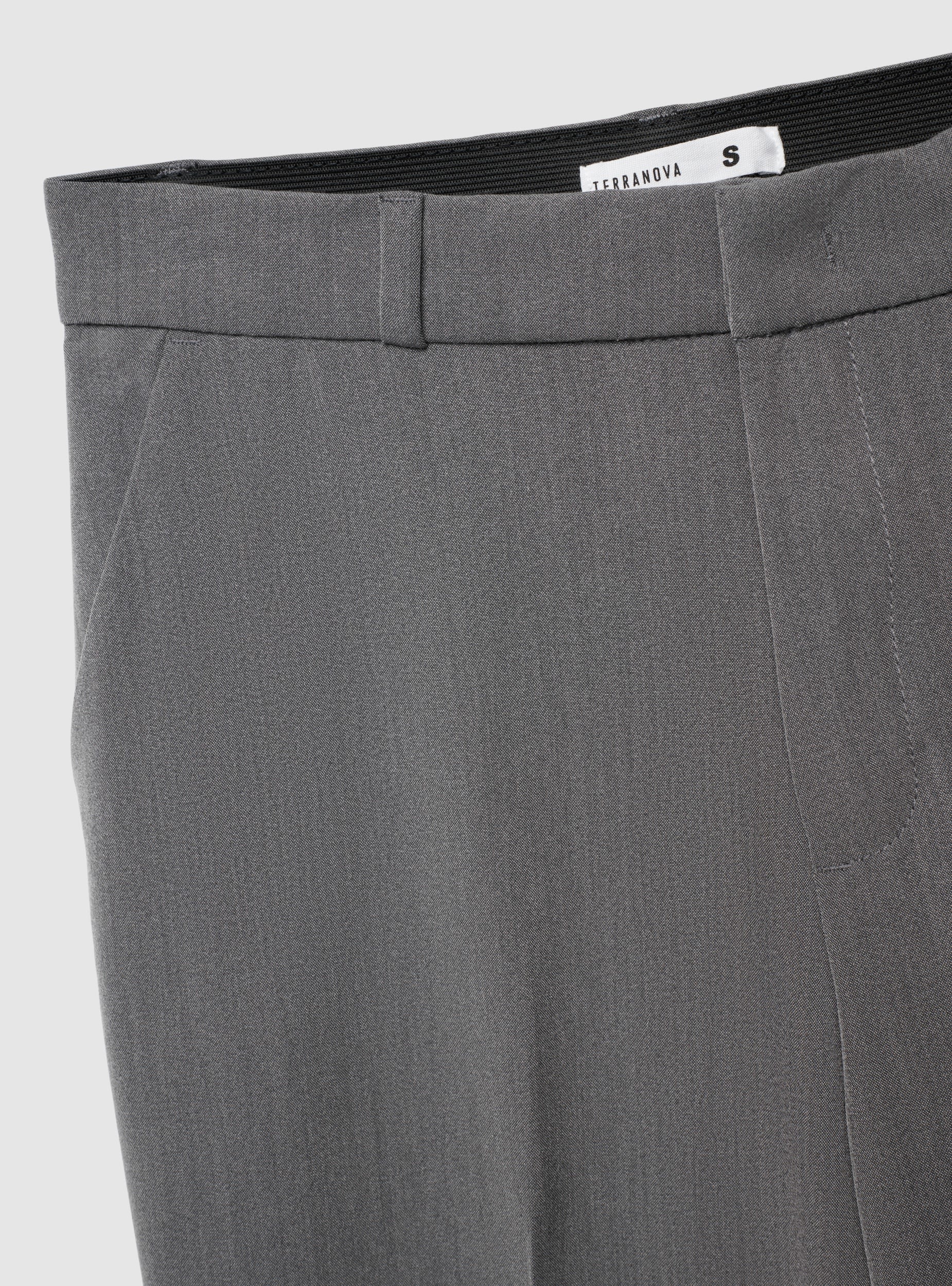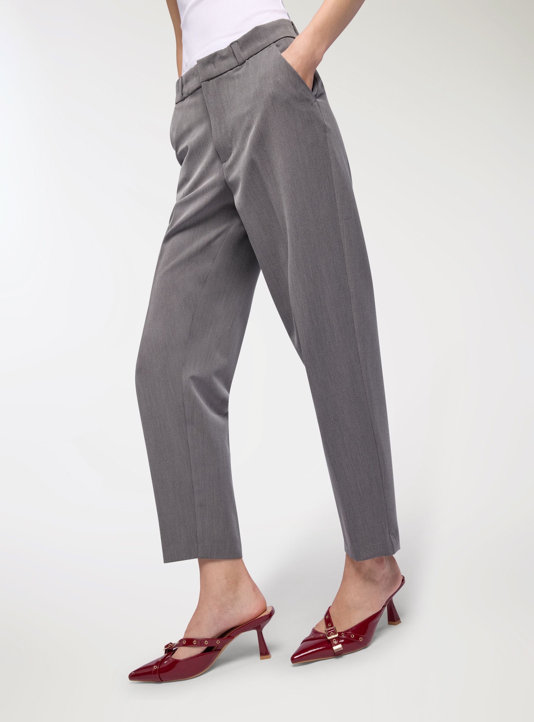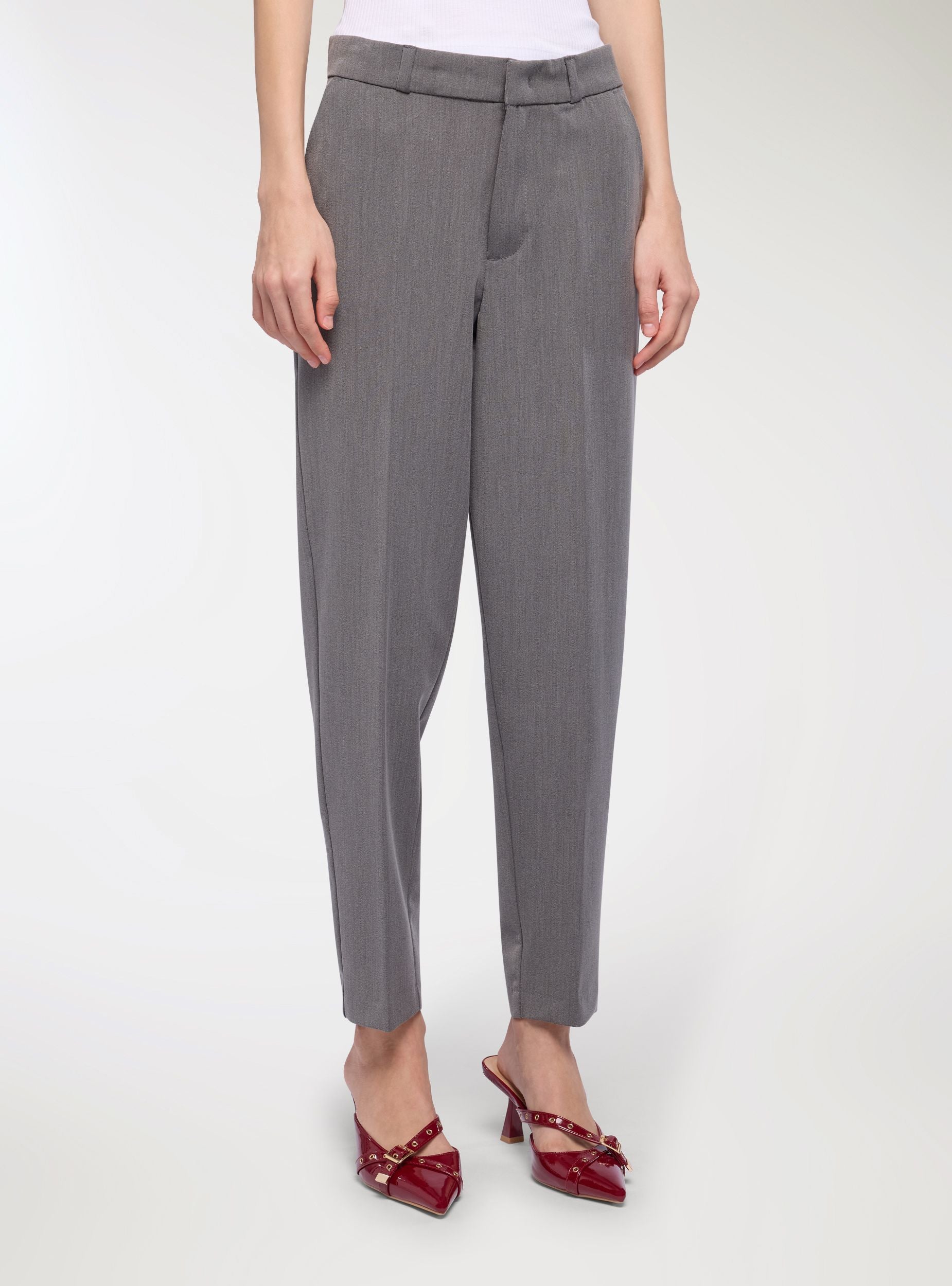 Tessuto caldo. Pantaloni lunghi da donna in tinta unita, taglio dritto con piega stirata sulla gamba e ispirazione chino. Vita con passanti, chiusura anteriore nascosta, tasche alla francese e posteriori a filetto per una linea pulita. Il materiale pesante li rende perfetti per le giornate autunnali e invernali. Vestibilità comoda con vita elasticizzata che valorizza senza costringere. Perfetti per l’ufficio e il tempo libero, si abbinano a camicie e blazer oppure a maglioncini e sneakers per look più casual.