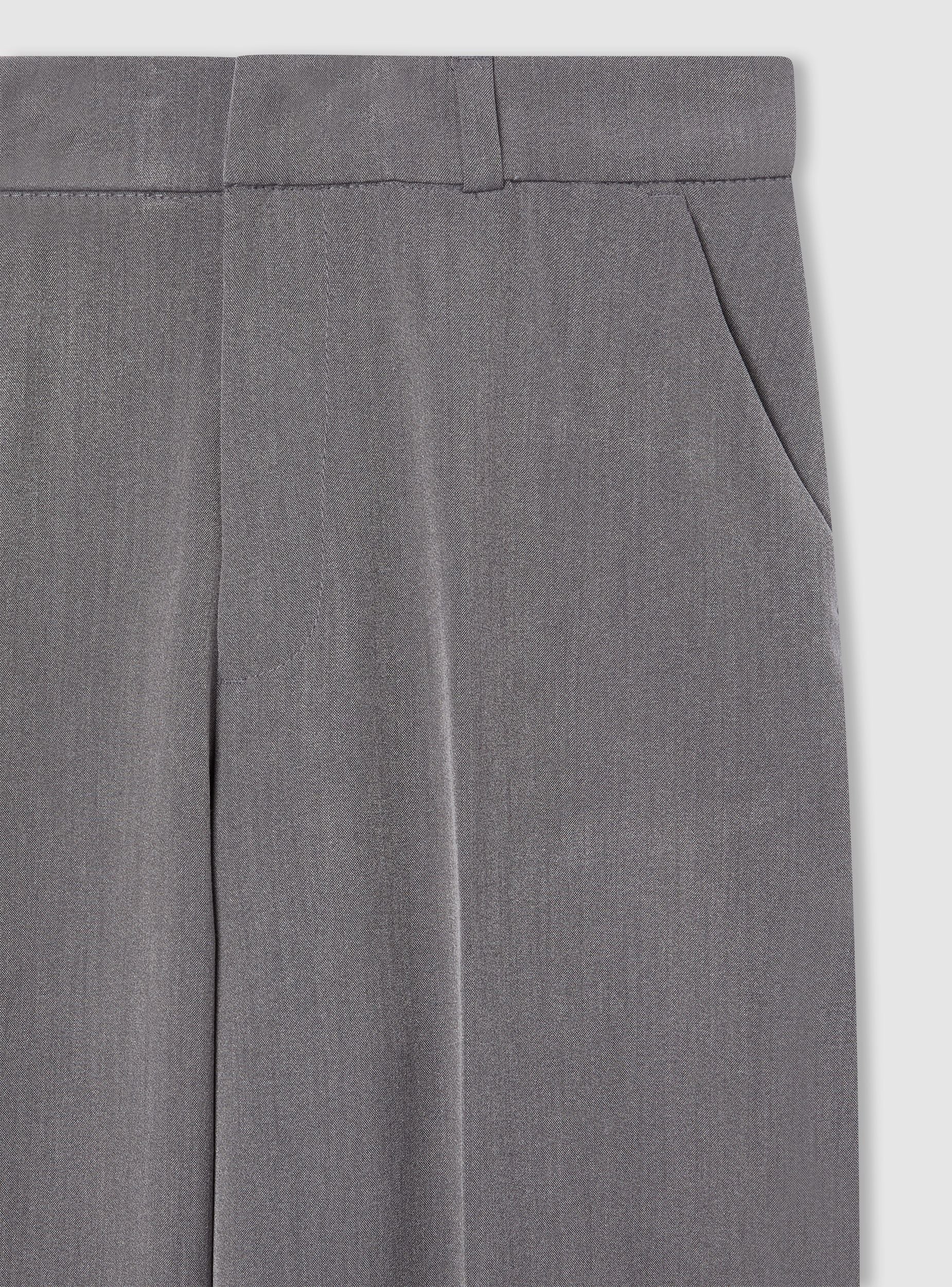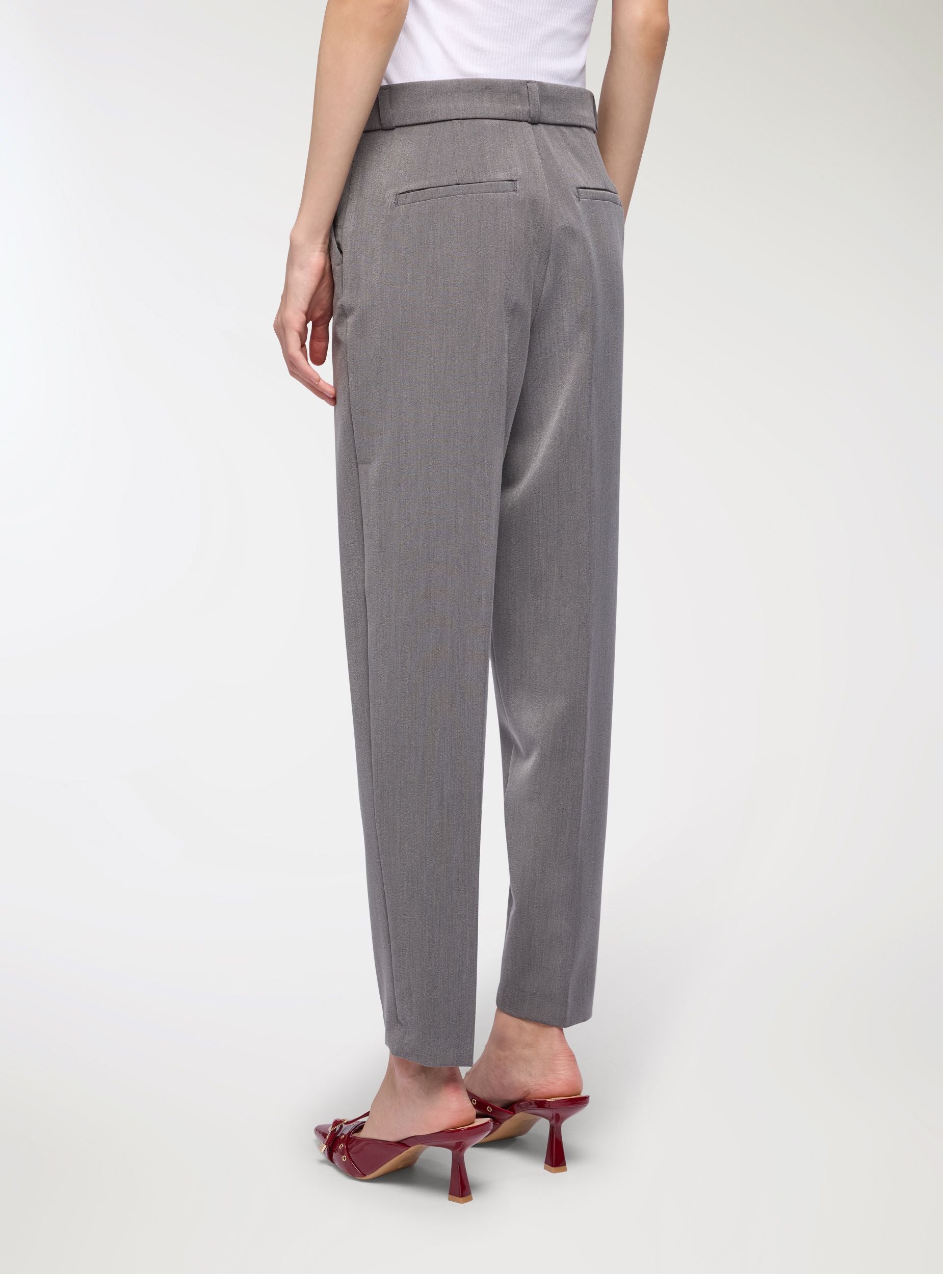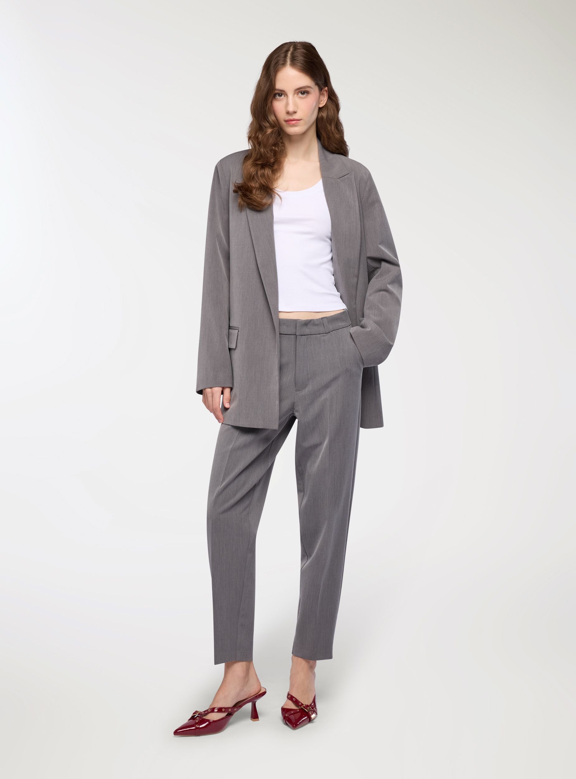 Tessuto caldo. Pantaloni lunghi da donna in tinta unita, taglio dritto con piega stirata sulla gamba e ispirazione chino. Vita con passanti, chiusura anteriore nascosta, tasche alla francese e posteriori a filetto per una linea pulita. Il materiale pesante li rende perfetti per le giornate autunnali e invernali. Vestibilità comoda con vita elasticizzata che valorizza senza costringere. Perfetti per l’ufficio e il tempo libero, si abbinano a camicie e blazer oppure a maglioncini e sneakers per look più casual.