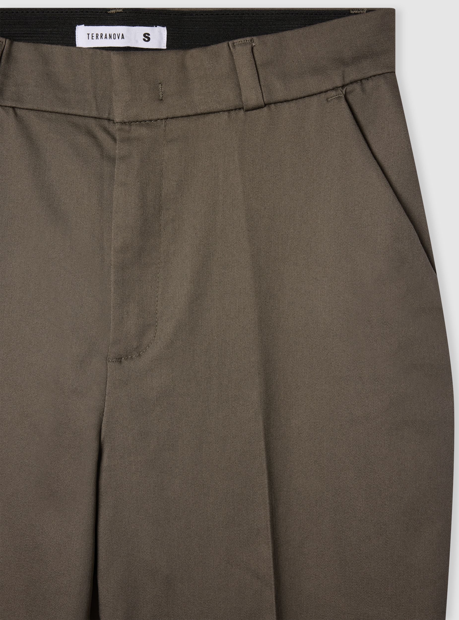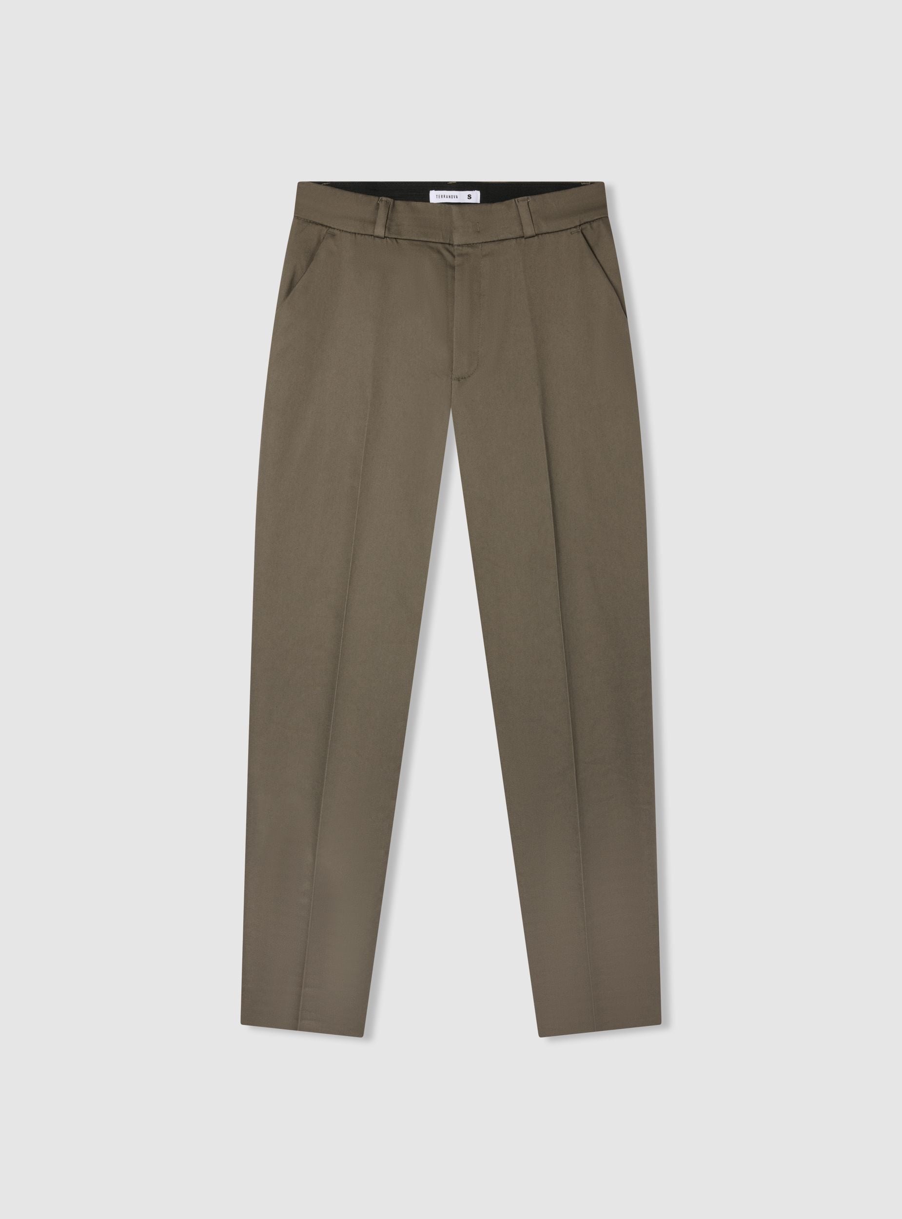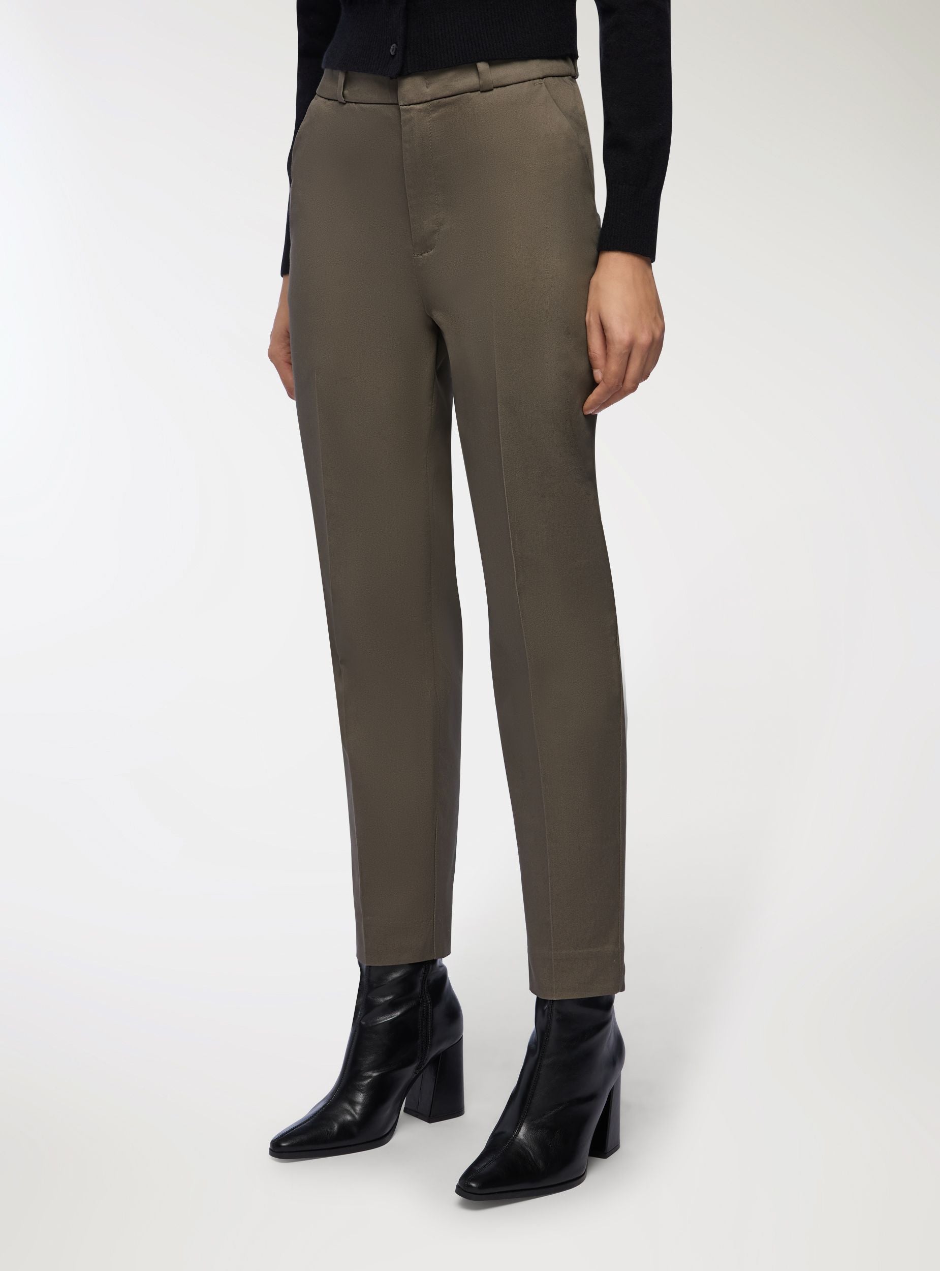 Pantaloni lunghi da donna, modello chino, con vestibilità regolare, ideali per un look formale o casual. Dotati di chiusura con bottone, zip e gancio, presentano tasche laterali e passanti per cintura. Il design a sigaretta valorizza la silhouette, rendendoli perfetti per essere abbinati a camicie o bluse per un outfit da ufficio o occasioni eleganti. La loro versatilità li rende un capo indispensabile nel guardaroba.