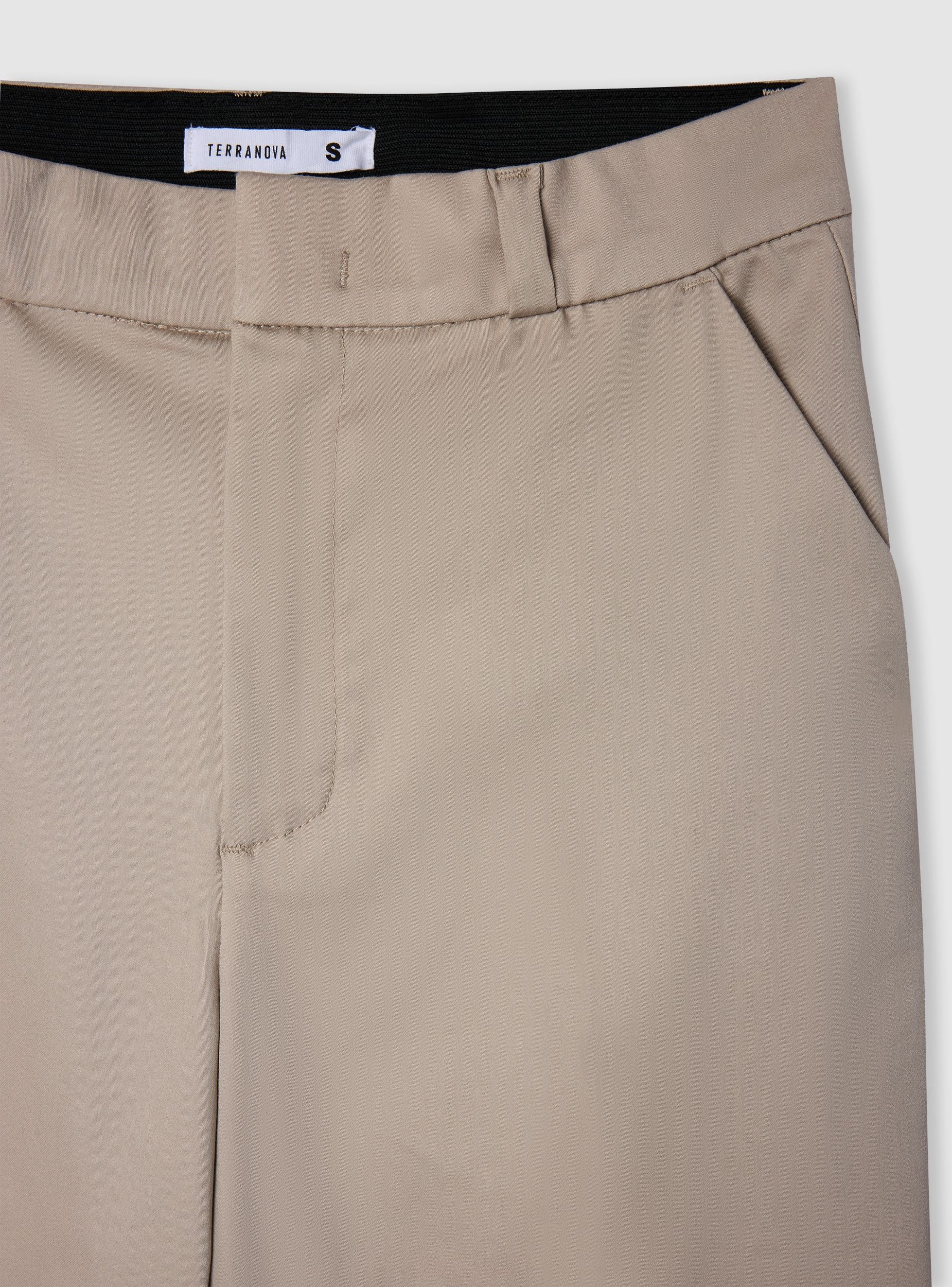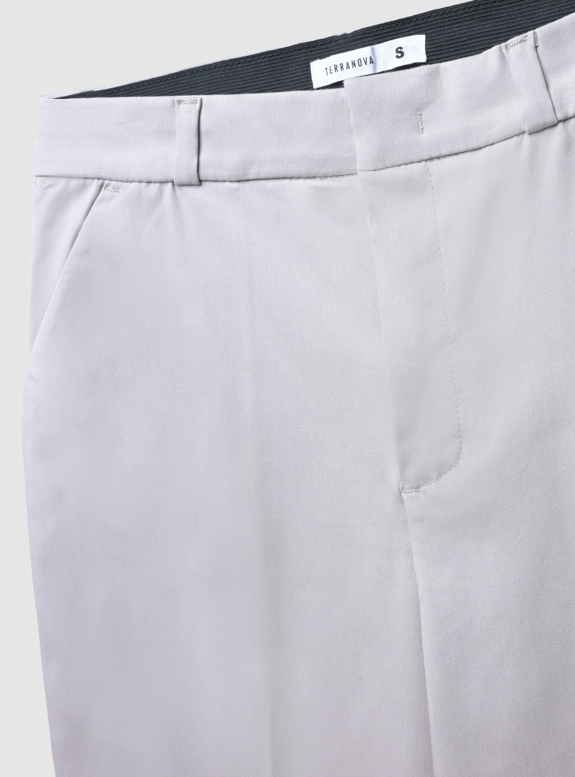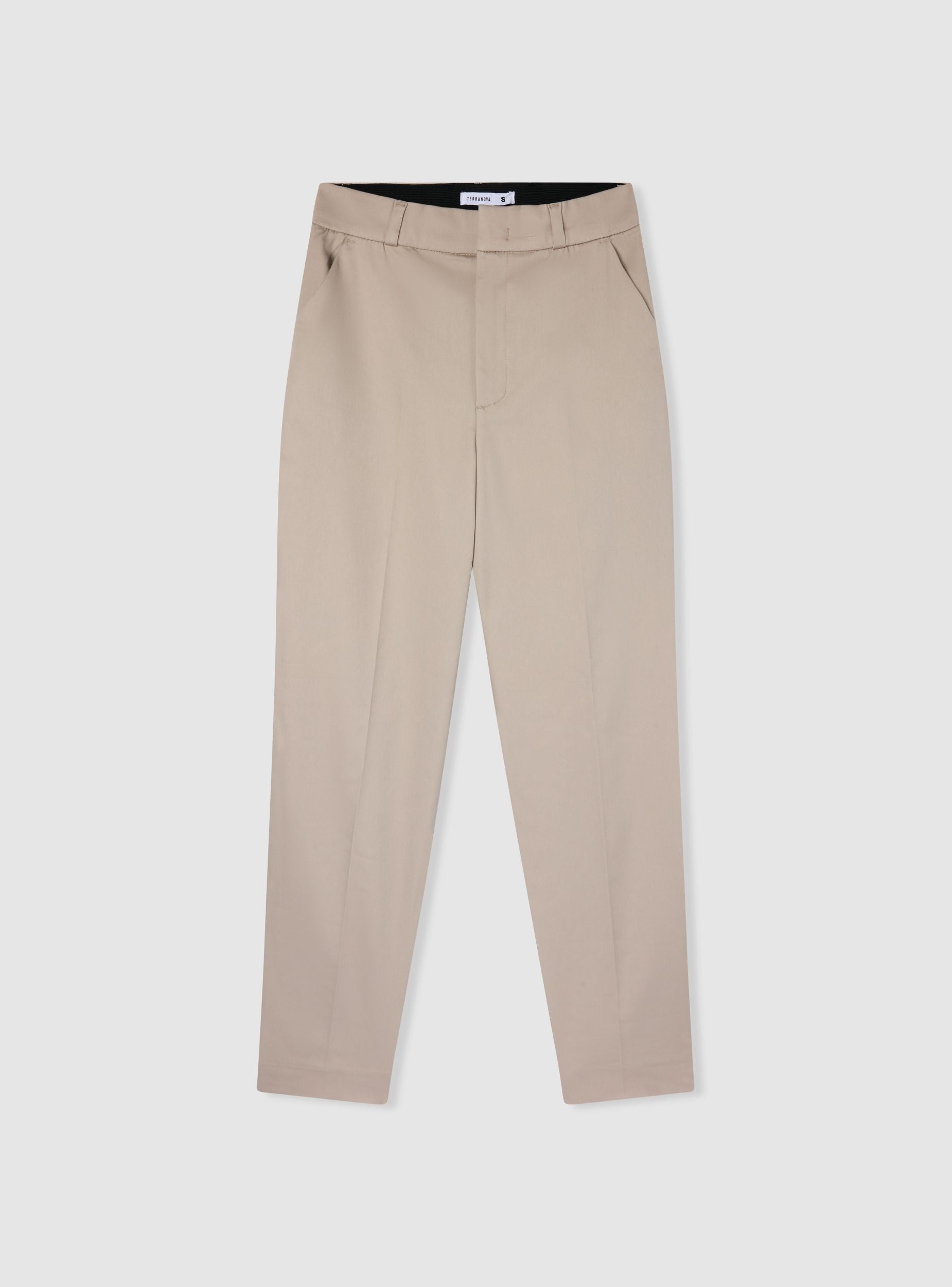 Pantaloni lunghi da donna, modello chino, con vestibilità regolare, ideali per un look formale o casual. Dotati di chiusura con bottone, zip e gancio, presentano tasche laterali e passanti per cintura. Il design a sigaretta valorizza la silhouette, rendendoli perfetti per essere abbinati a camicie o bluse per un outfit da ufficio o occasioni eleganti. La loro versatilità li rende un capo indispensabile nel guardaroba.