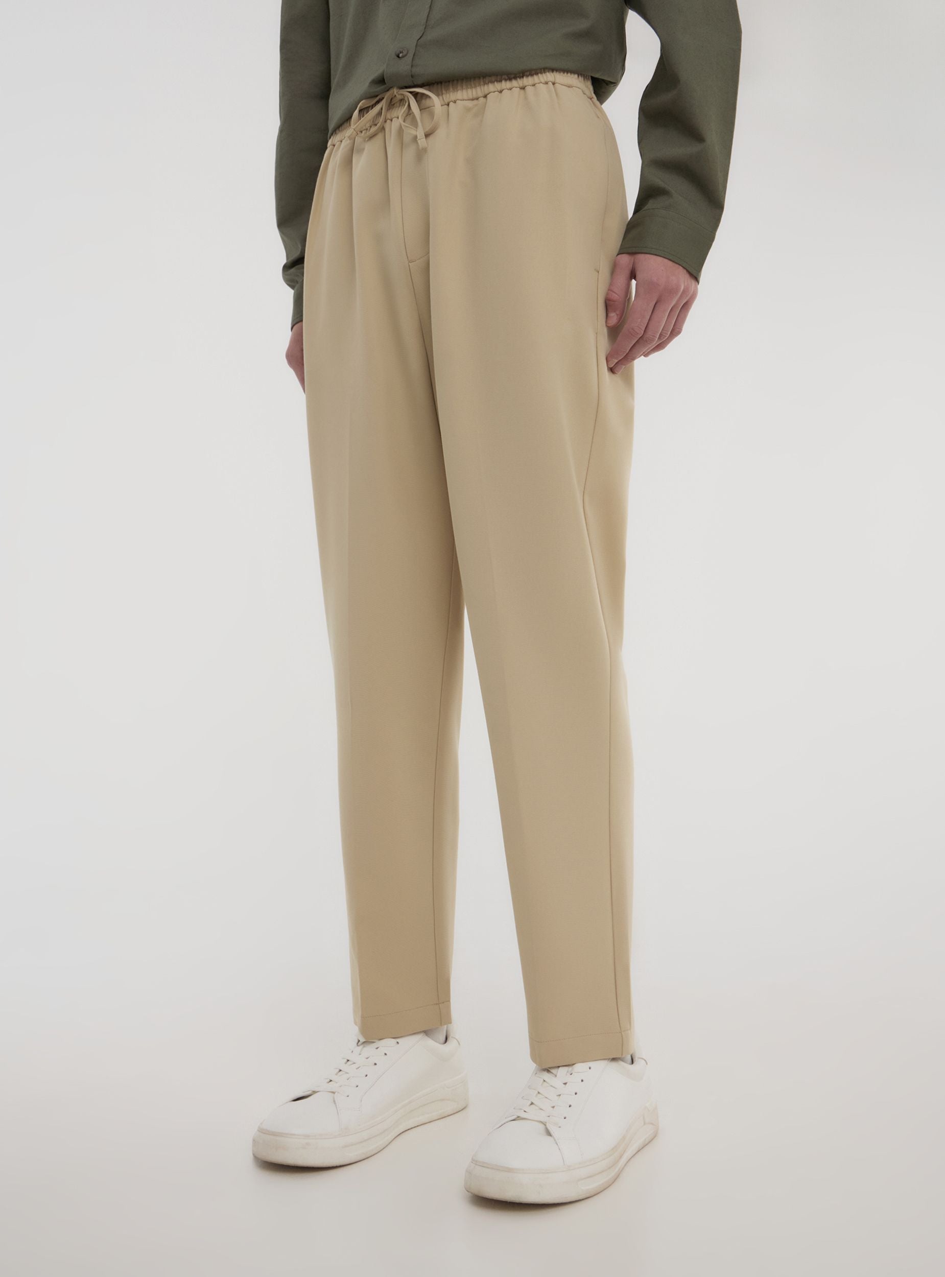 Pantaloni da uomo a tinta unita con elastico in vita regolabile tramite coulisse, perfetti per un look casual e confortevole. Dotati di tasche laterali, offrono praticità per l'uso quotidiano. Ideali per essere abbinati a t-shirt e sneakers per il tempo libero o con una felpa per un outfit rilassato e versatile, adatti a ogni occasione informale.