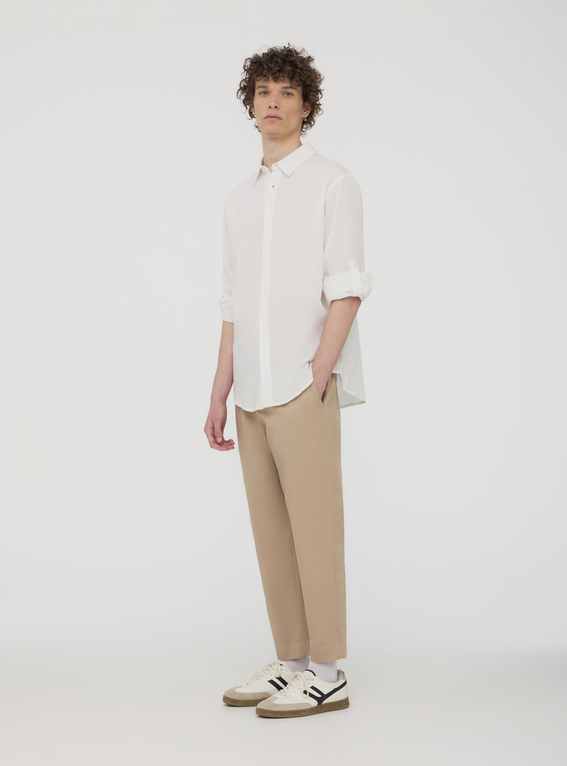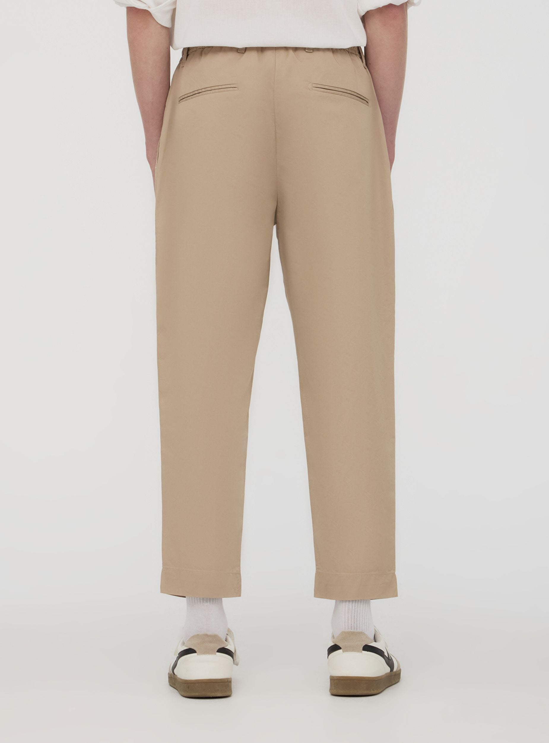 Pantaloni da uomo a tinta unita con gamba lunga e vestibilità rilassata, perfetti per un look casual o semi-formale. Presentano una chiusura con bottone e zip, oltre a una comoda fascia elastica in vita per un maggiore comfort. Dotati di tasche laterali funzionali, sono ideali da abbinare a camicie per un outfit elegante o a t-shirt per un look più informale. Adatti per l'ufficio e il tempo libero.Dettagli