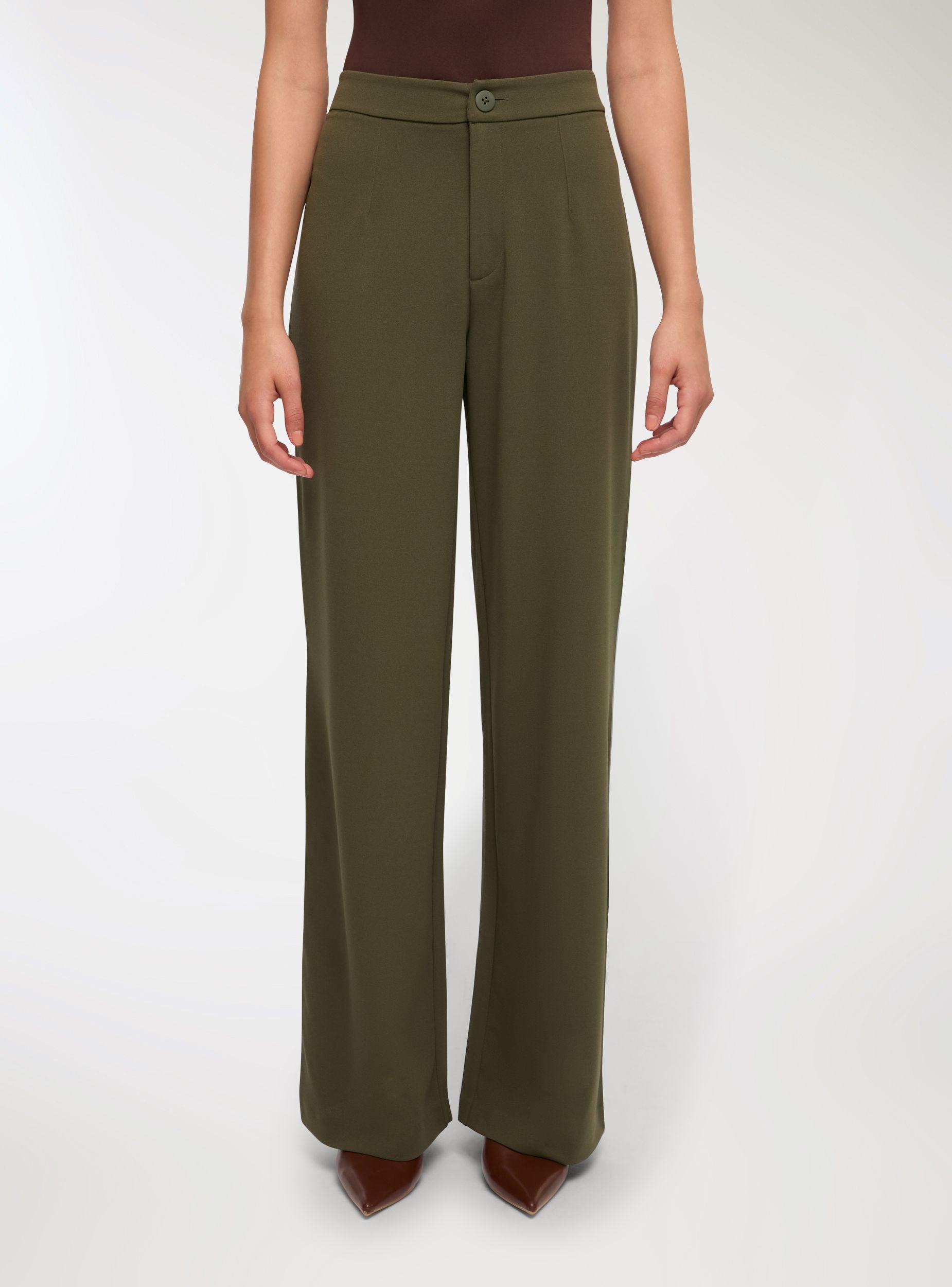 Pantaloni lunghi da donna dal taglio wide leg, ideali per un look casual e versatile. La vita elasticizzata garantisce comfort durante tutta la giornata. Perfetti da abbinare a camicie o maglie per outfit da ufficio o tempo libero, questi pantaloni valorizzano la silhouette con una linea morbida e moderna a tinta unita.