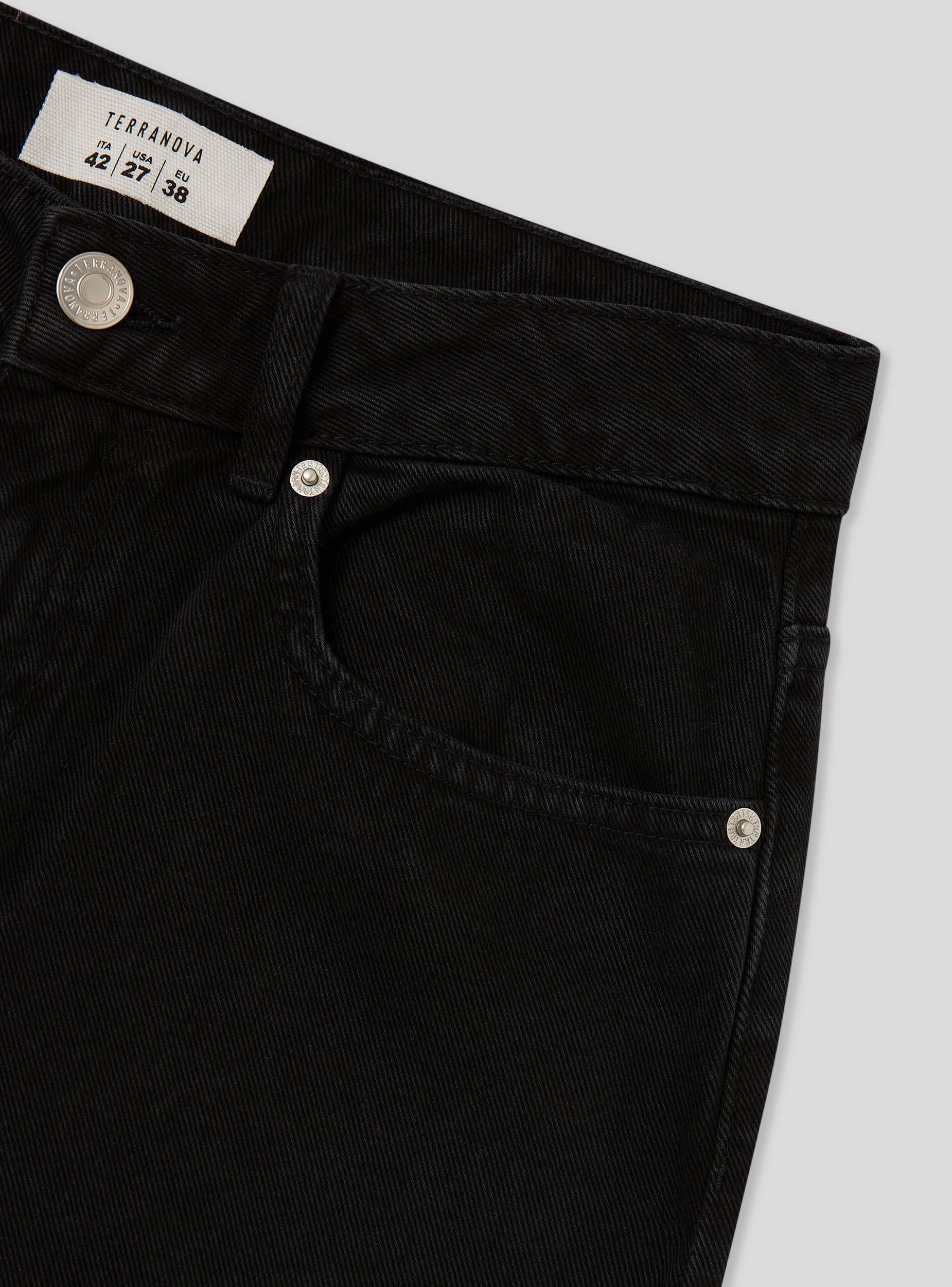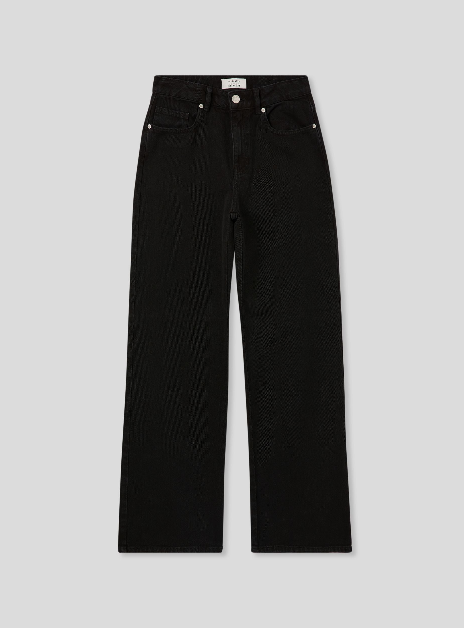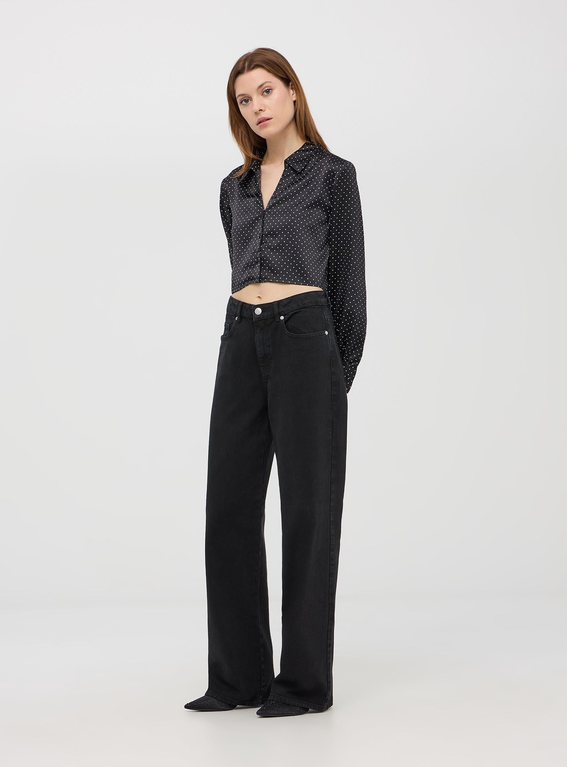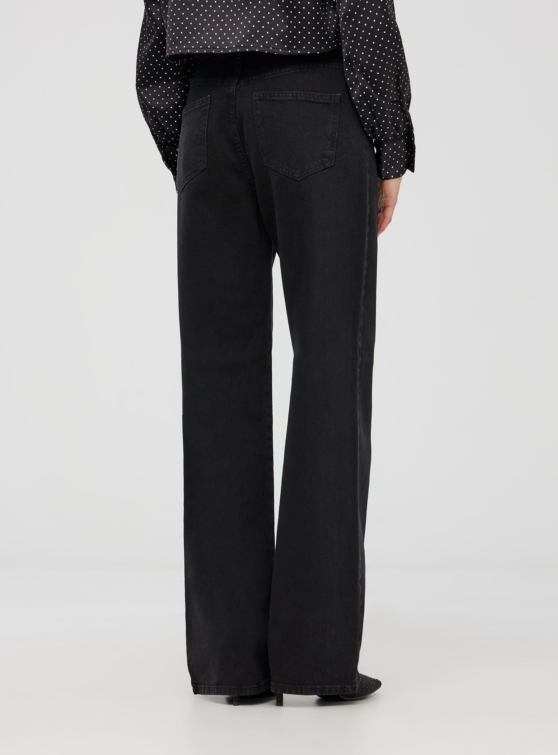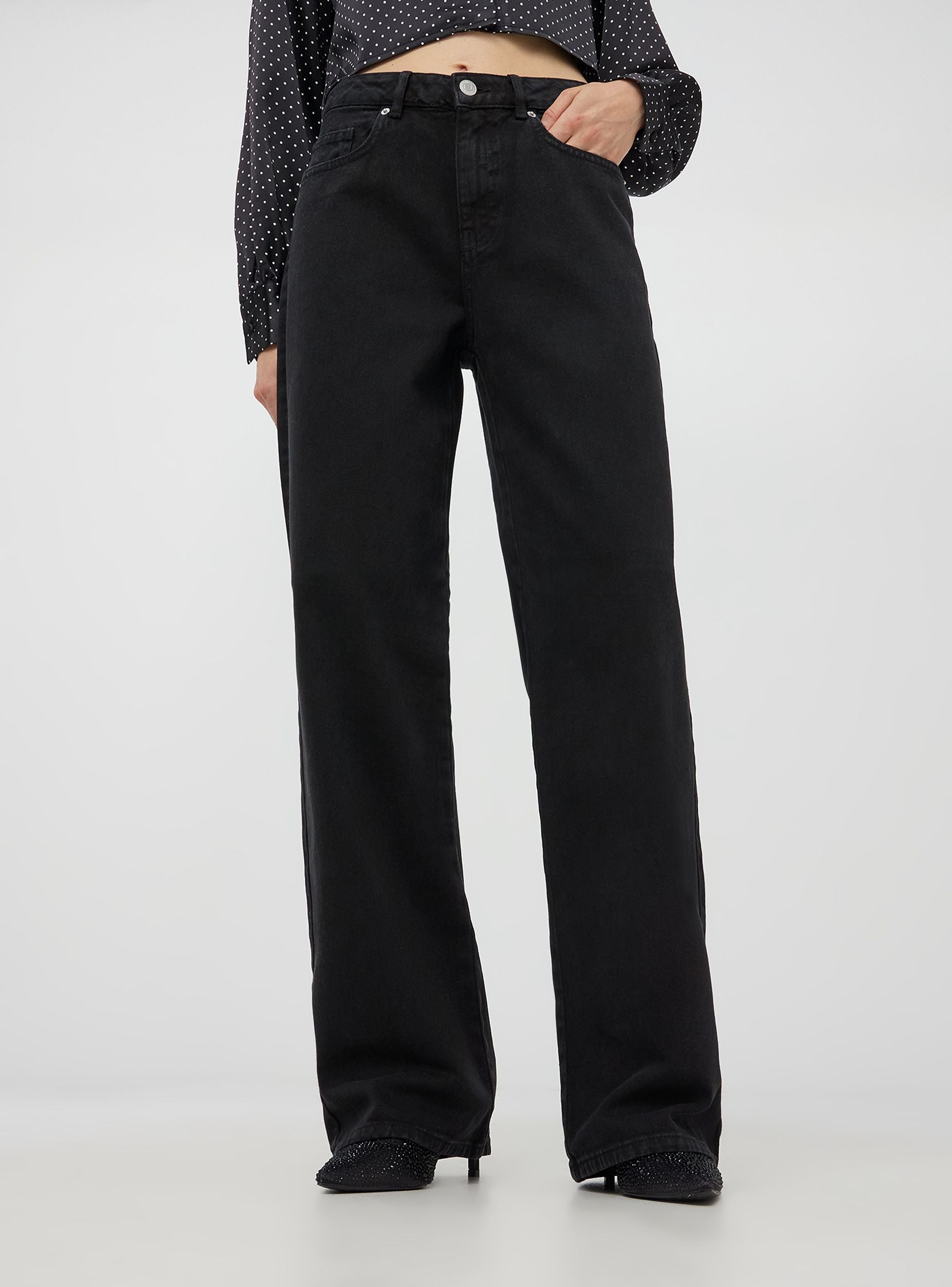 Pantaloni wide leg da donna in denim. Presentano una chiusura zip con bottone in metallo, cinque tasche funzionali con cuciture rinforzate e passanti per cintura. Ideali per look casual e raffinati, sono perfetti per un'uscita informale o per il tempo libero.