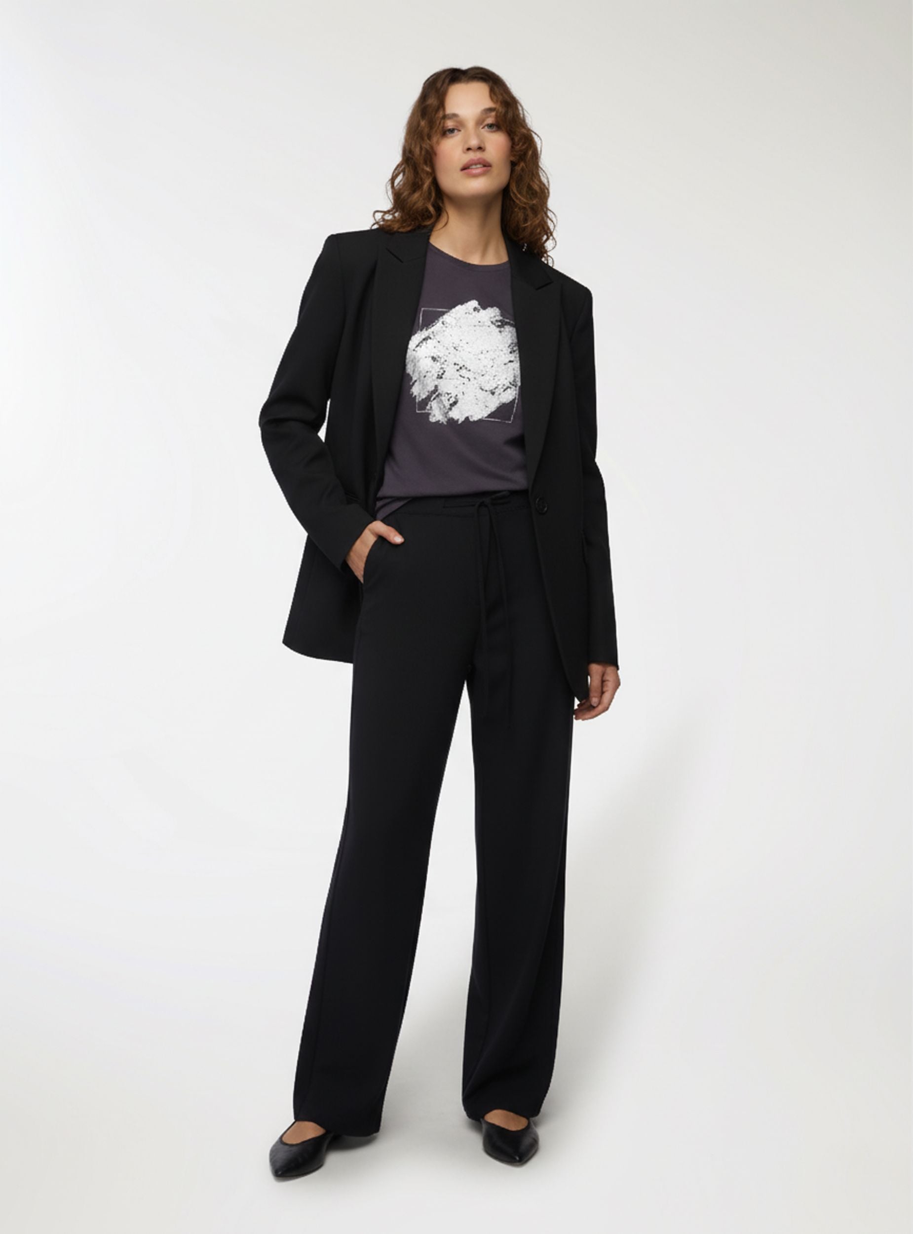Pantaloni lunghi da donna dal design moderno e versatile, caratterizzati da una vestibilità ampia e confortevole. Presentano una vita regolabile con coulisse per un tocco pratico e personalizzabile. Ideali per un look casual e rilassato, si abbinano perfettamente a top aderenti o maglie morbide, adattandosi a diverse occasioni con stile e praticità.