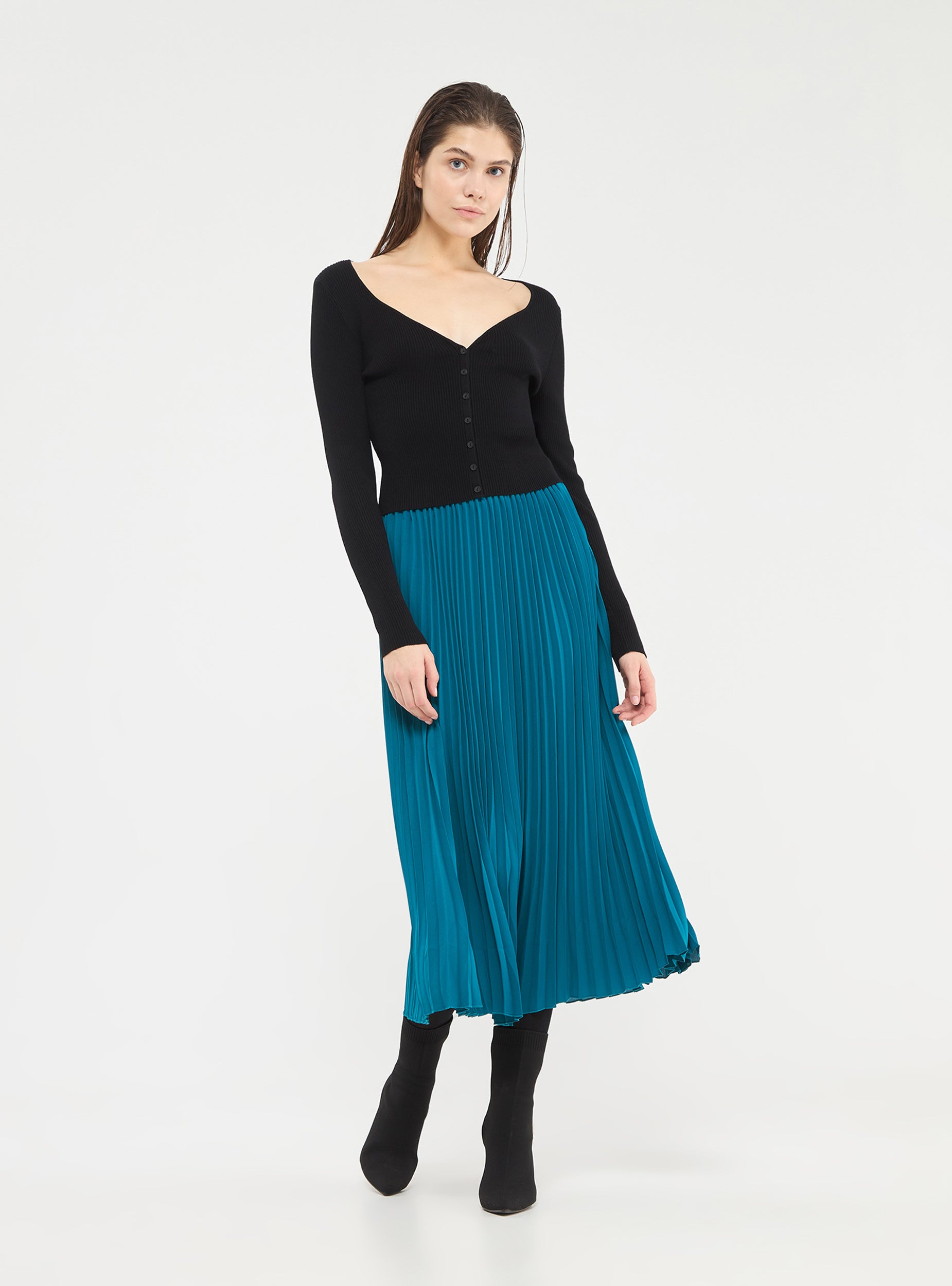 Gonna da donna plissettata, elastico dietro. Lunghezza midi.