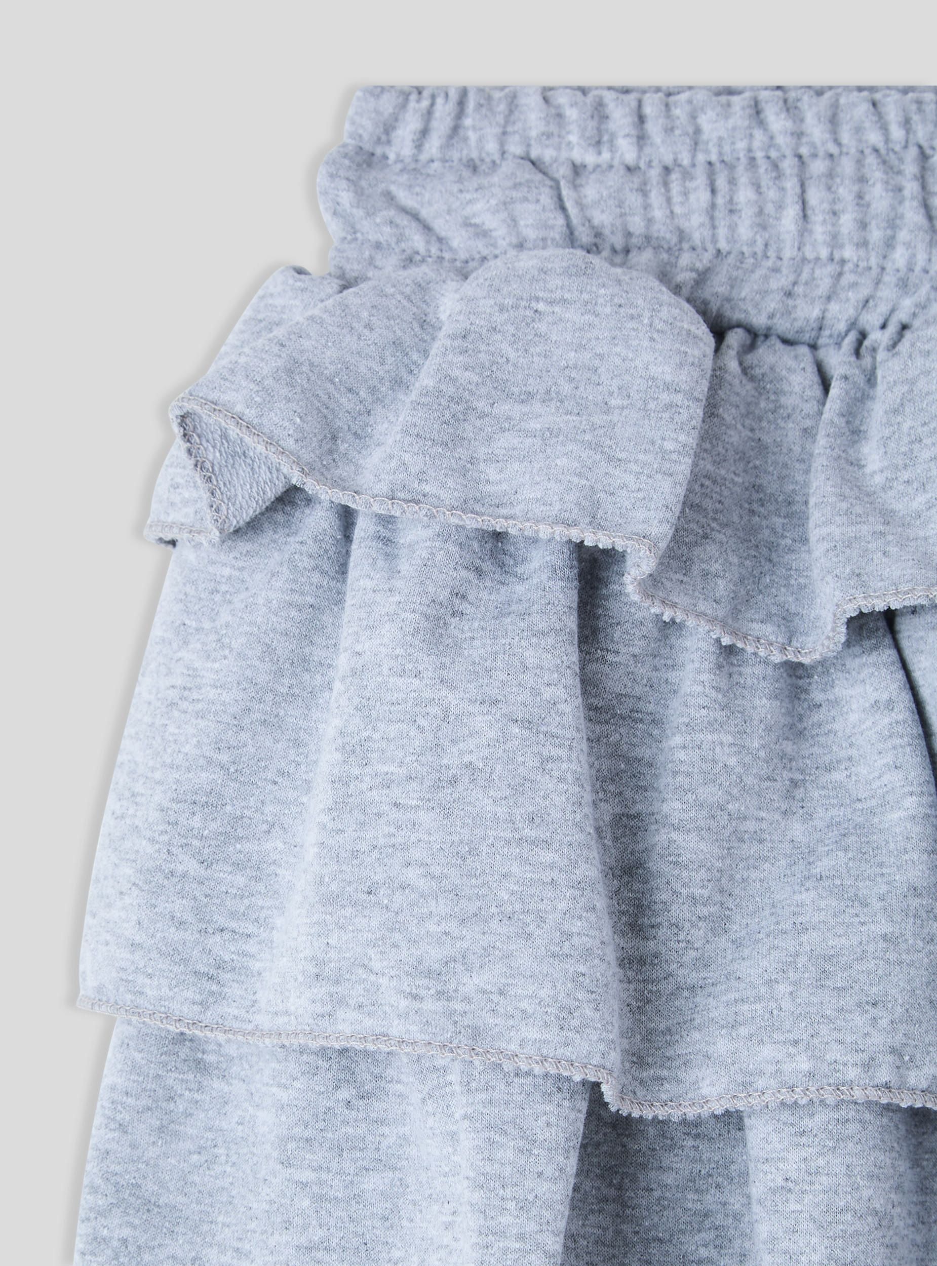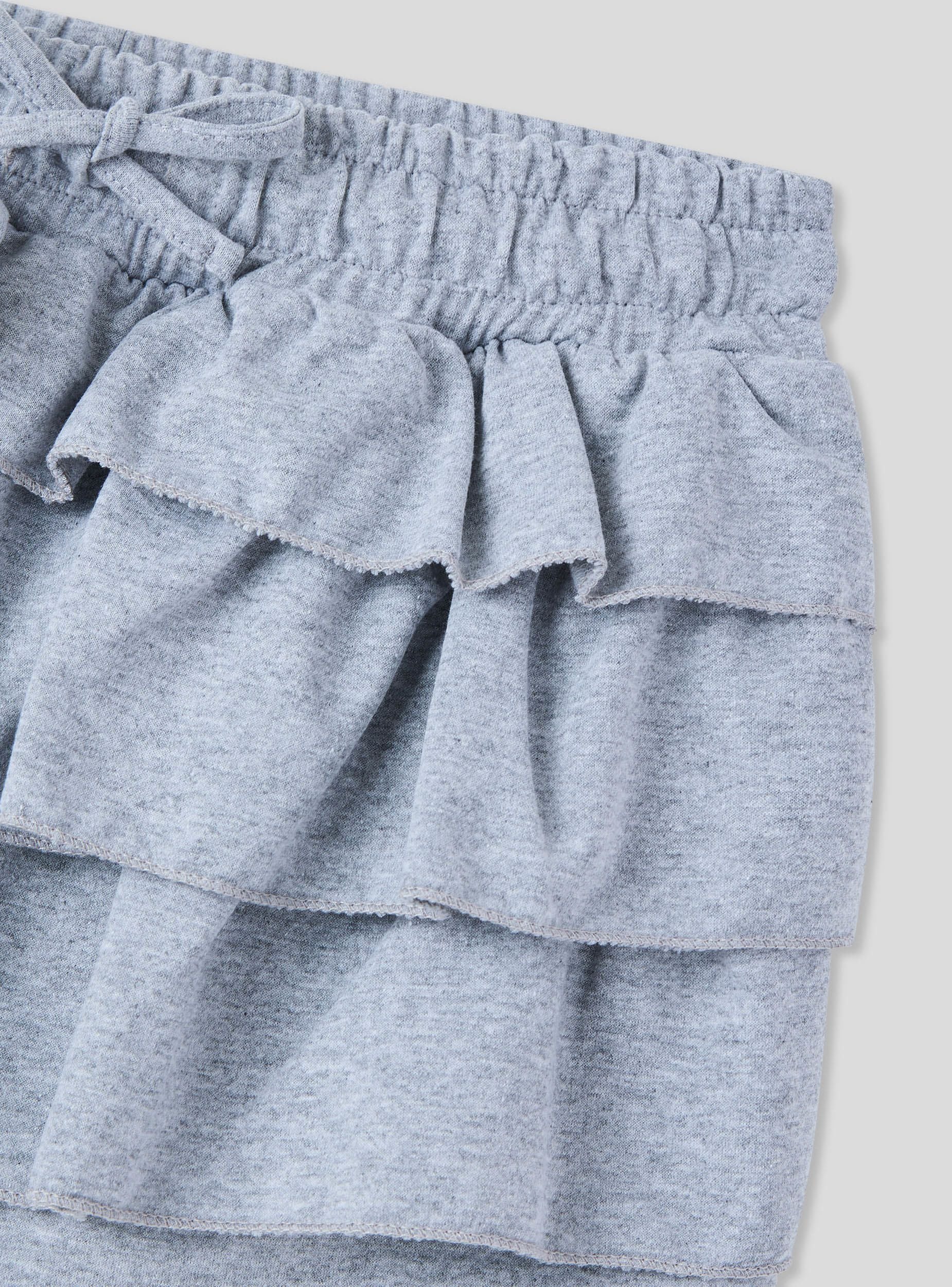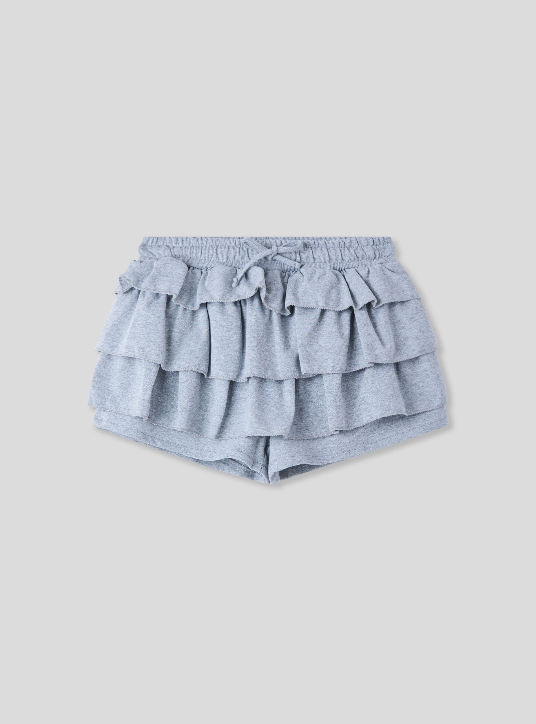 Pantaloncini-gonna da donna con balze sovrapposte che aggiungono un tocco dinamico e femminile. Ideali per un look casual e versatile, si abbinano perfettamente a magliette e sandali per un outfit estivo. La vita elasticizzata con coulisse garantisce una vestibilità comoda e regolabile. Perfetti per giornate di relax o passeggiate in città.