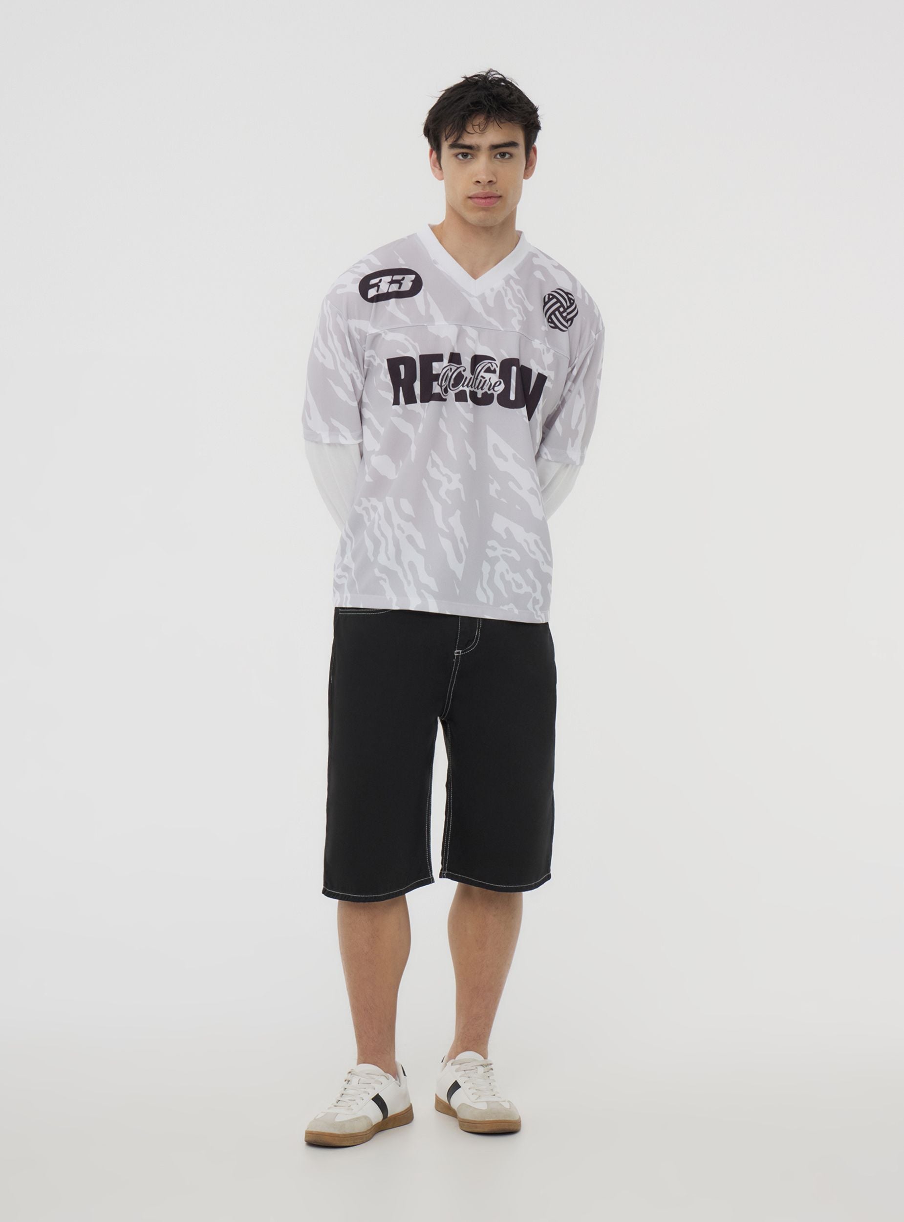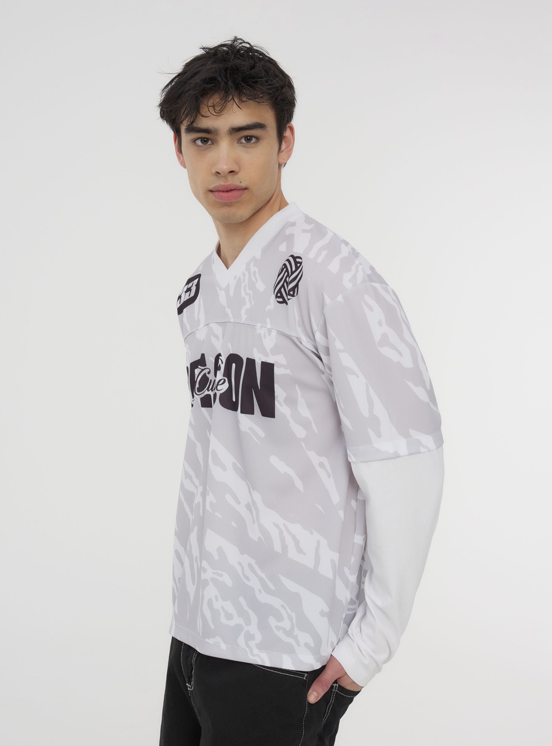 Maglietta a rete a maniche lunghe da uomo ideale per un look sportivo e dinamico, perfetta per il tempo libero o per attività all'aperto. Caratterizzata da una vestibilità regolare, presenta un design con stampa e maniche lunghe. Una scelta versatile per chi cerca comfort e stile in ogni occasione.