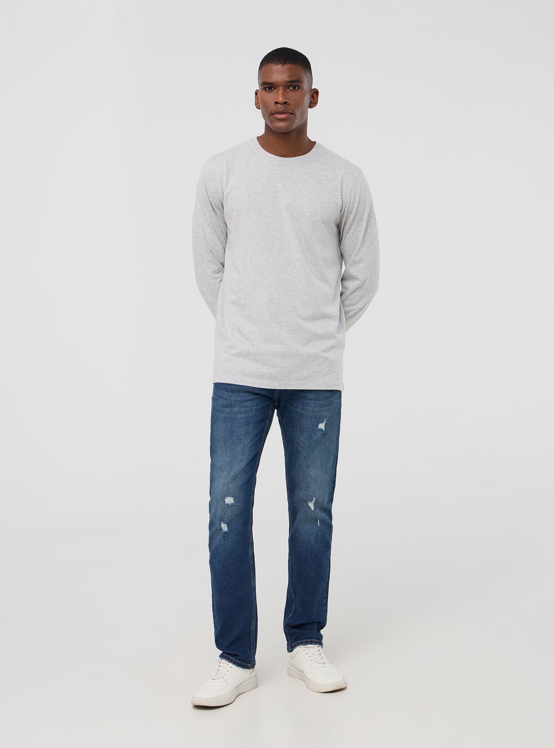 Maglia da uomo a tinta unita, caratterizzata da maniche lunghe e un comodo girocollo, perfetta per un look casual e versatile. Il design essenziale rende questa maglia un capo indispensabile nel guardaroba di ogni uomo, facilmente abbinabile con vari outfit per adattarsi a diverse occasioni, dal tempo libero agli impegni quotidiani. La vestibilità confortevole garantisce libertà di movimento, mentre il taglio lineare assicura un aspetto ordinato e sempre attuale. Ideale per creare un look semplice ma curato, questa maglia è un’opzione di stile che non passa mai di moda.