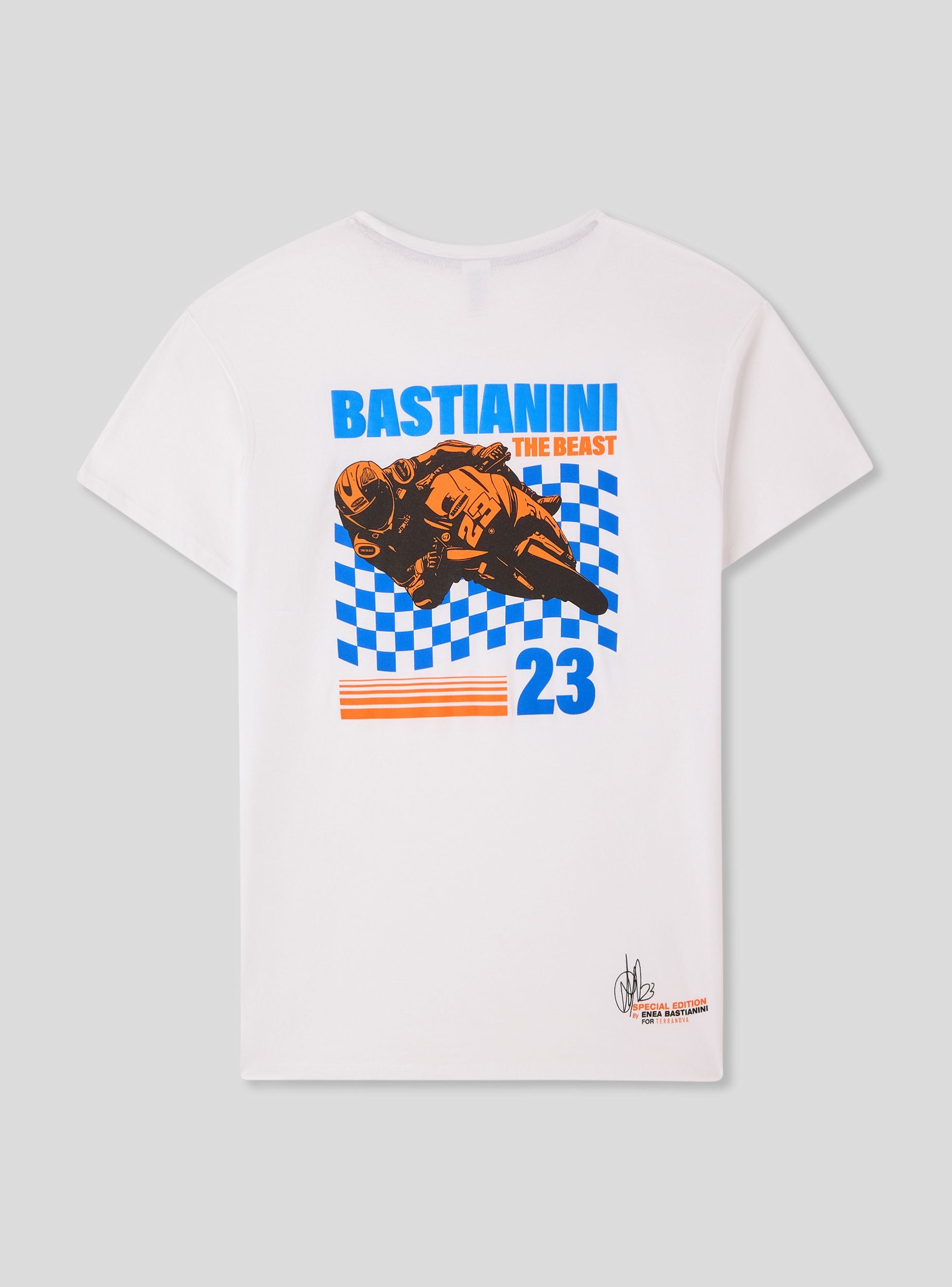 Maglietta da uomo con stampa ispirata al mondo delle moto. Presenta un design accattivante con dettagli che richiamano la velocità e l'adrenalina, ideale per gli appassionati di sport motoristici. Perfetta per un look casual e dinamico, si abbina facilmente a jeans o pantaloni sportivi per un outfit comodo e alla moda. Special edition Enea Bastianini.