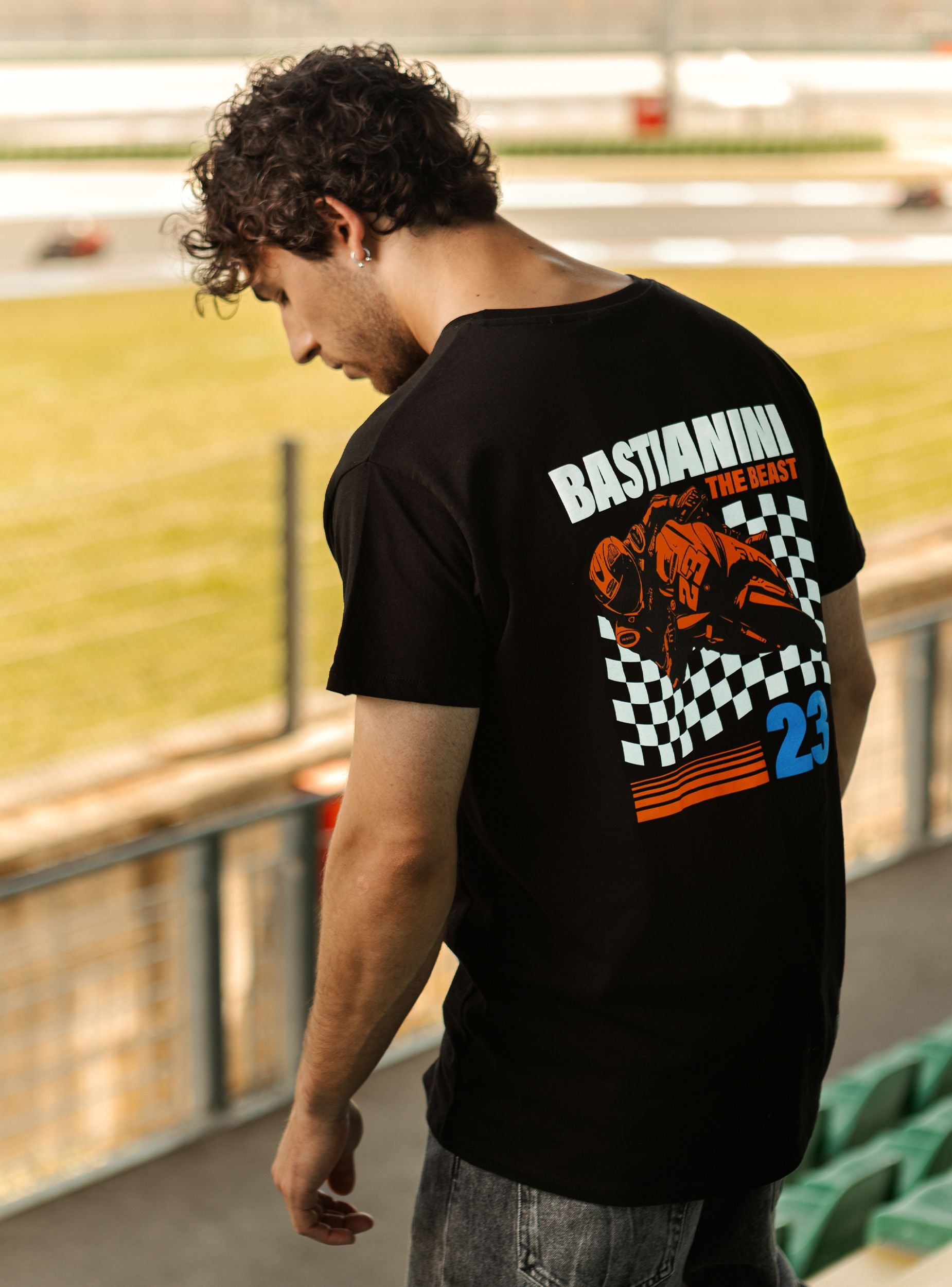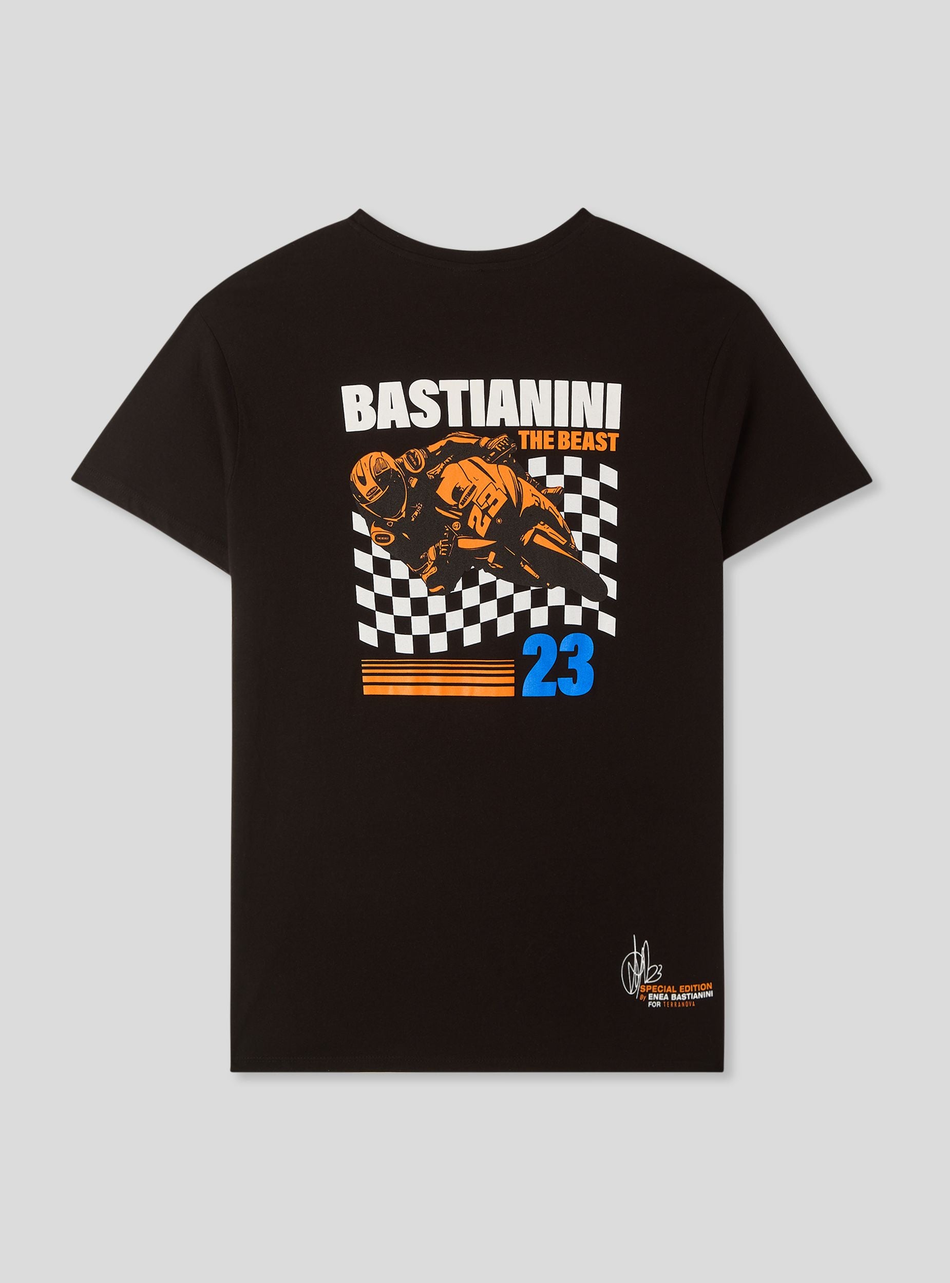 Maglietta da uomo con stampa ispirata al mondo delle moto. Presenta un design accattivante con dettagli che richiamano la velocità e l'adrenalina, ideale per gli appassionati di sport motoristici. Perfetta per un look casual e dinamico, si abbina facilmente a jeans o pantaloni sportivi per un outfit comodo e alla moda. Special edition Enea Bastianini.