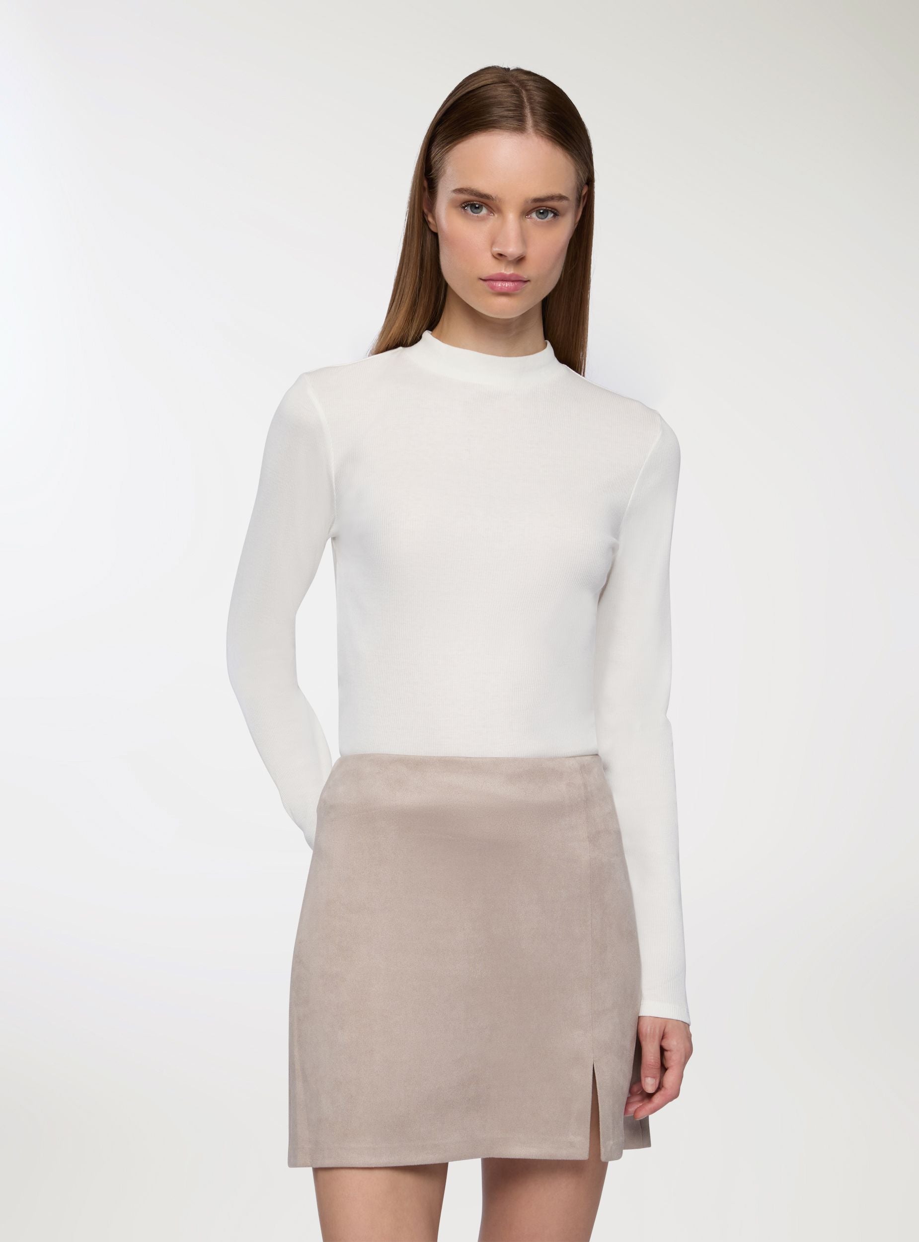 Maglia da donna a lupetto in costina, aderente e a tinta unita. Essenziale e sempre attuale, questa maglia è un vero must have di stagione. Realizzata in tessuto a costine e proposta in tinta unita, presenta una linea aderente che valorizza la silhouette con semplicità ed eleganza. Le maniche lunghe e il collo alto conferiscono un tocco raffinato e contemporaneo, ideale per affrontare con stile le giornate più fresche. Perfetta da indossare da sola per un look minimal oppure abbinata a blazer, giacche o cardigan, è il capo basico da avere sempre a portata di mano nel guardaroba. Versatile, femminile e incredibilmente comoda: la scelta giusta per ogni occasione.Dettagli