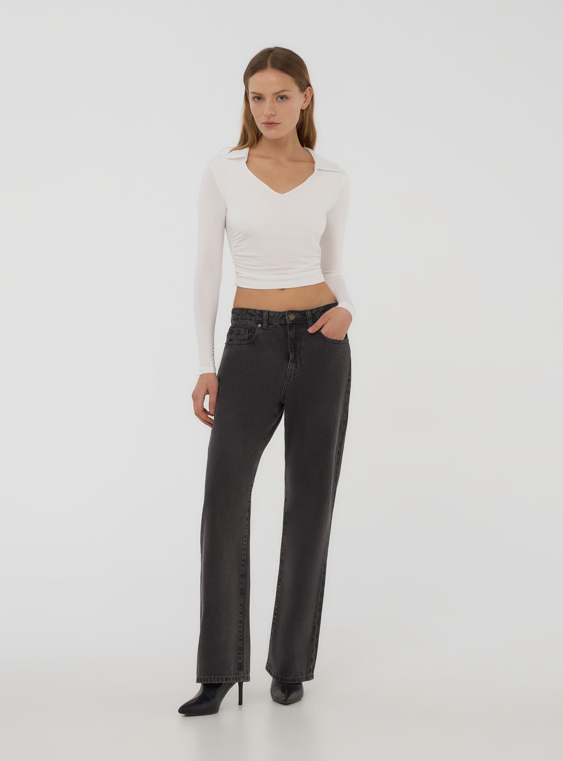 Maglia da donna dallo stile elegante e moderno, perfetta per aggiungere un tocco di femminilità al tuo outfit. Caratterizzata da una struttura incrociata sul davanti, questa polo crea un effetto avvolgente che valorizza la figura. Il colletto in stile polo e le maniche lunghe conferiscono un look sofisticato, ideale per diverse occasioni, sia formali che casual. La vestibilità comoda e il design incrociato donano un tocco distintivo, rendendola un capo versatile da abbinare sia con jeans che con pantaloni eleganti, per un risultato sempre alla moda.