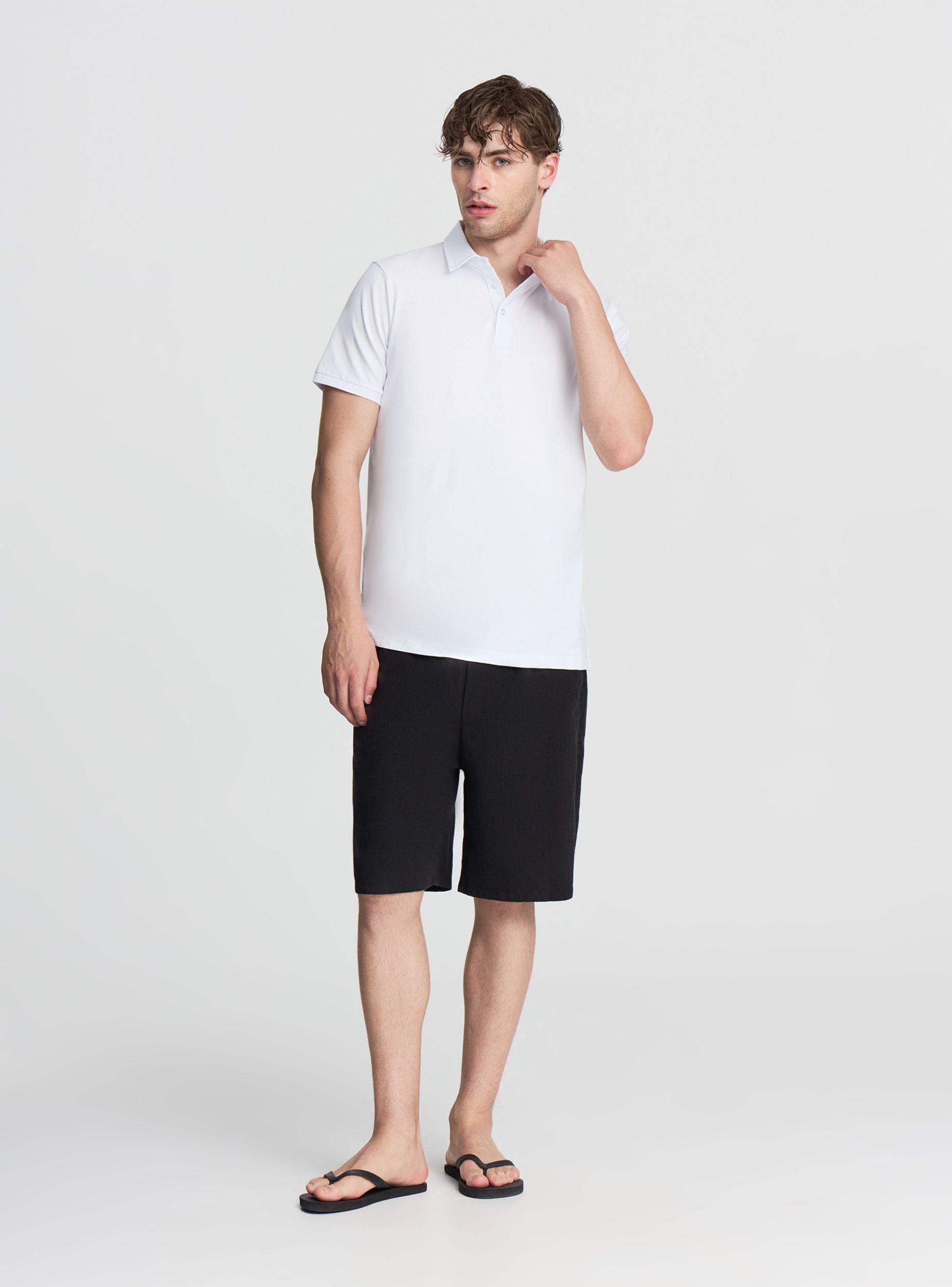 Maglietta da uomo a tinta unita con maniche corte e collo a polo, perfetta per un look casual o semi-formale. Ideale per l’ufficio, il tempo libero o un’uscita serale, si abbina facilmente a jeans, chino o bermuda. Il design essenziale la rende un capo versatile e sempre attuale nel guardaroba maschile.