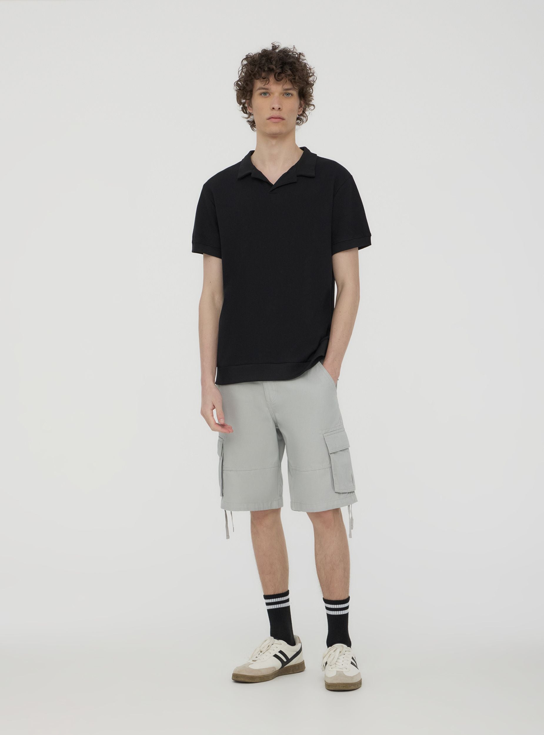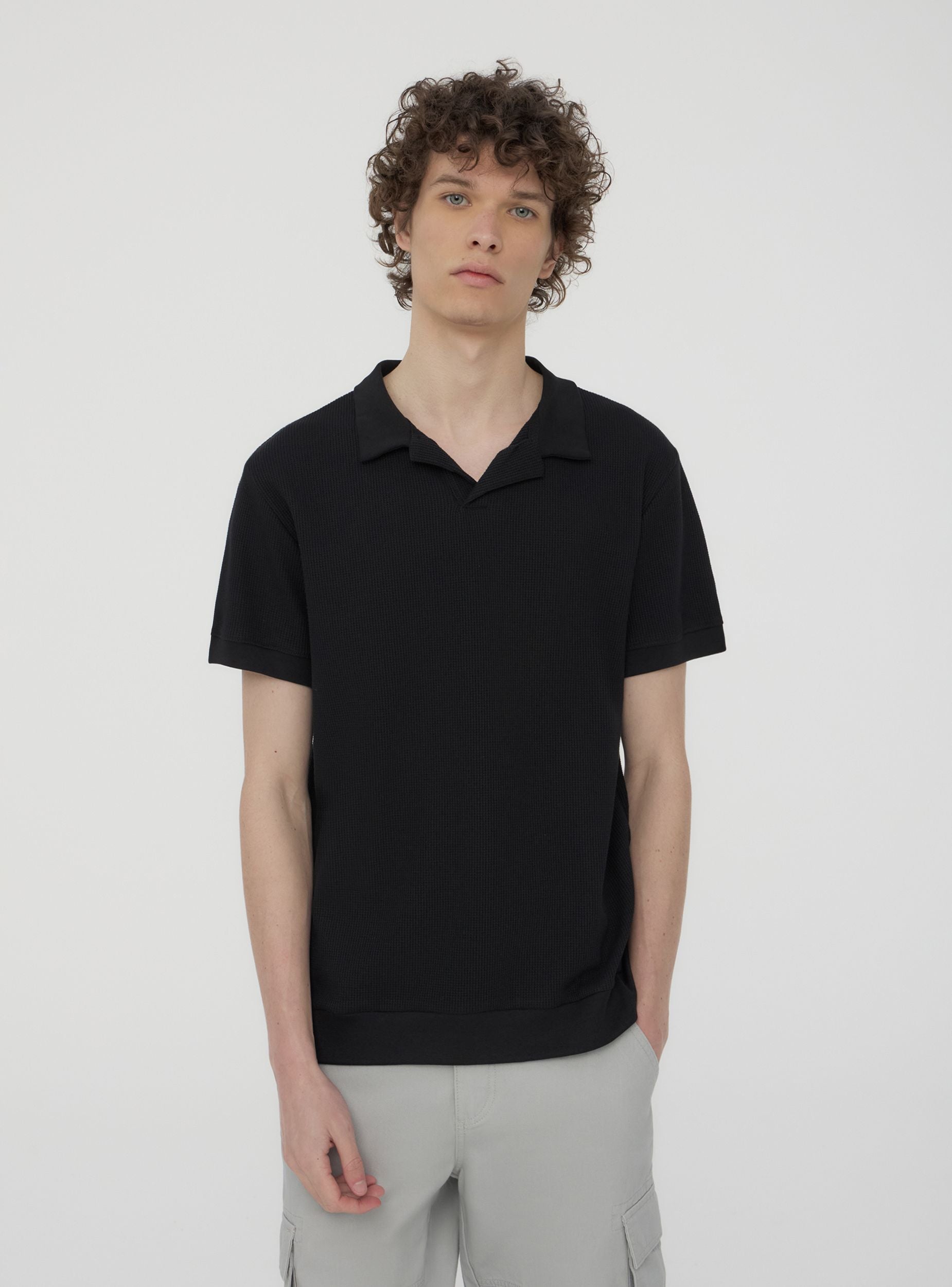 T-shirt da uomo dallo stile raffinato e casual, con design a tinta unita e texture lavorata. Dotata di collo a polo aperto e maniche corte, è ideale per look eleganti ma rilassati. Perfetta per occasioni informali o serate estive, si abbina facilmente a pantaloni chino, jeans o bermuda. Versatile e alla moda, è un capo essenziale per chi cerca un mix tra eleganza e comfort senza rinunciare allo stile.
