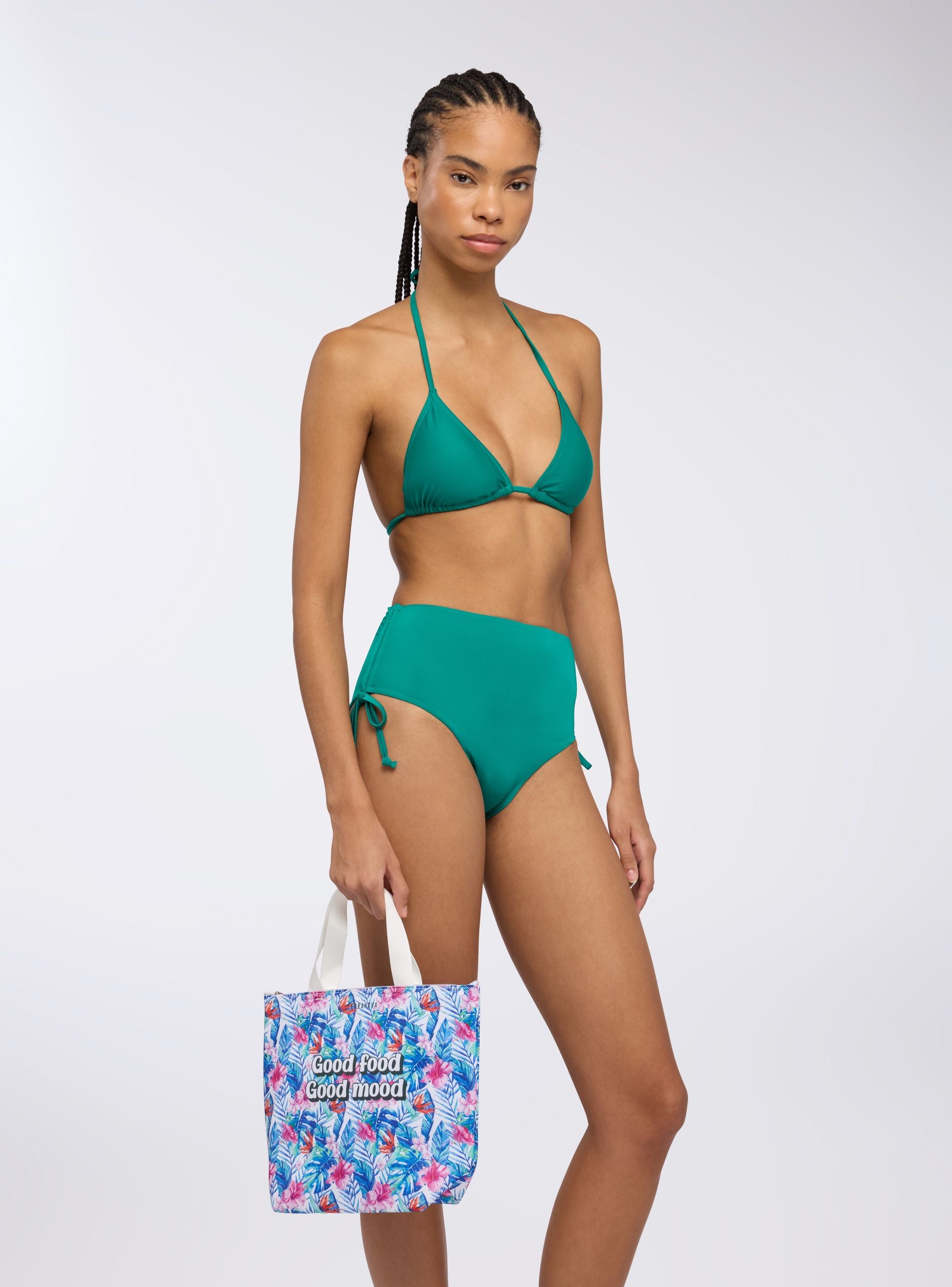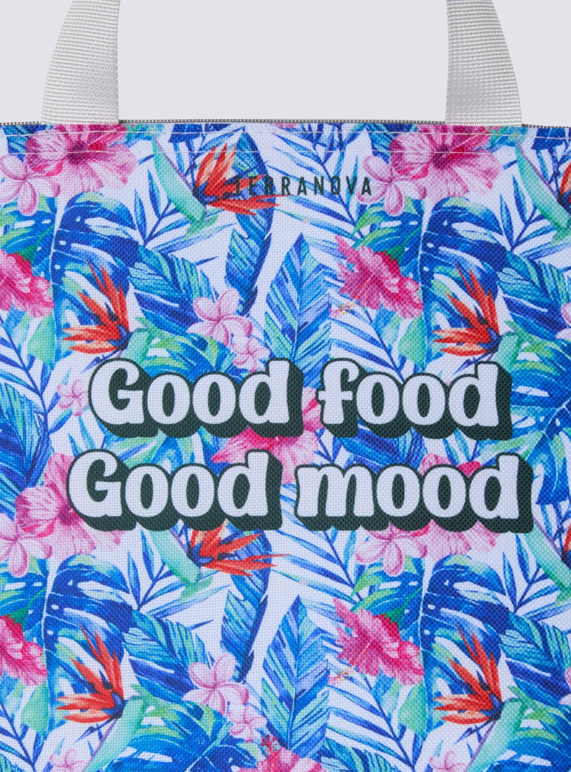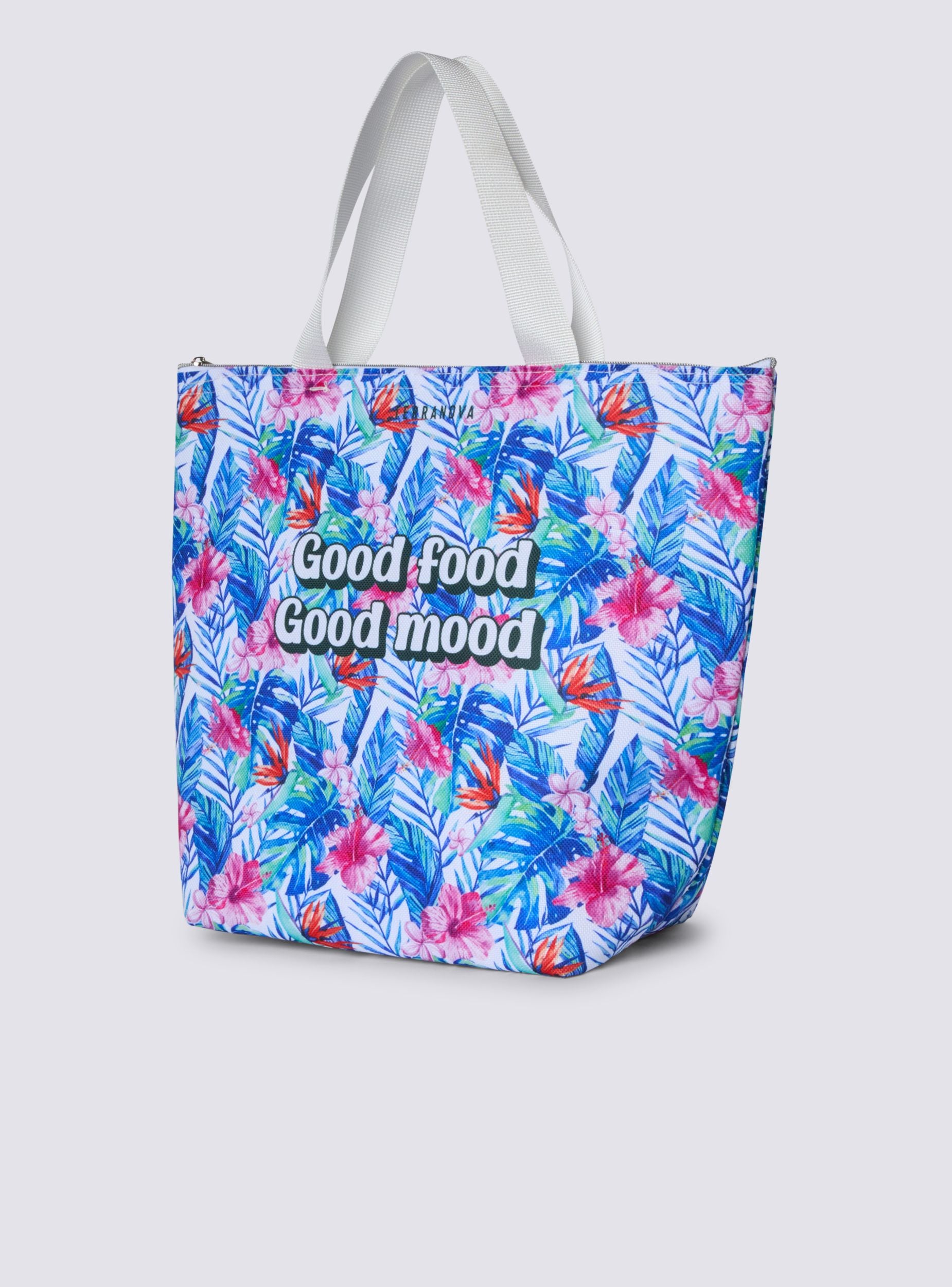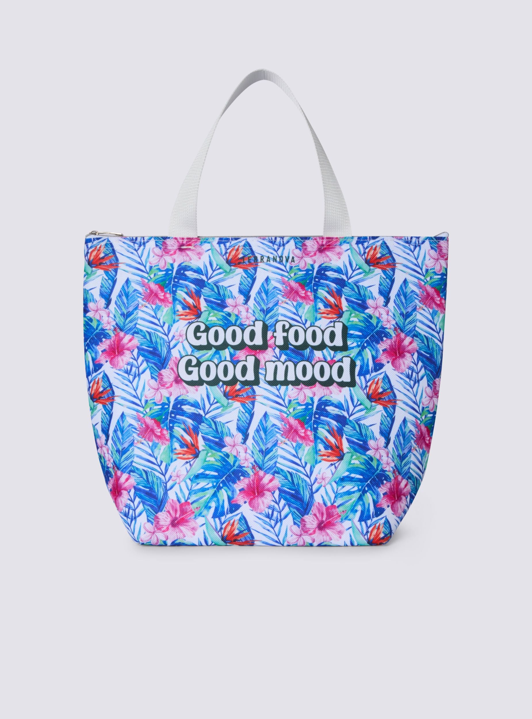 Borsa frigo da donna dallo stile vivace e funzionale, perfetta per picnic, giornate in spiaggia o pranzi all’aperto. La fantasia tropical aggiunge un tocco esotico e solare, mentre la scritta simpatica dona originalità. Dotata di zip per mantenere al fresco cibi e bevande, è l’accessorio ideale da abbinare a look estivi e casual per un mix di praticità e tendenza. Dimensioni: Altezza 26cm, Lunghezza 19cm, Profondità 12,5cm.