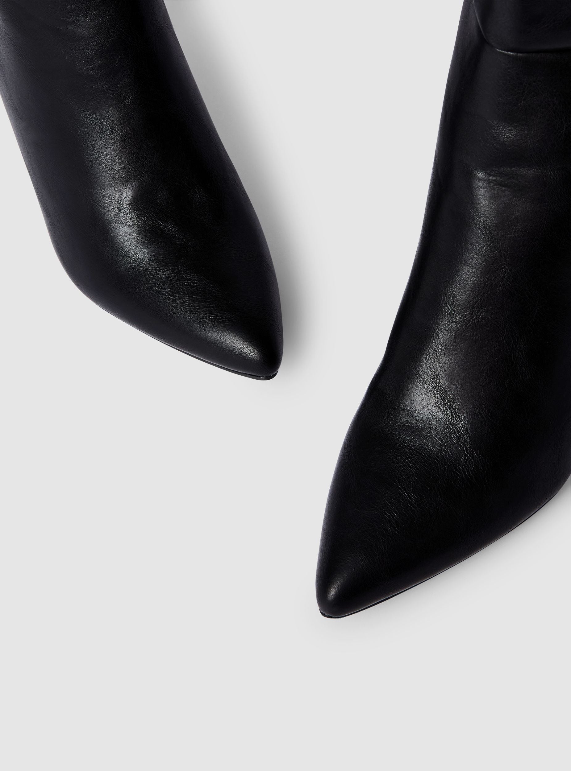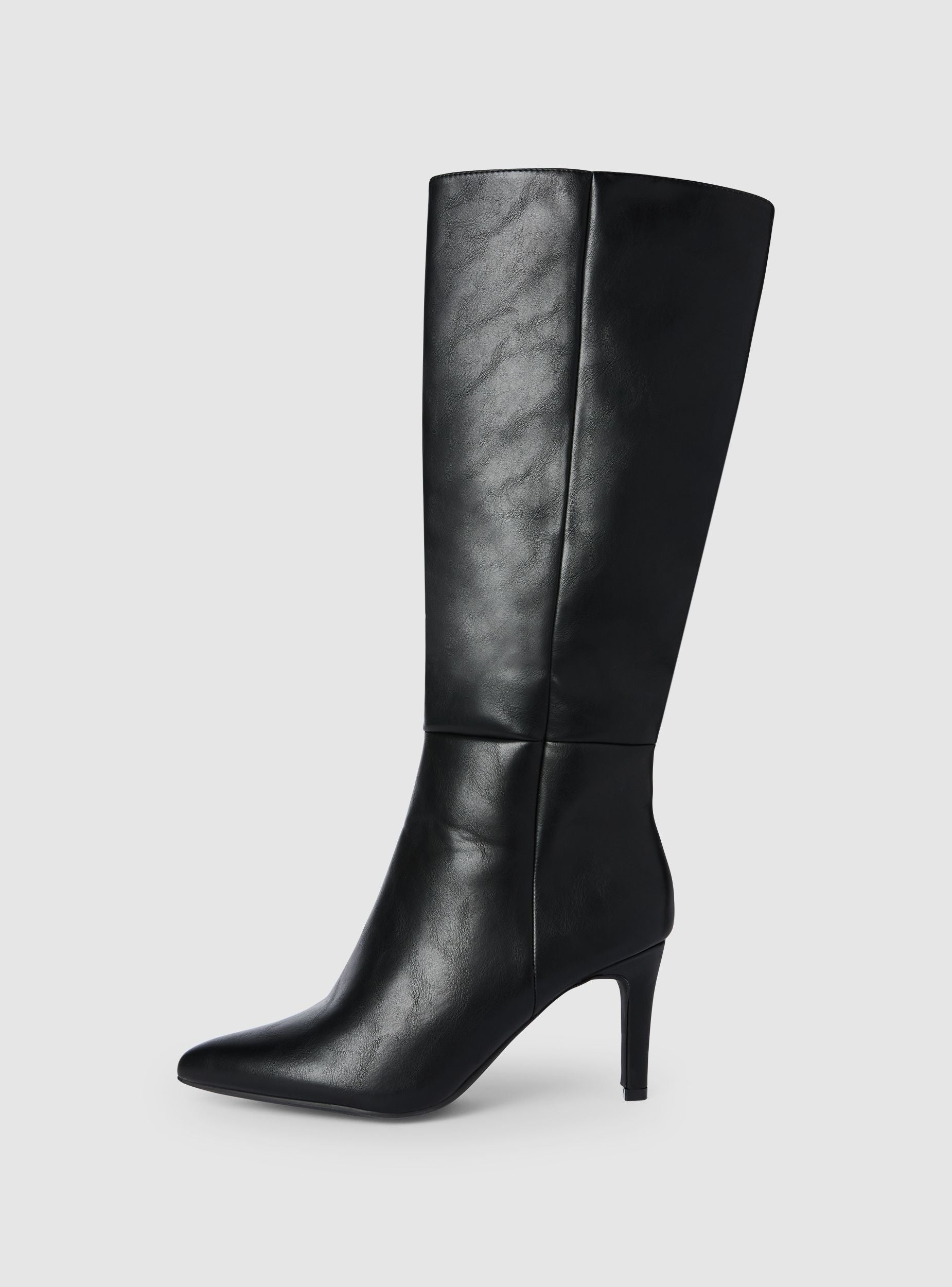 Stivali da donna alti quasi al ginocchio con punta affusolata e tacco a spillo, perfetti per look ricercati e serate. Chiusura con zip interna per una calzata pratica, tomaia liscia a tinta unita dal design essenziale che slancia la figura. Ideali con gonne midi, vestiti o jeans skinny, aggiungono un tocco raffinato a ogni outfit. Profilo pulito per un’eleganza versatile. Altezza tacco 8 cm.