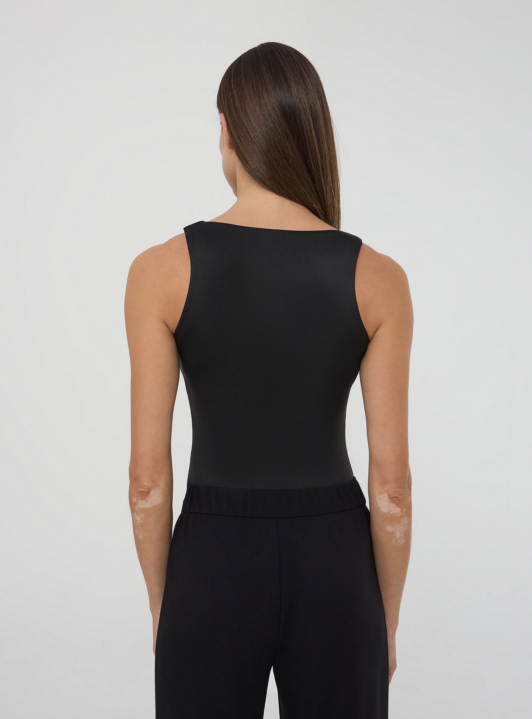 Canotta da donna caratterizzata da una tinta unita e realizzata in tessuto elasticizzato che la rende leggera e morbida sulla pelle. Il design presenta uno scollo ampio sul davanti, donando un tocco femminile e moderno. Il tessuto elasticizzato si adatta delicatamente alle forme del corpo, assicurando comfort e libertà di movimento. Ideale per la stagione estiva, grazie al suo look minimalista e pratico, perfetta per essere indossata sia come capo casual che sportivo.