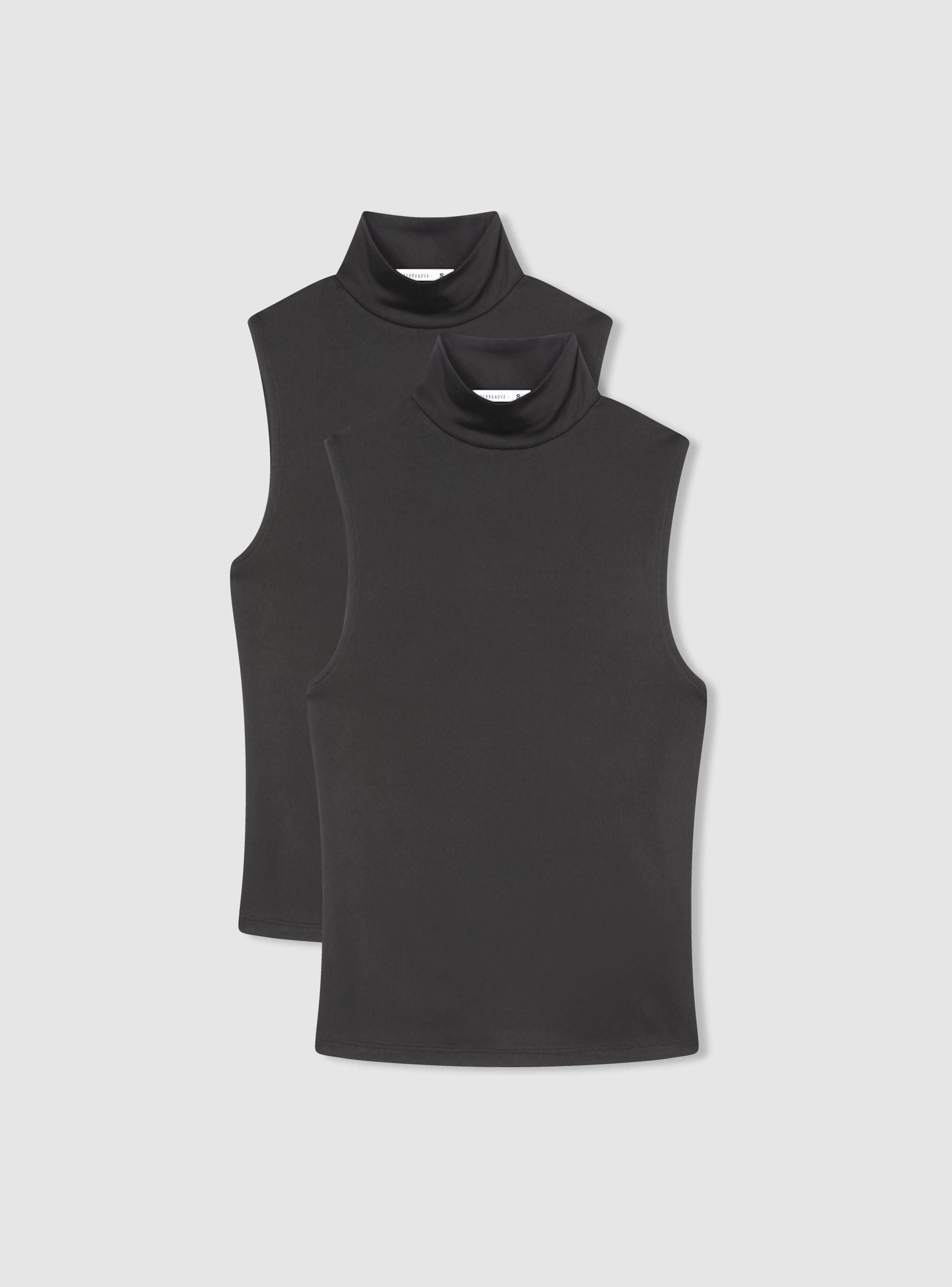 Tessuto extra caldo. Confezione composta da 2 canotte da donna senza maniche a tinta unita. Modello a collo alto che valorizza la linea e si presta a look versatili: sotto blazer per l’ufficio, con jeans o gonne per il tempo libero. Taglio regular e lunghezza normale, facile da sovrapporre. Ideale come base per stratificazioni nelle mezze stagioni o come top essenziale nelle giornate più calde.
