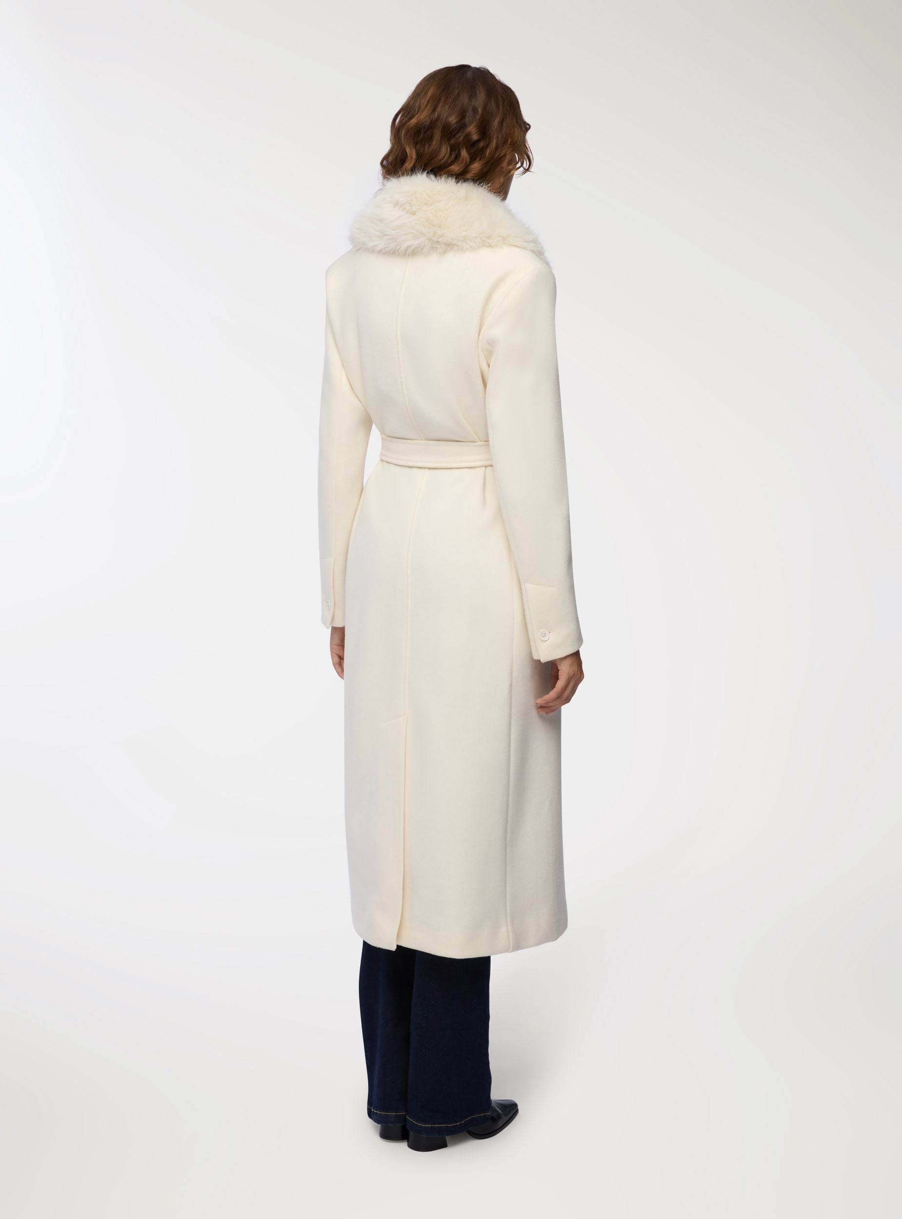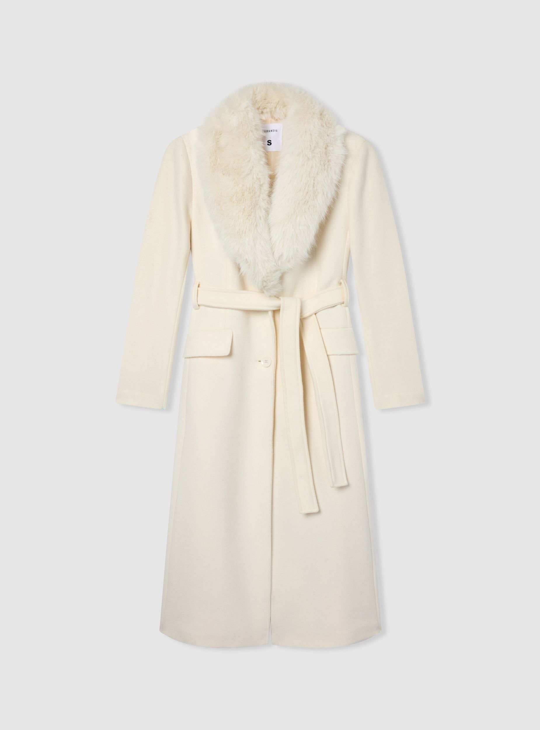 Cappotto da donna lungo con cintura in vita e maxi collo effetto pelo, ideale per affrontare l’inverno con eleganza. Dotato di chiusura con bottoni in tono. Il design avvolgente valorizza la silhouette, mentre il collo morbido e voluminoso dona un tocco sofisticato e caldo. Perfetto da indossare sopra abiti o look più casual, per outfit chic e femminili nelle giornate più fredde. Capo immancabile nel guardaroba invernale.