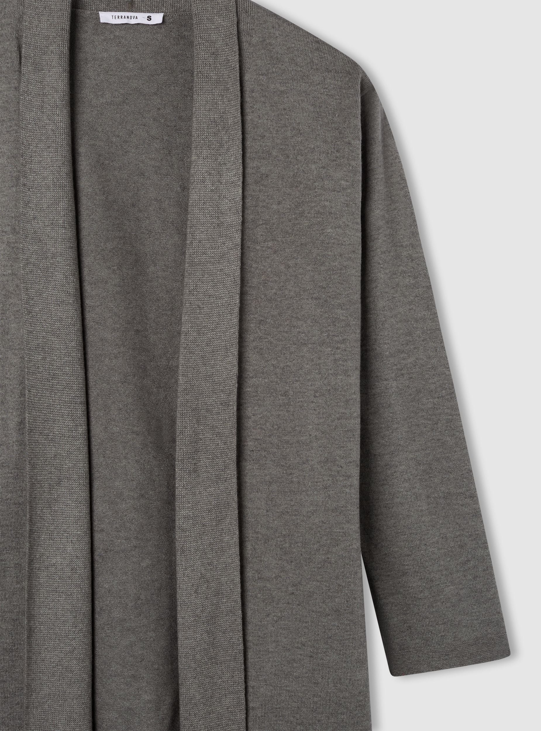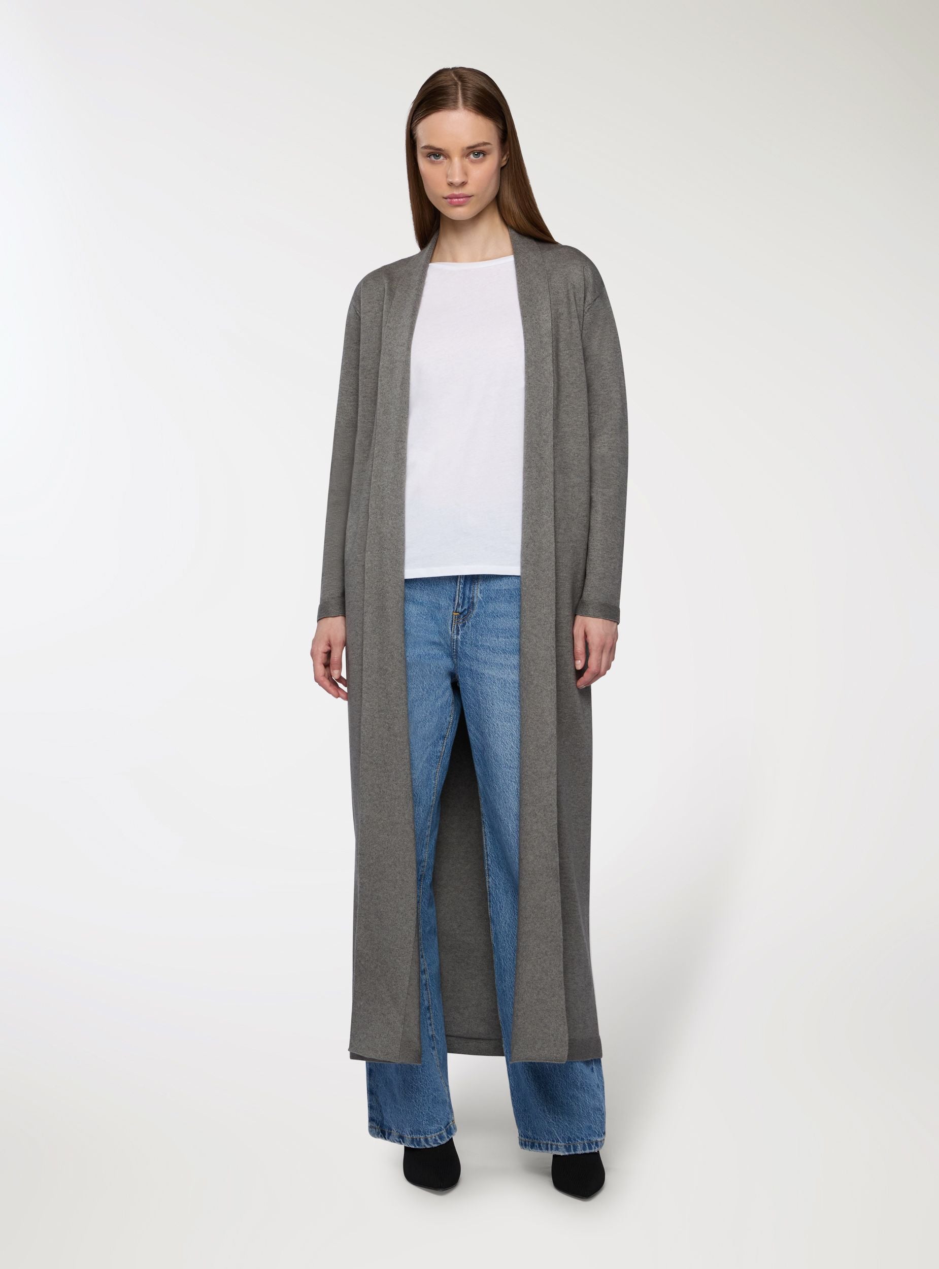 Cardigan da donna lungo e aperto, perfetto per un look casual e versatile. Ideale da indossare sopra una maglietta e jeans, aggiungendo un tocco di eleganza informale. La vestibilità comoda e il design senza chiusura lo rendono pratico e adatto a diverse occasioni. Un capo essenziale per completare outfit quotidiani con stile.Dettagli