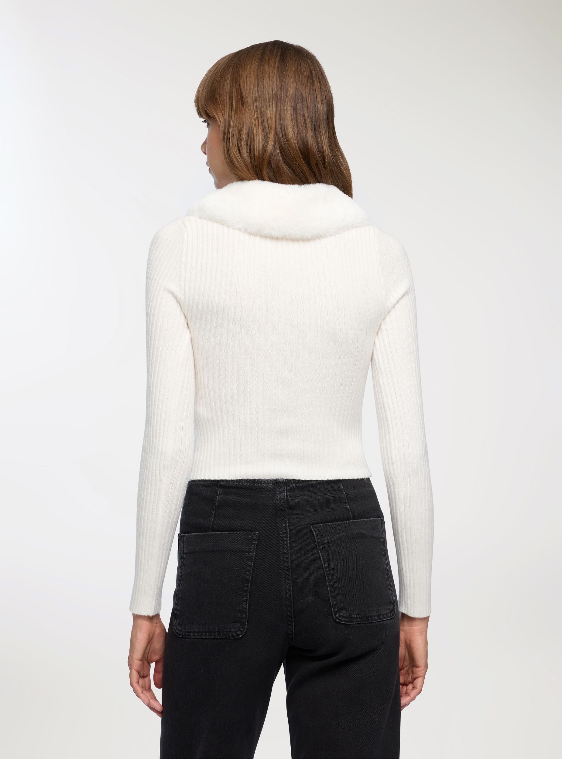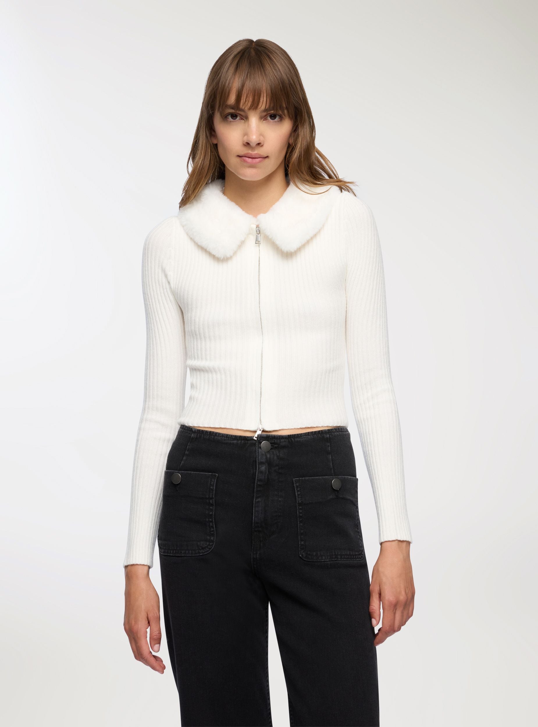 Cardigan da donna a tinta unita con zip frontale e collo effetto pelliccia, ideale per aggiungere un tocco sofisticato ai look quotidiani. Il design a costine valorizza la silhouette, mentre le maniche lunghe la rendono perfetta per le giornate fredde. Si abbina facilmente a jeans o gonne per outfit versatili, adatti sia al lavoro che al tempo libero.Dettagli