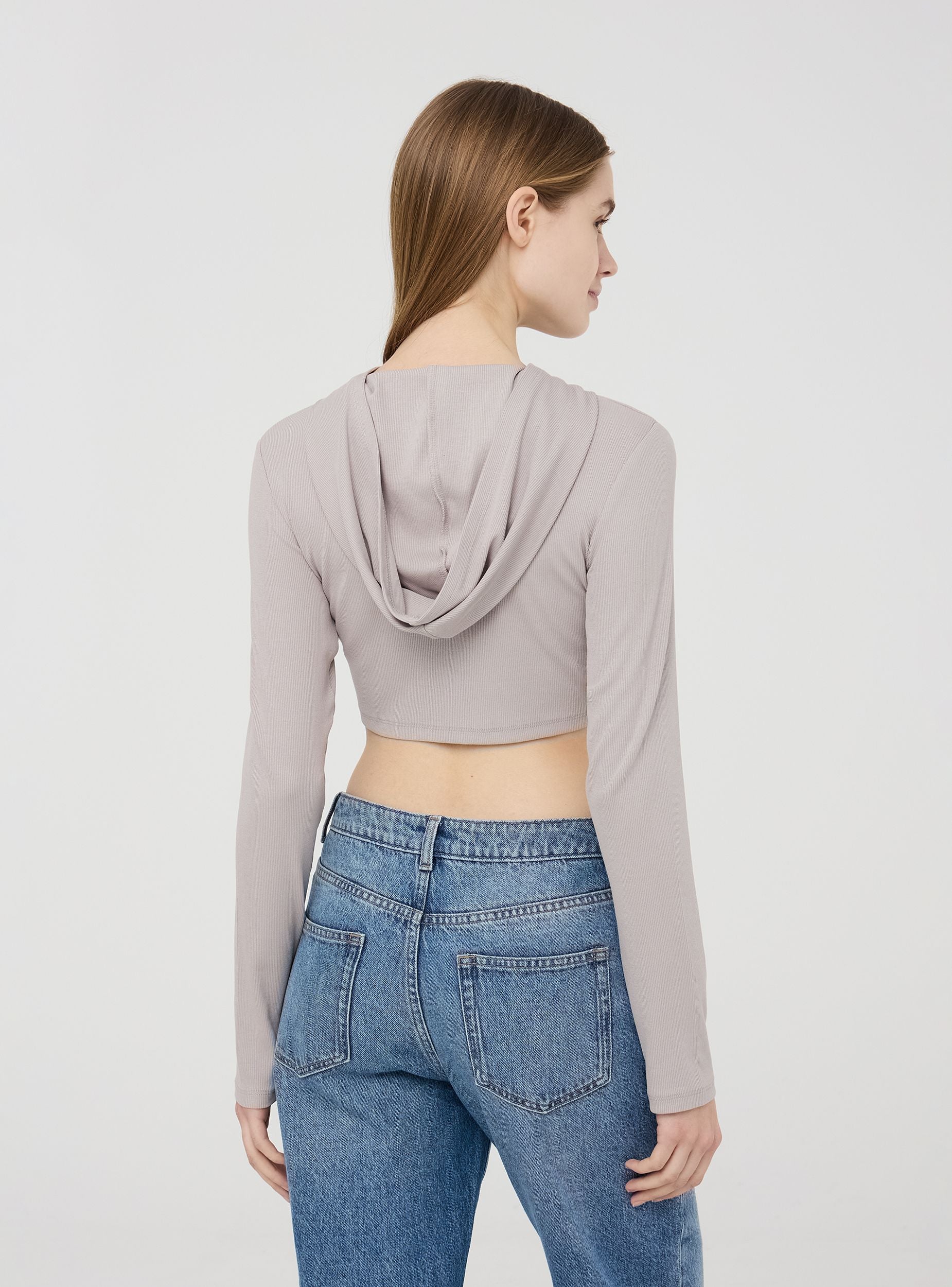 Cardigan da donna dallo stile contemporaneo, caratterizzato da una silhouette crop che aggiunge un tocco moderno e versatile. Questo modello a tinta unita è dotato di maniche lunghe e di un comodo cappuccio che lo rende perfetto per un look casual e sportivo. La zip frontale permette una vestibilità comoda, mentre le finiture in costine donano un dettaglio sofisticato e definito. Ideale per completare outfit dinamici e alla moda, abbinabile a jeans o pantaloni a vita alta per uno stile trendy e disinvolto.
