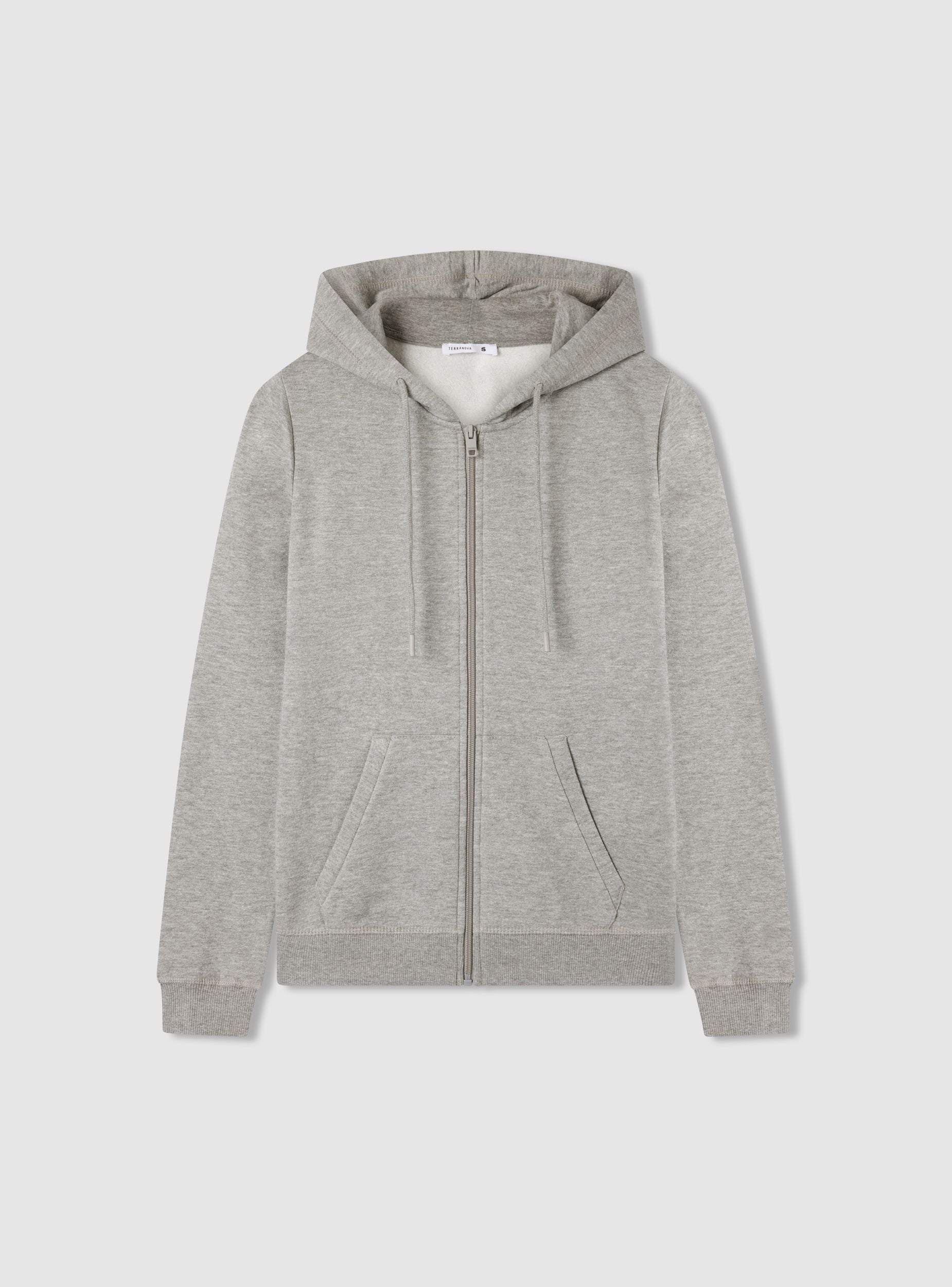 Felpa pesante da donna con zip frontale e cappuccio regolabile con coulisse. Presenta tasche a marsupio, fondo e polsi in costina per una vestibilità comoda. Perfetta per l’inverno, garantisce calore e comfort nel tempo libero o nelle giornate casual.