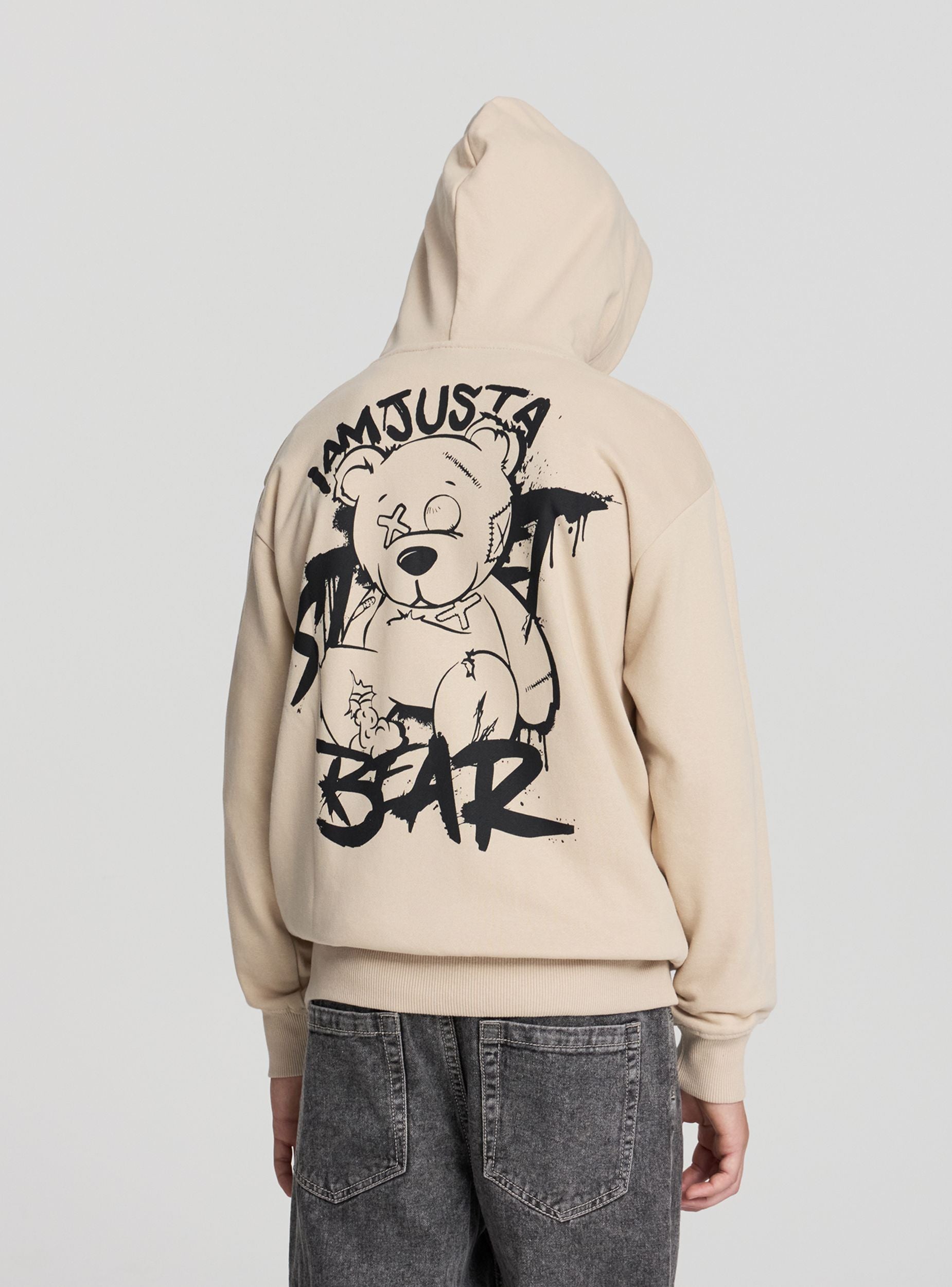 Felpa con cappuccio e stampa orso