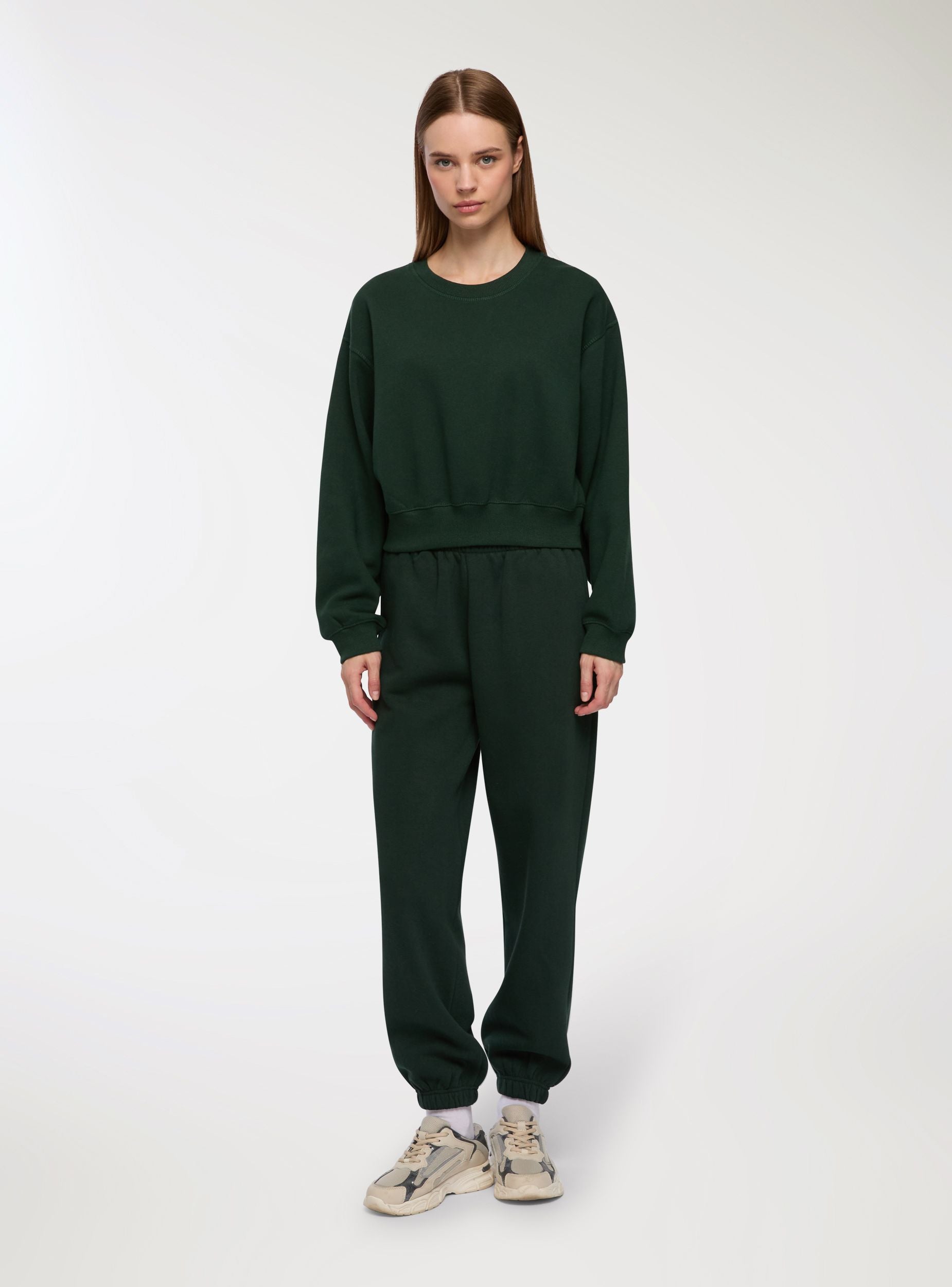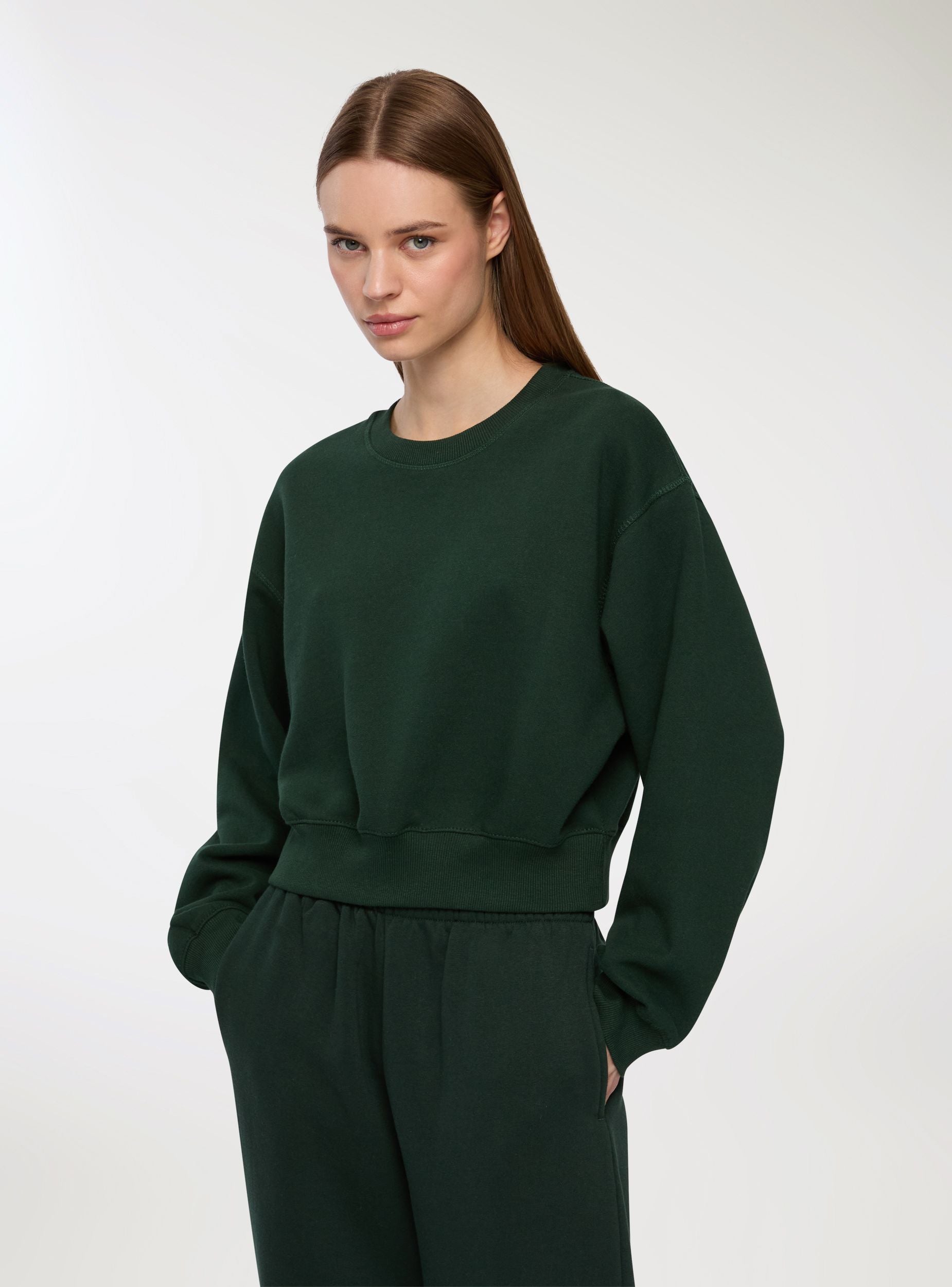 Felpa pesante da donna a tinta unita, capo basic ideale per un look casual e di tendenza. Il modello crop senza cappuccio e senza zip valorizza la silhouette con semplicità e stile. Realizzata in tessuto pesante, è perfetta per l'inverno e si abbina facilmente a jeans o pantaloni a vita alta per creare outfit comodi e attuali. Un capo essenziale per un guardaroba giovane e versatile.