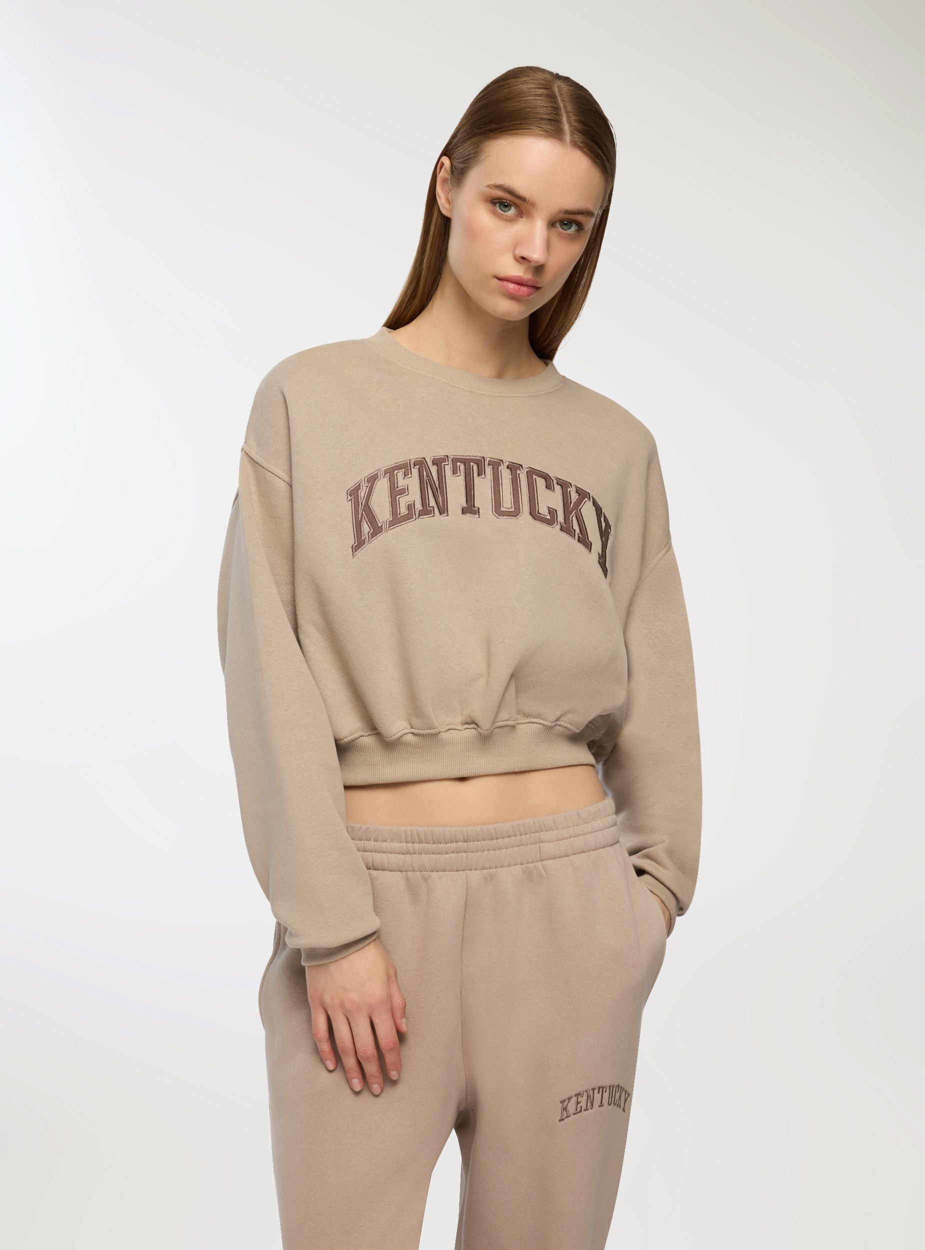 Felpa pesante da donna con stampa in stile college americano e fit cropped per un look sportivo e grintoso. Il modello chiuso, senza cappuccio e senza zip, con fondo e polsi a costine assicura comfort nelle giornate più fredde. Realizzata in tessuto felpato, è perfetta da indossare con jeans, pantaloni wide leg o joggers per outfit casual d’ispirazione americana, ideali per il tempo libero o l’università.