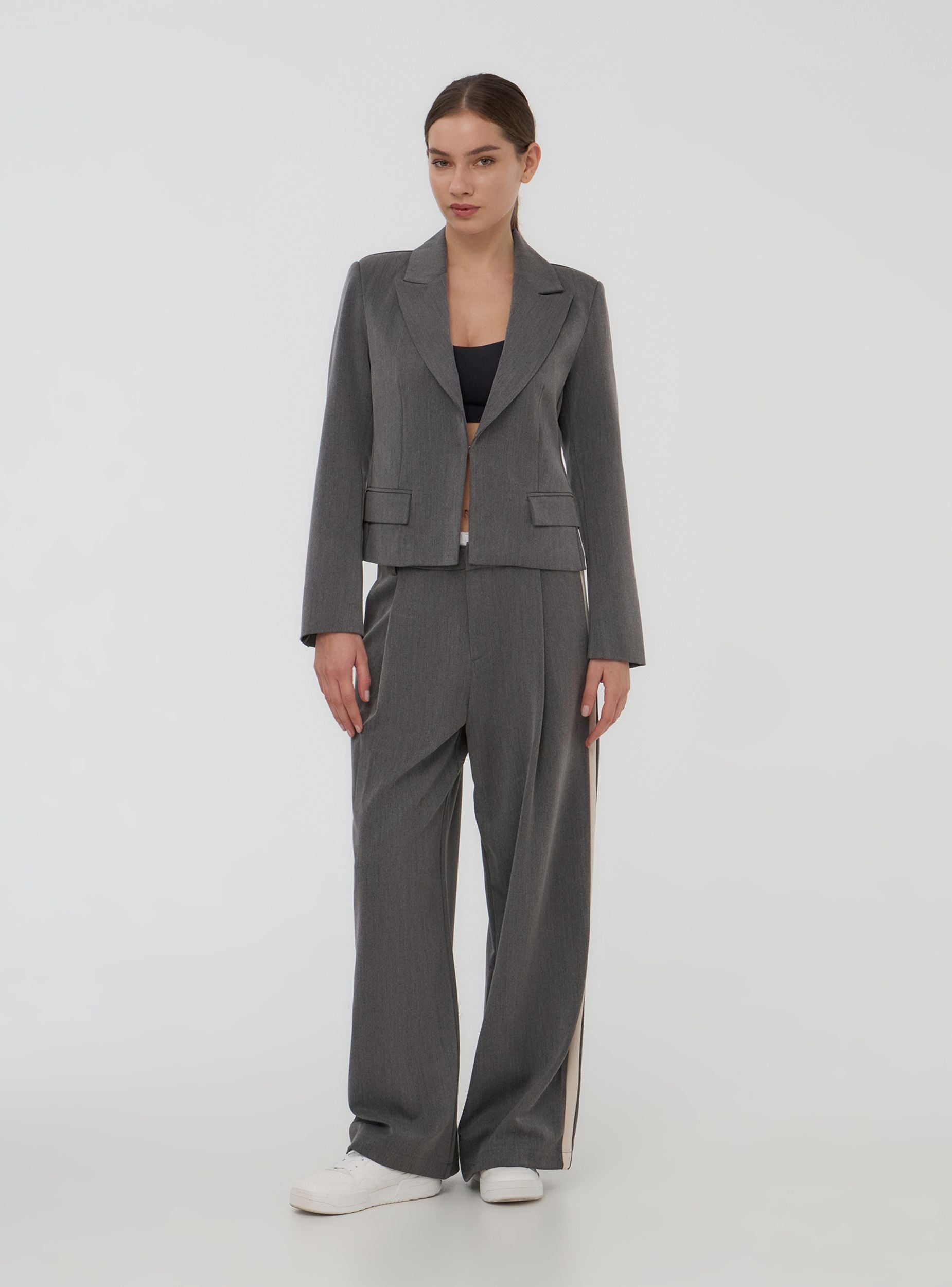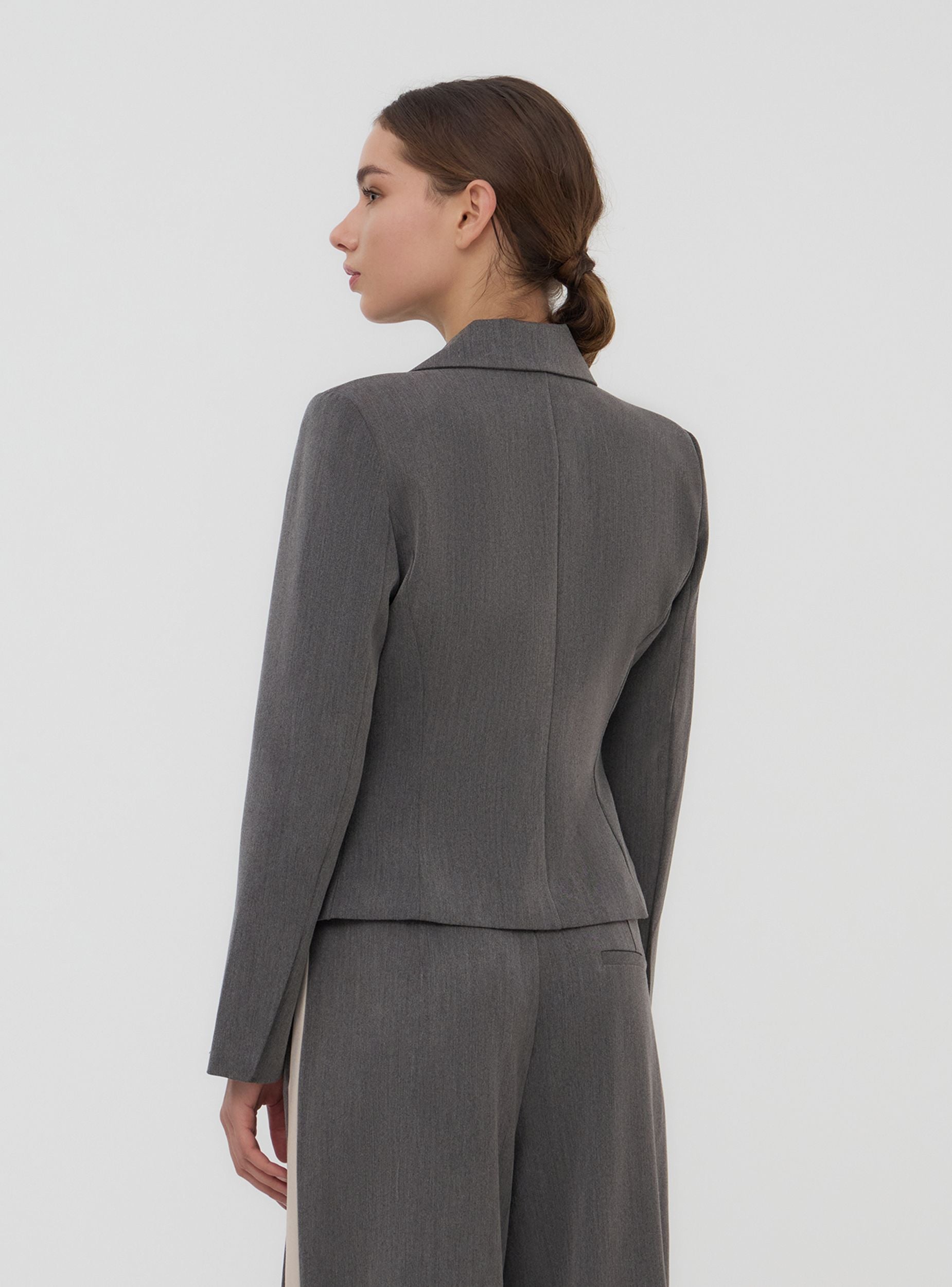 Giacca da donna dal design raffinato, perfetta per completare con eleganza il tuo outfit. Realizzata in tinta unita, presenta maniche lunghe e ampi revers che donano struttura e stile. Ideale per un look formale o casual-chic, offre un equilibrio tra comfort e versatilità. Le linee essenziali e il taglio curato la rendono un capo imprescindibile nel guardaroba, adatto a diverse occasioni e facilmente abbinabile.