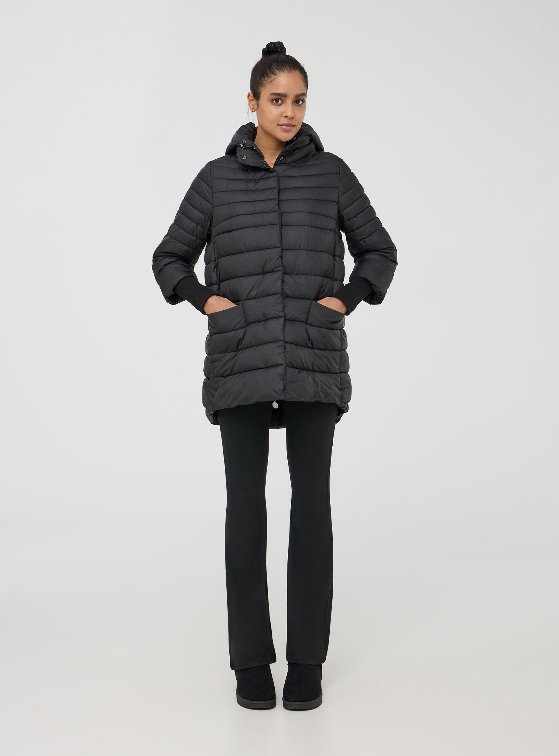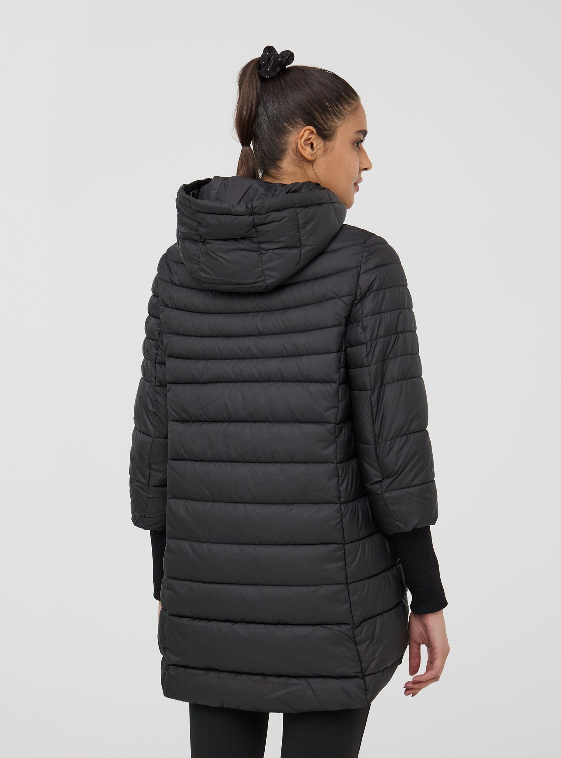 Giaccone da donna imbottito, caratterizzato da un design a tinta unita, perfetto per le giornate più fredde. Presenta un comodo cappuccio, ideale per proteggersi dal vento e dalla pioggia, e un collo alto per garantire una maggiore copertura e calore. Dotato di pratiche tasche, offre ampio spazio per riporre piccoli oggetti o per scaldare le mani. Questo capo dal taglio lungo è un'ottima scelta per chi cerca comfort e stile in un unico capo.