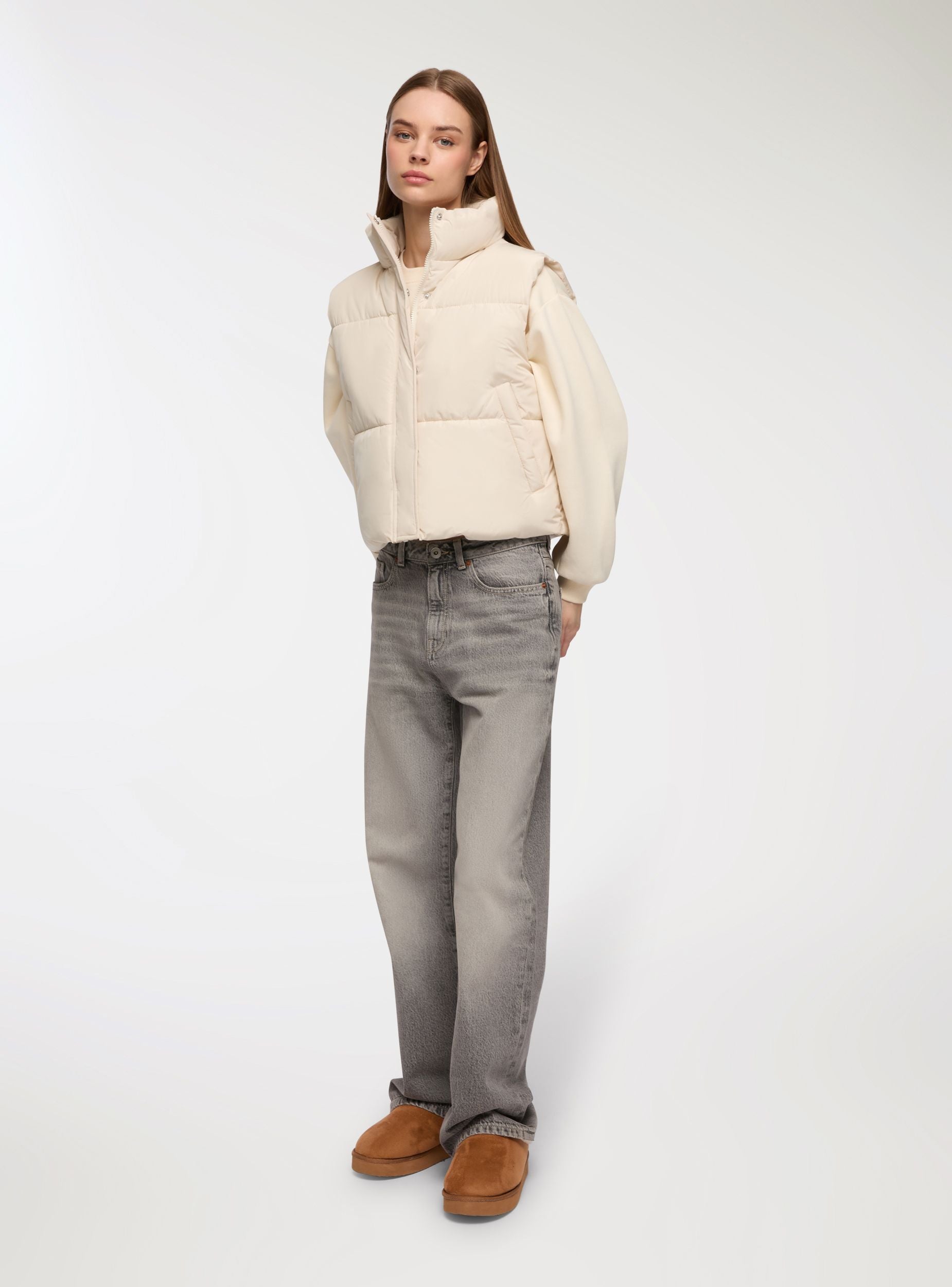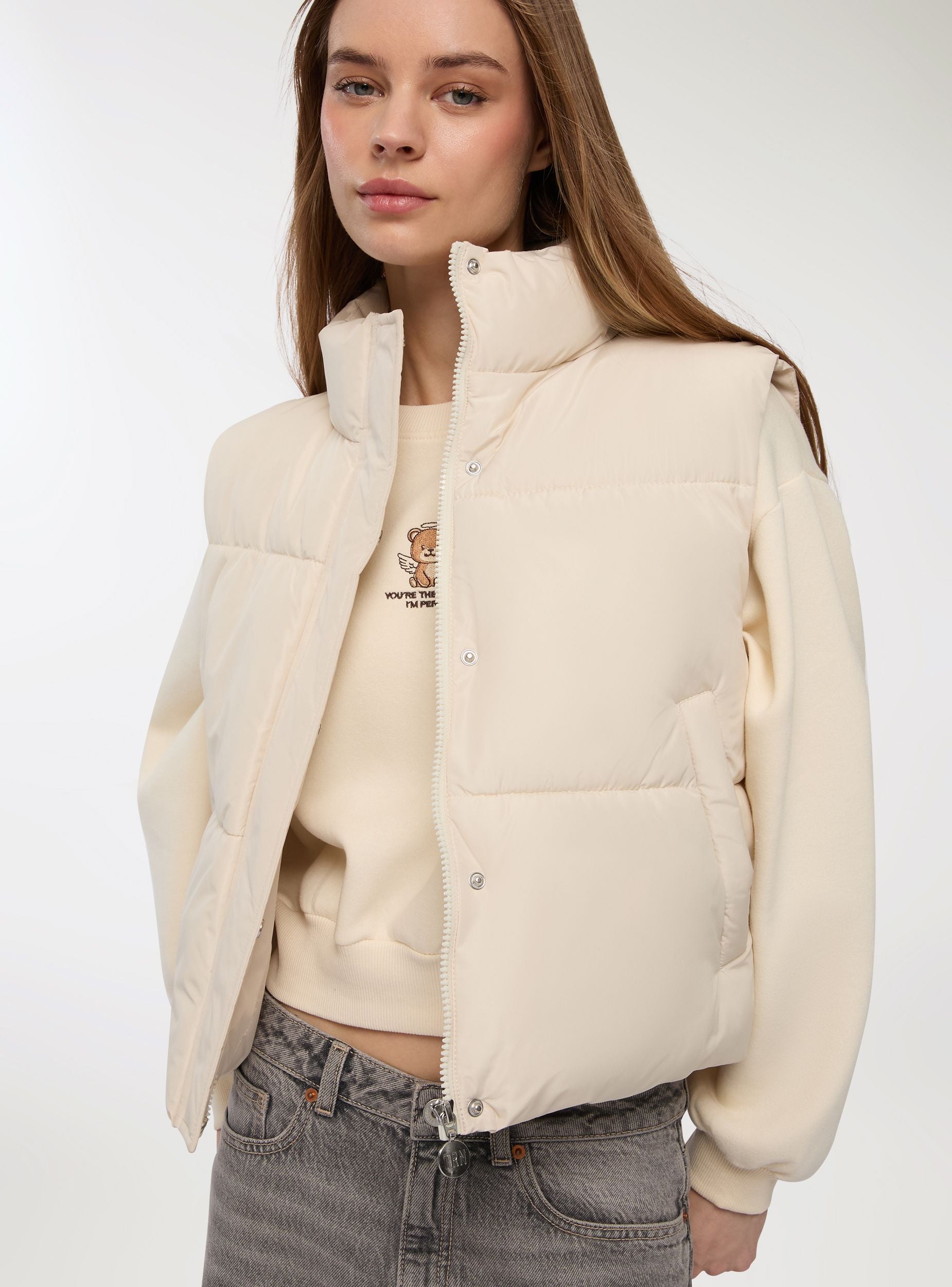 Gilet da donna con collo alto e chiusura frontale con zip nascosta e bottoni a pressione, ideale per completare outfit casual e sportivi. Dotato di tasche laterali pratiche con bottone a pressione, offre comfort e versatilità. Perfetto per essere indossato sopra maglie o felpe, garantisce una vestibilità regolare adatta a diverse occasioni, dal tempo libero alle passeggiate all'aperto.