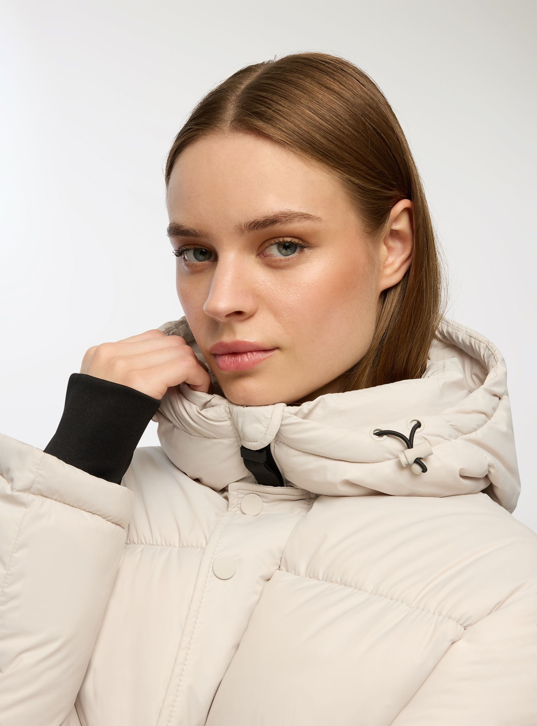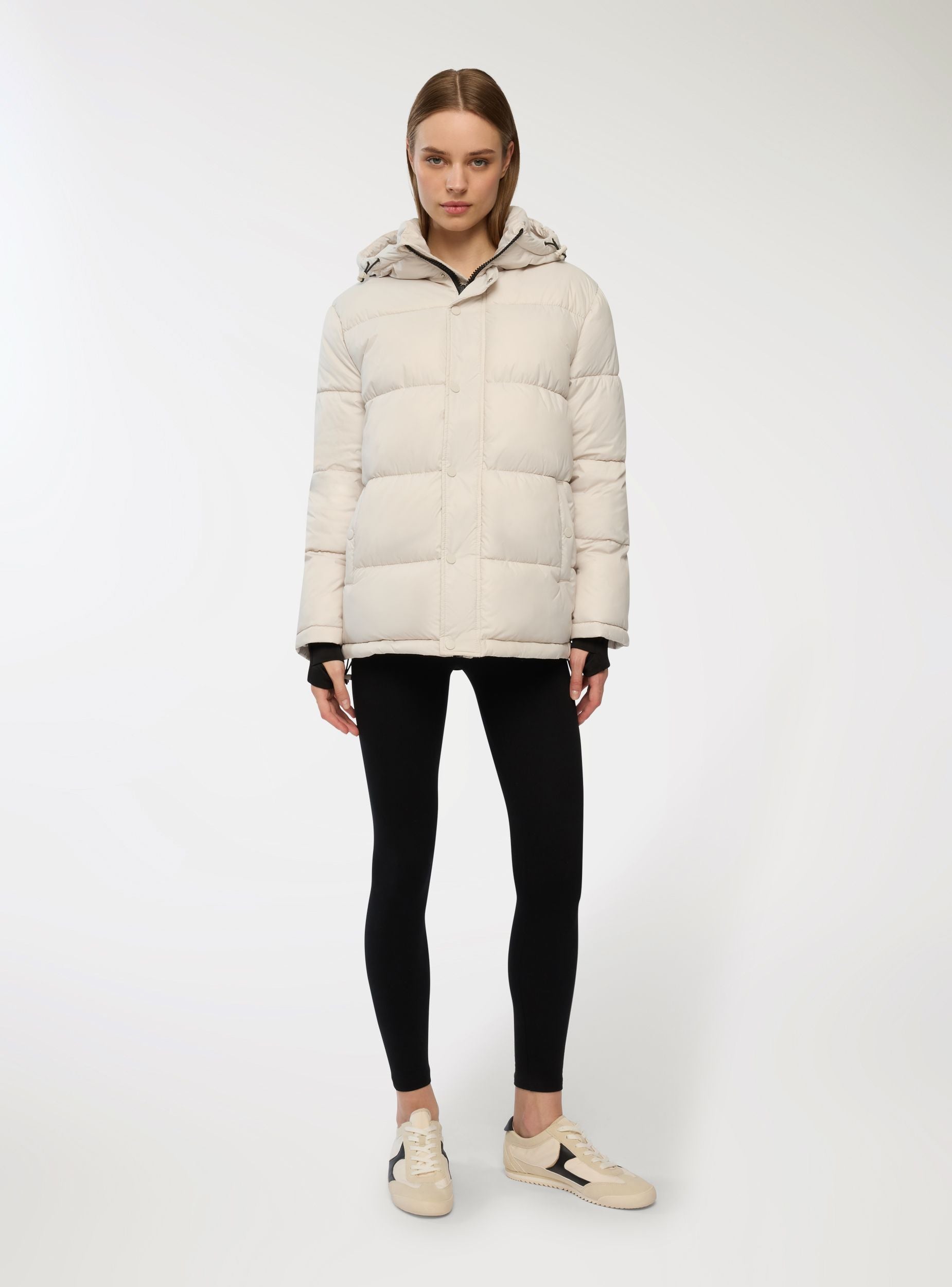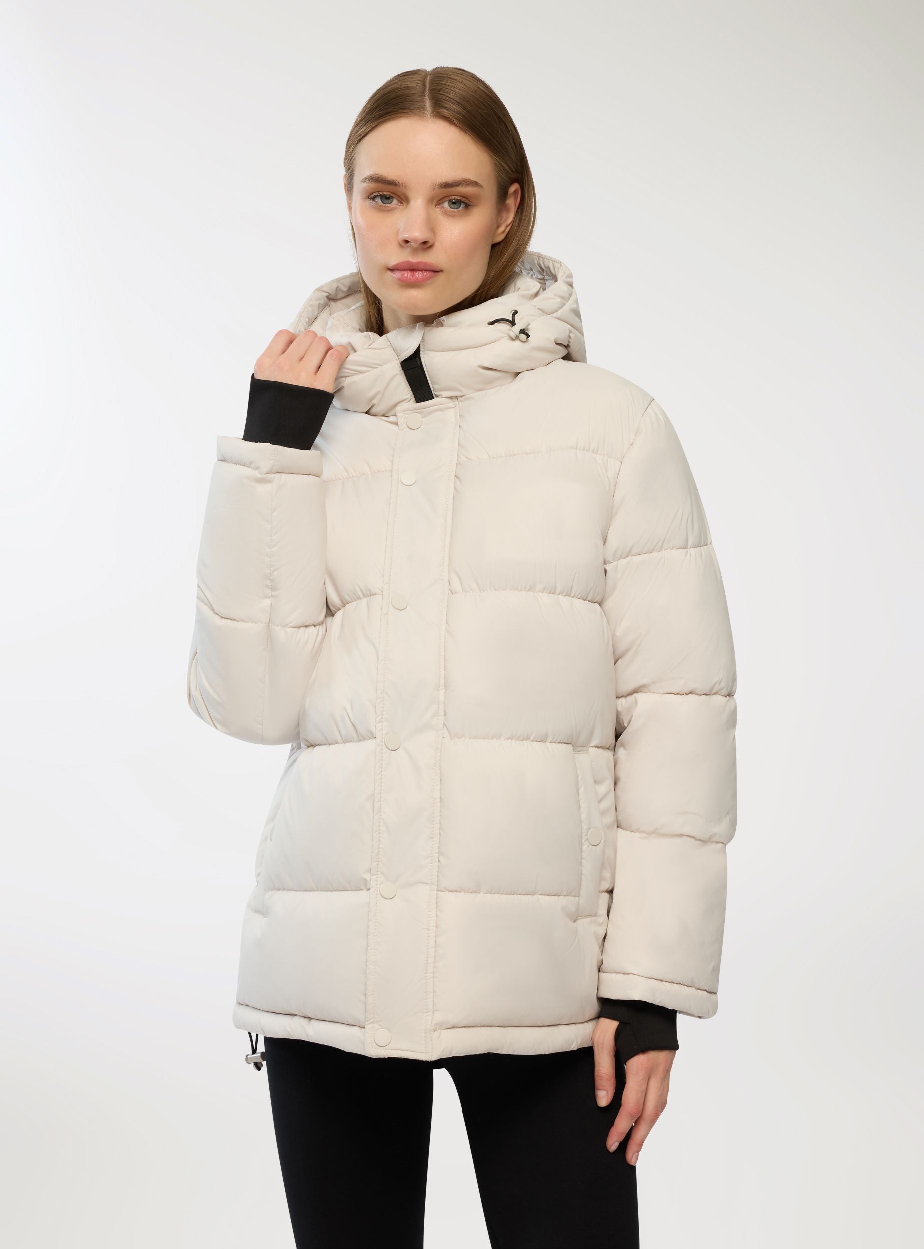 Giubbotto imbottito da donna con cappuccio, ideale per affrontare le giornate fredde con stile e comfort. Dotato di chiusura con zip e bottoni a pressione e tasche laterali pratiche con bottoni a pressione, offre una vestibilità comoda e avvolgente. Presenta polsini con foro per il pollice per una protezione extra contro il freddo. Il design imbottito garantisce calore e protezione, rendendolo perfetto per un look casual e versatile. Si abbina facilmente a pantaloni e stivali per un outfit invernale completo.