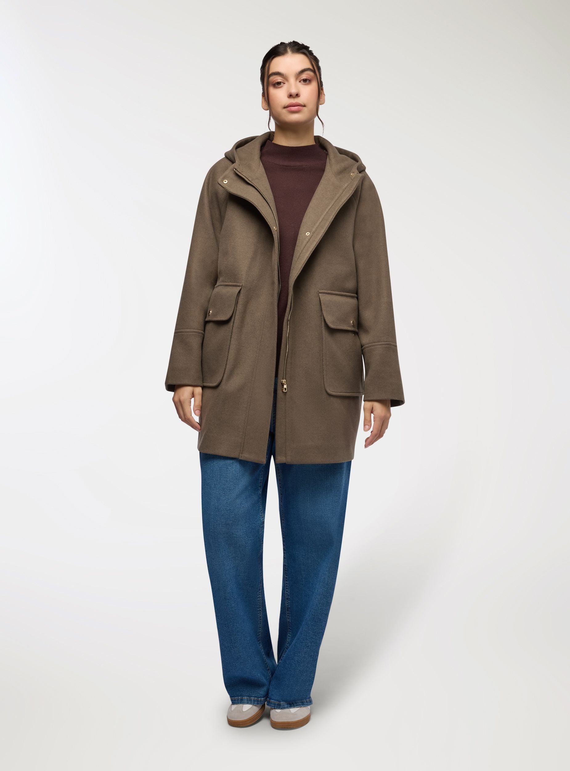 Giubbotto da donna con cappuccio, perfetto per un look casual e versatile. Dotato di tasche frontali con patta e chiusura a bottone, offre praticità e stile. La vestibilità regolare lo rende ideale per essere indossato sopra maglioni o camicie. Un capo adatto per la stagione fredda, abbinabile a jeans o pantaloni per un outfit comodo e alla moda.