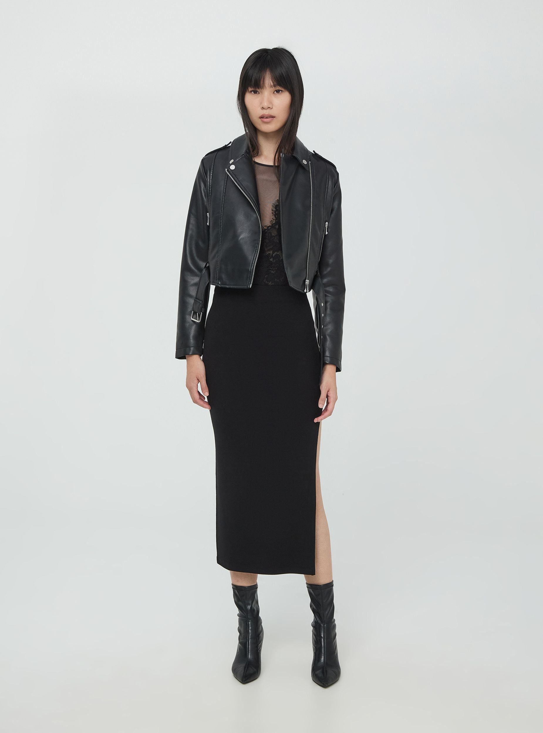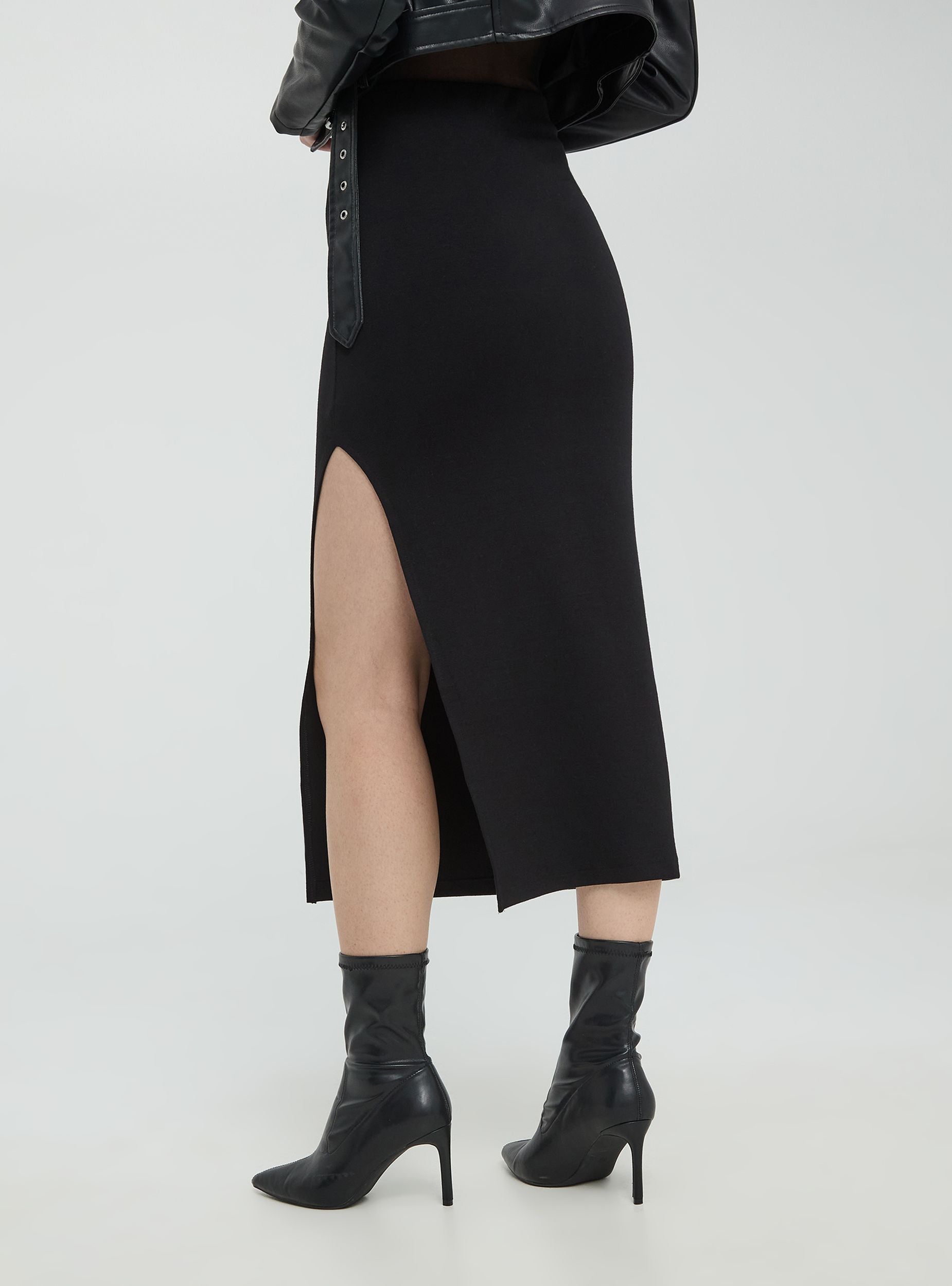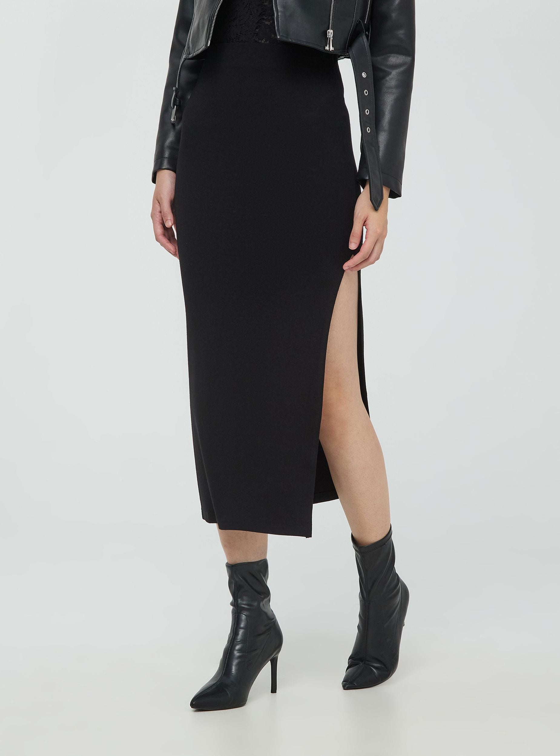 Gonna da donna, lunghezza midi, con spacco laterale. Tessuto in jersey a tinta unita, modello con elastico interno. Capo must-have da avere nell'armadio. Vestibilità regular.