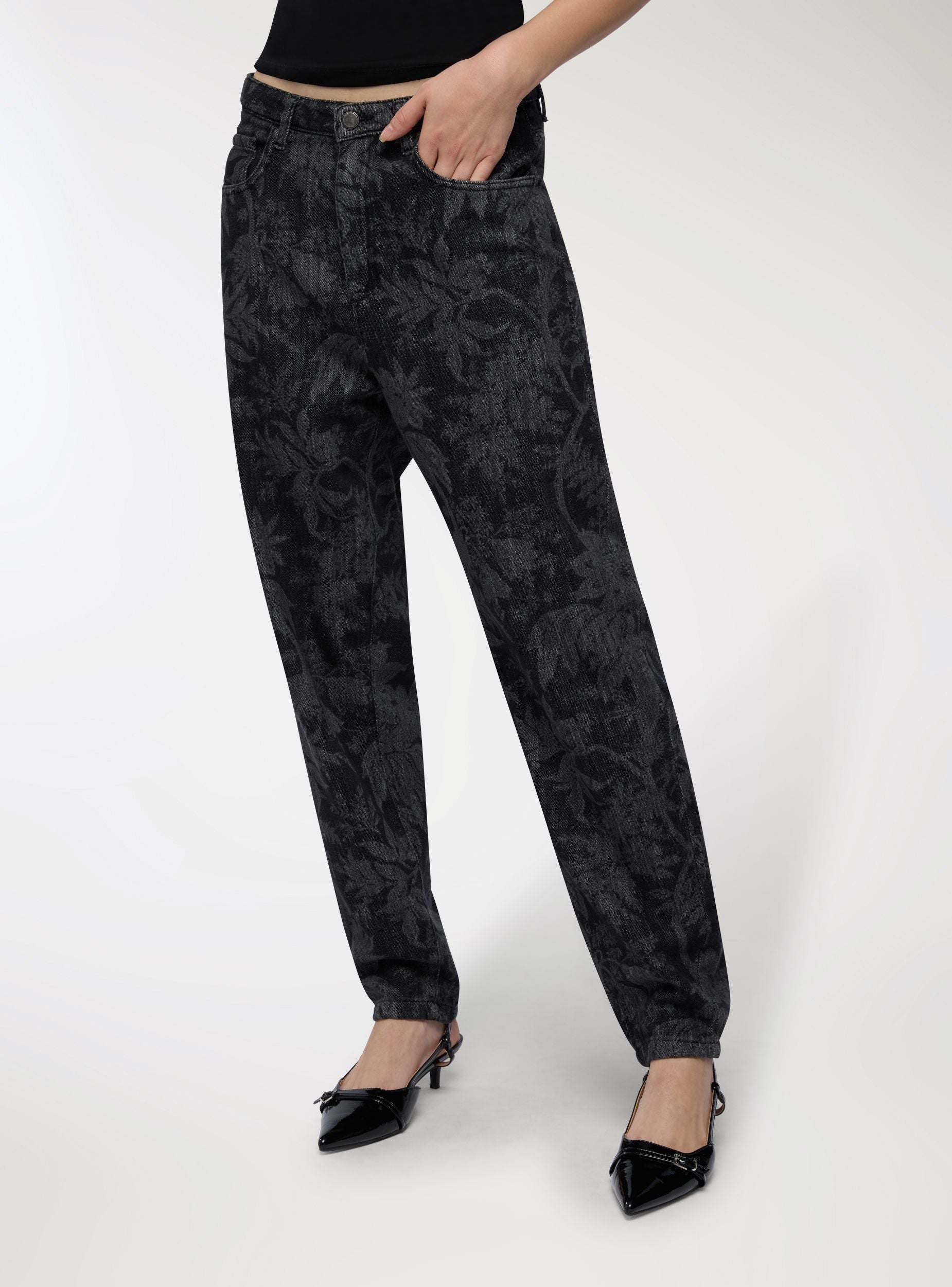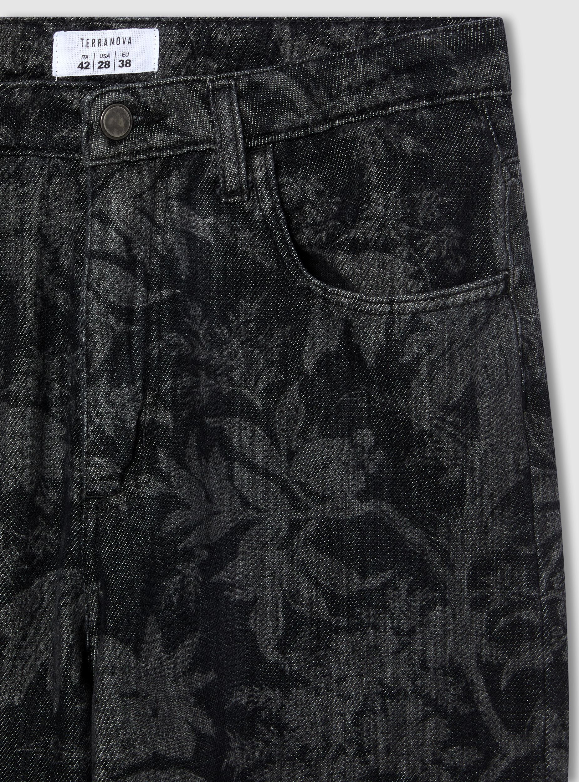 Jeans da donna a gamba lunga con stampa floreale allover, perfetti per look urban e casual. Vita media con passanti, chiusura con bottone e zip, cinque tasche per praticità quotidiana. Vestibilità regular che valorizza la figura senza costringere. Ideali con una camicia bianca e sneakers per il giorno, oppure con top e stivaletti per un’uscita serale.