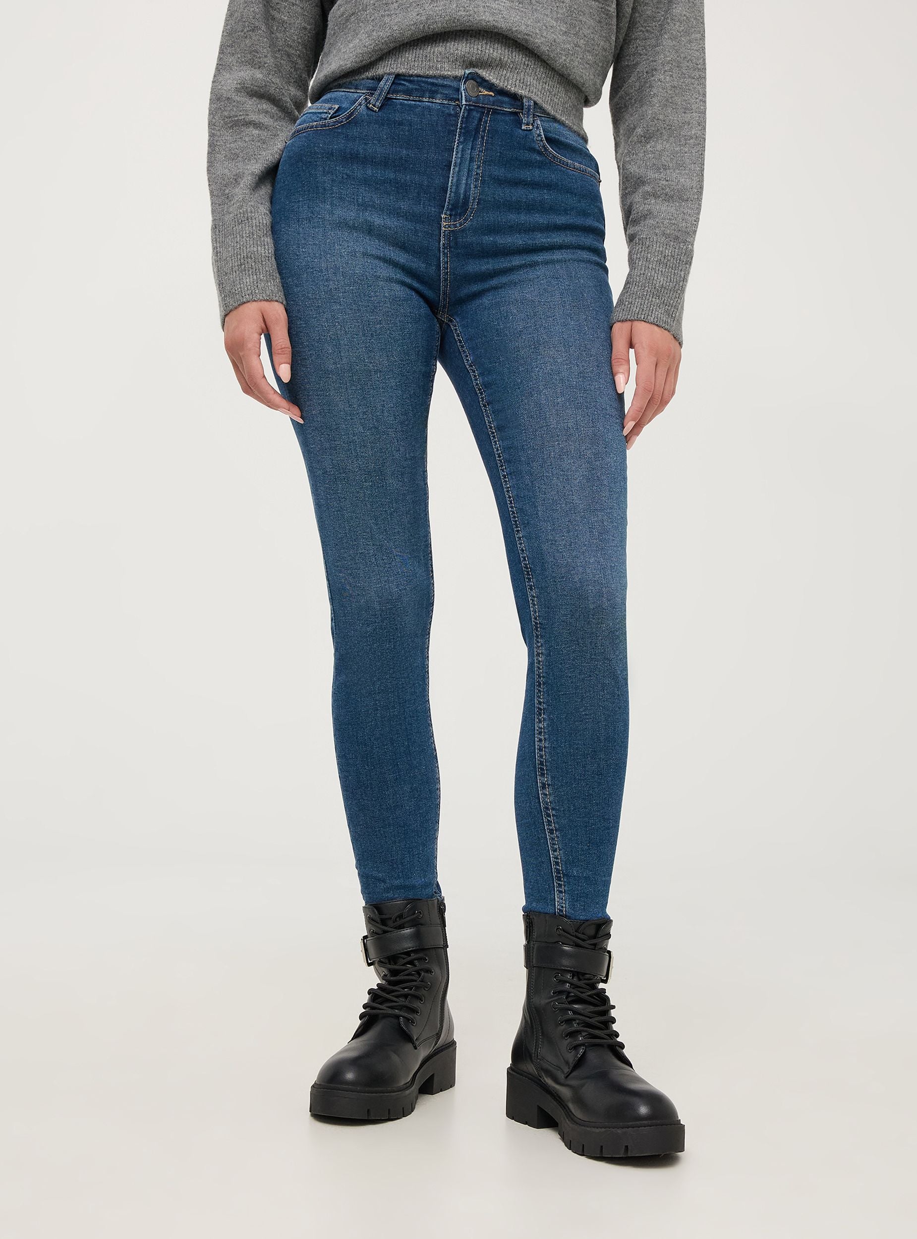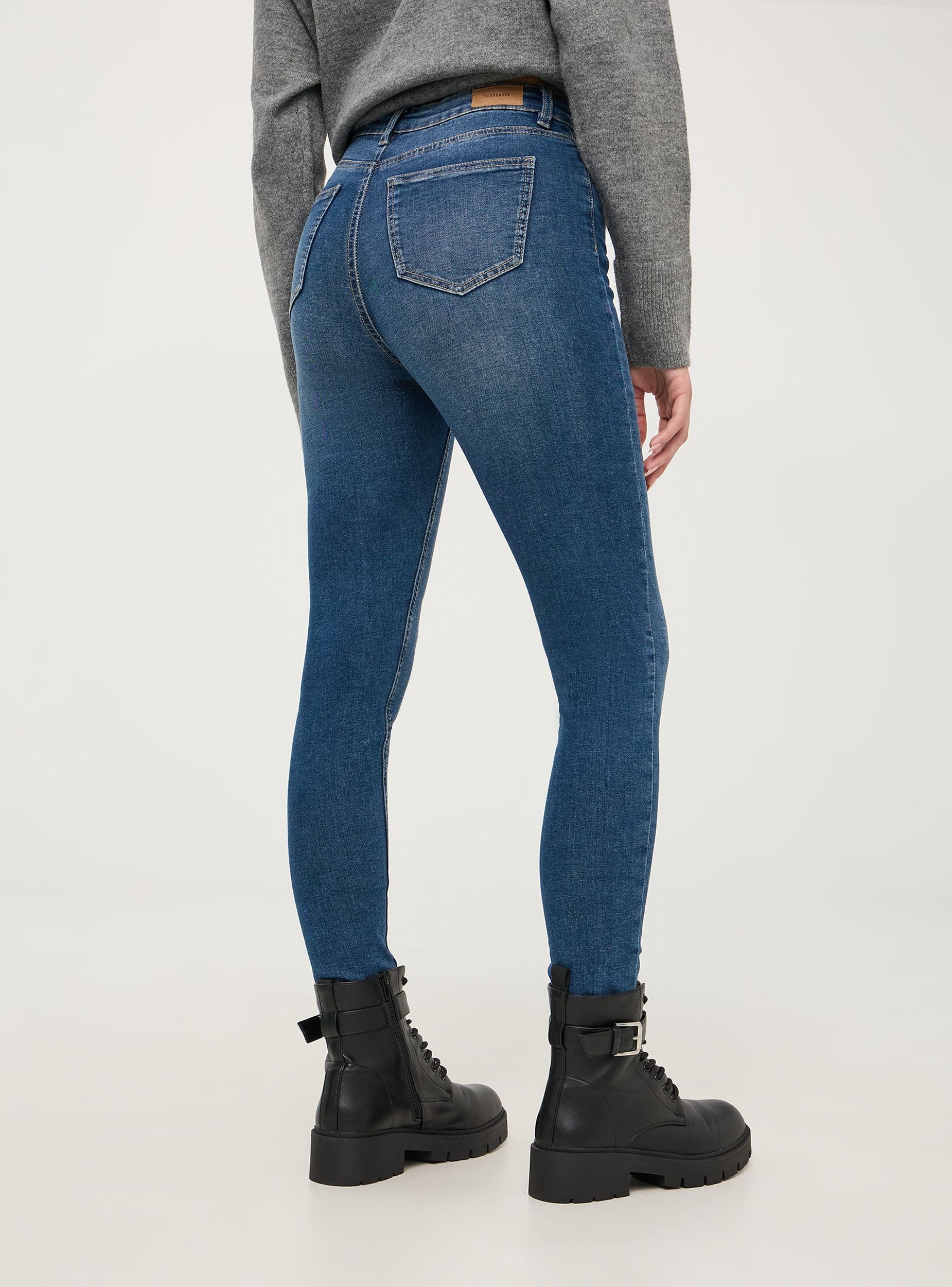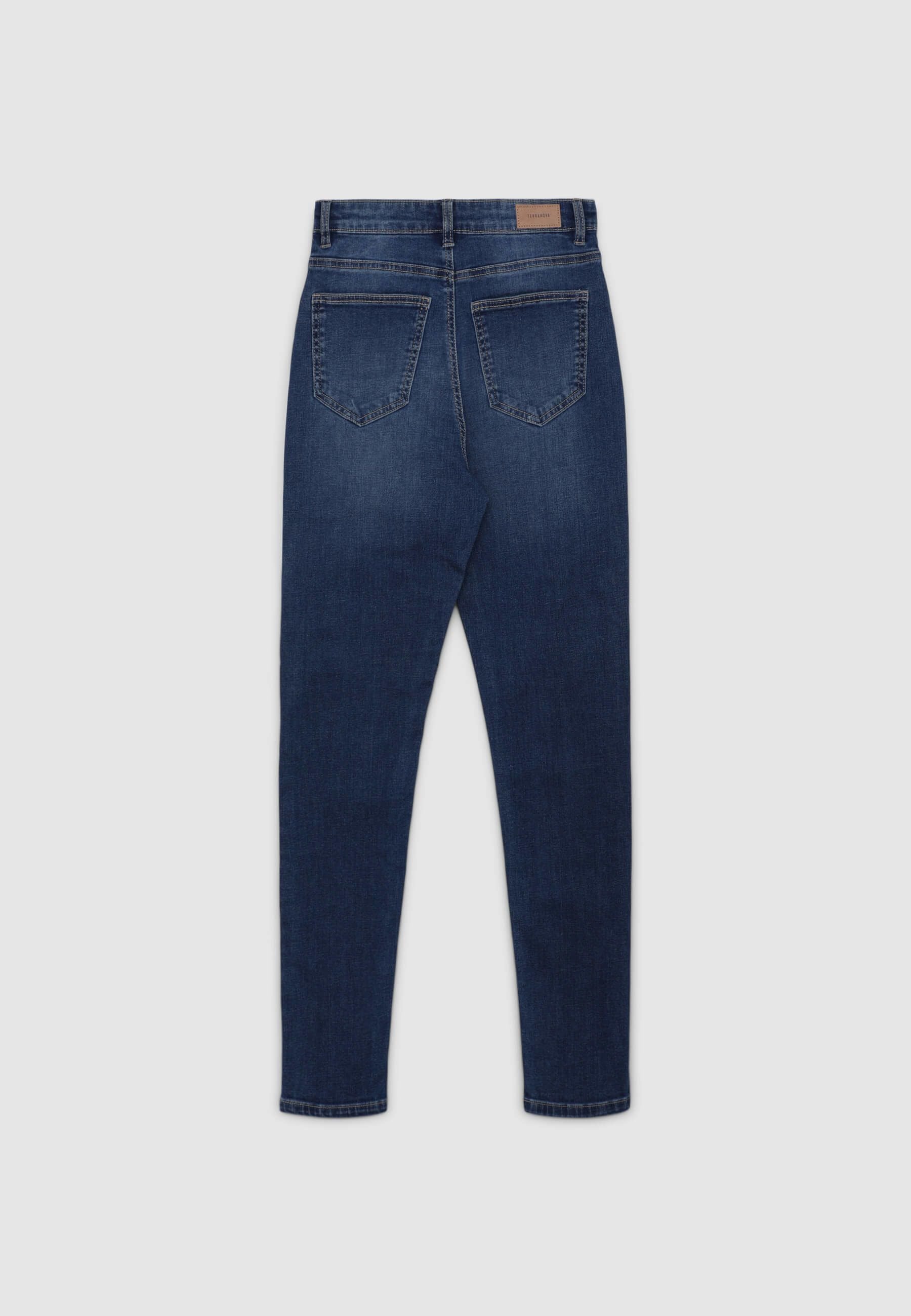 Jeans skinny da donna a vita alta perfetti per esaltare la silhouette. Il tessuto denim garantisce una vestibilità aderente e confortevole. Modello dotato di chiusura con zip e bottone, e cinque tasche, due anteriori, due posteriori e una piccola tasca anteriore aggiuntiva. Questi jeans sono ideali per un look casual e versatile. Perfetti per essere indossati durante il giorno o la sera, possono essere facilmente abbinati con una varietà di top e scarpe, rendendoli un capo essenziale nel guardaroba di ogni donna.