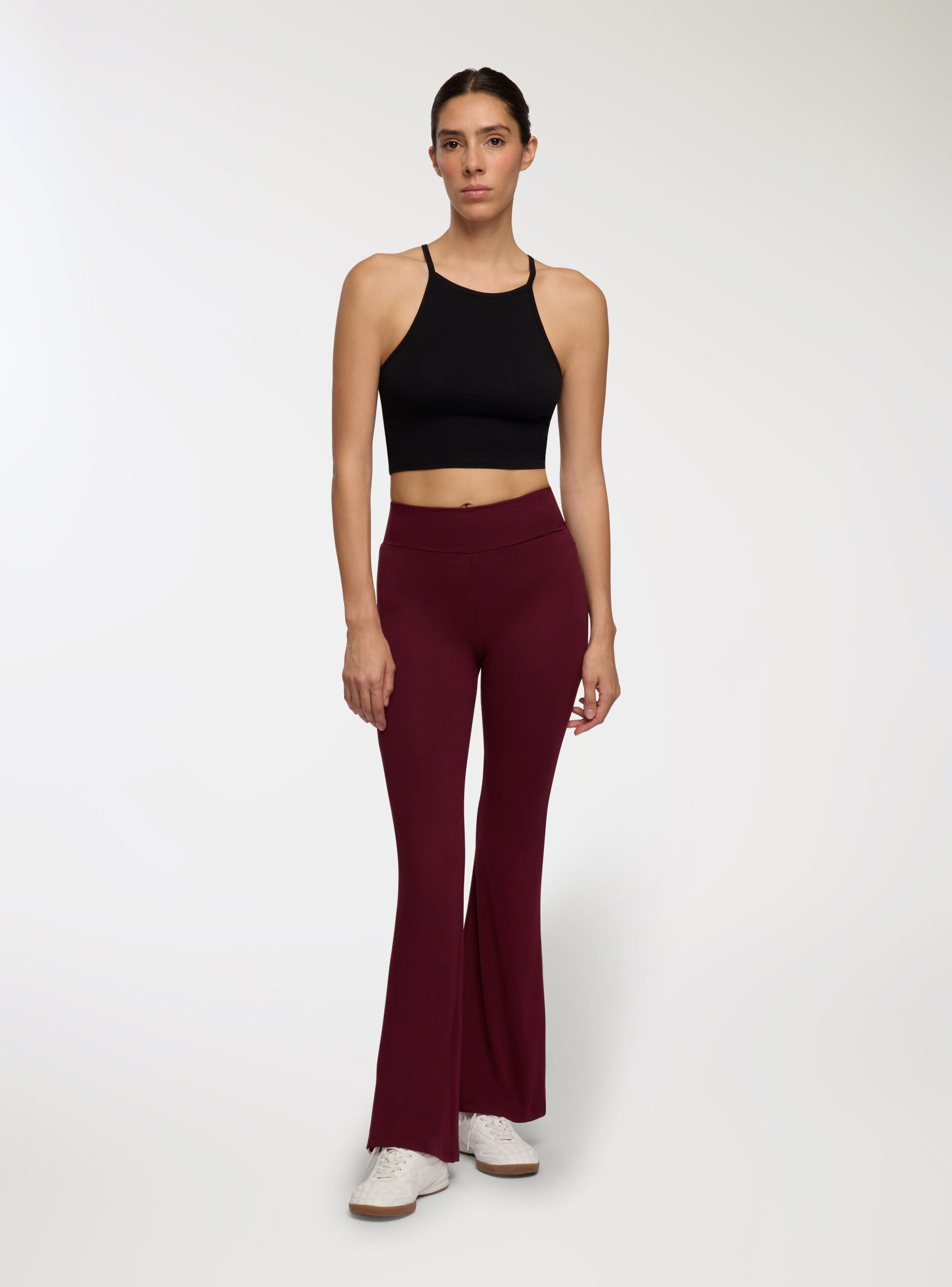 Tessuto caldo. Leggings da donna dal design flared, ideali per un look casual e versatile. La linea svasata sul fondo valorizza la silhouette e dona un tocco moderno, perfetti da abbinare sia a magliette oversize che a felpe per il tempo libero. La vita elasticizzata garantisce comfort e praticità, mentre l’assenza di tasche e la fantasia tinta unita li rende facili da coordinare per ogni occasione informale.