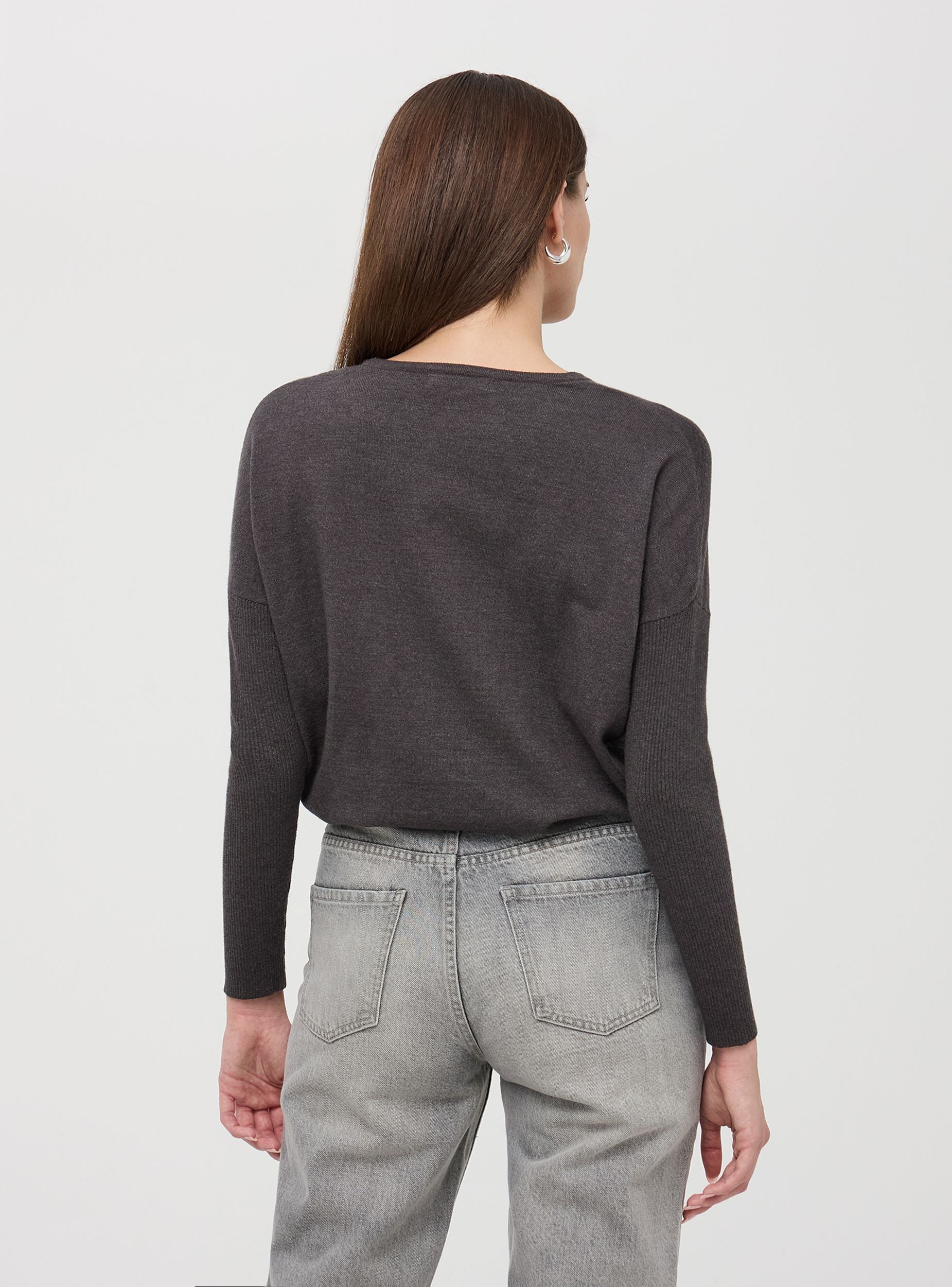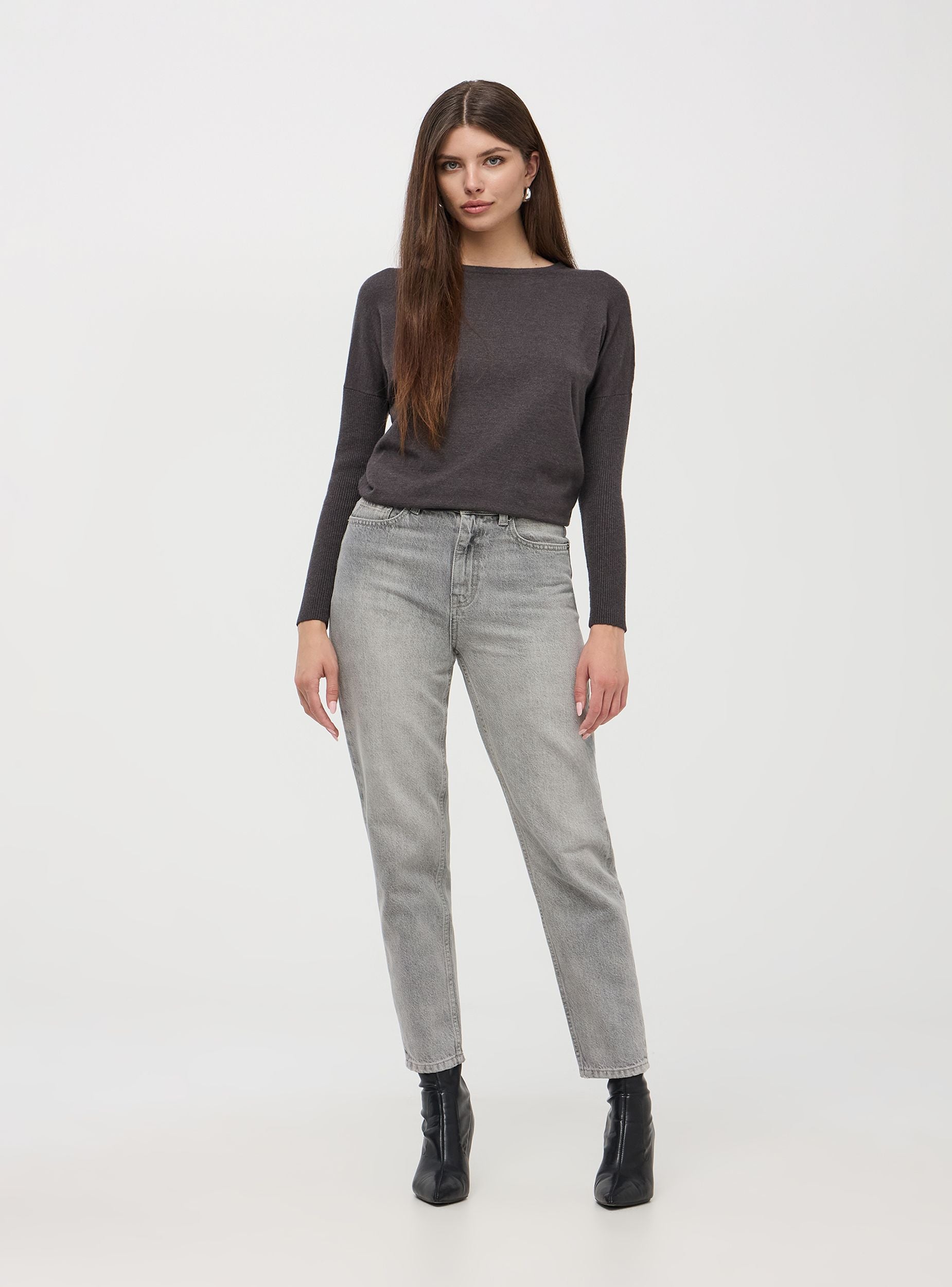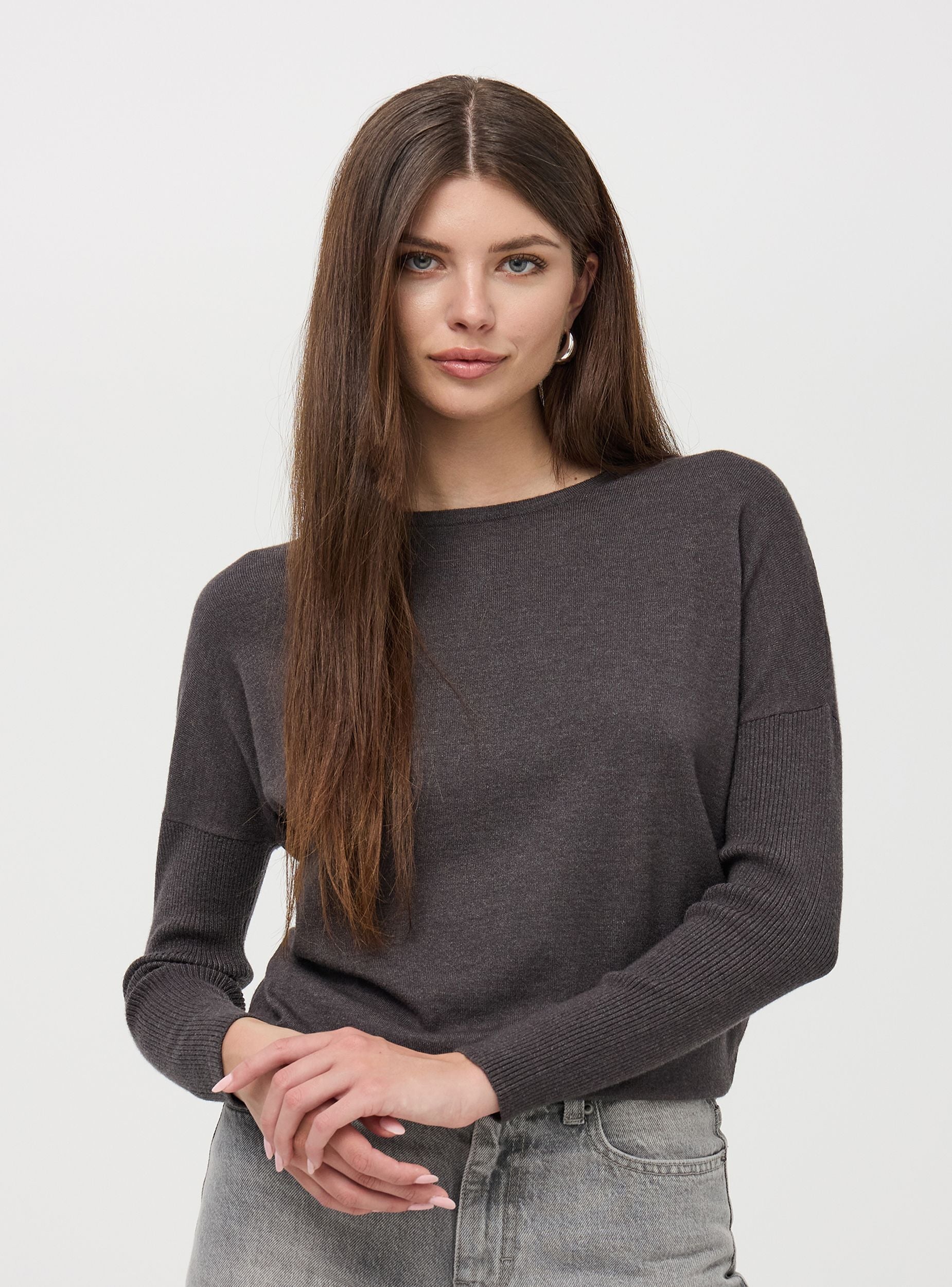 Maglia da donna perfetta per le giornate più fresche. Ha un design minimalista con scollo rotondo ampio, maniche lunghe e vestibilità comoda. Vestibilità ampia, con maniche aderenti a costine. Versatile e chic, è ideale per un look casual quotidiano, ma anche per ufficio o serate informali grazie al suo stile elegante e sobrio.